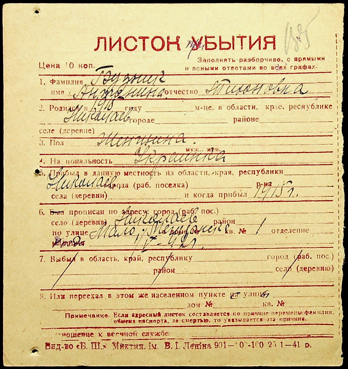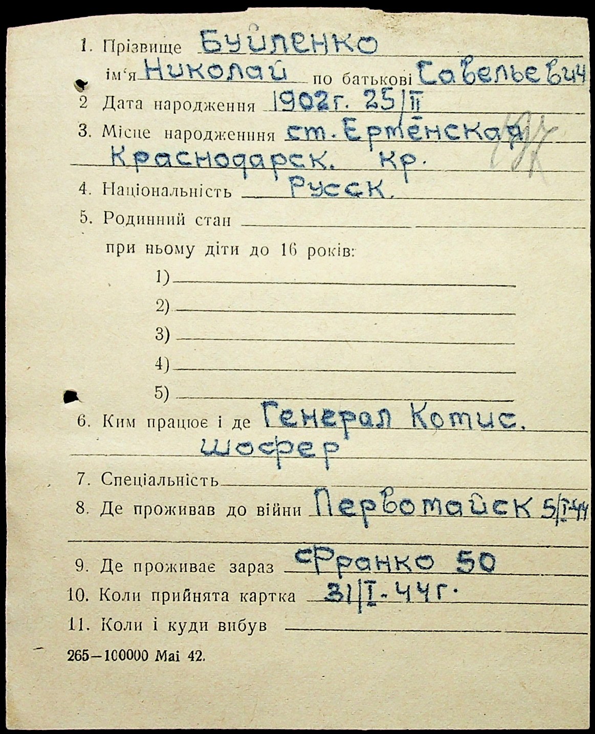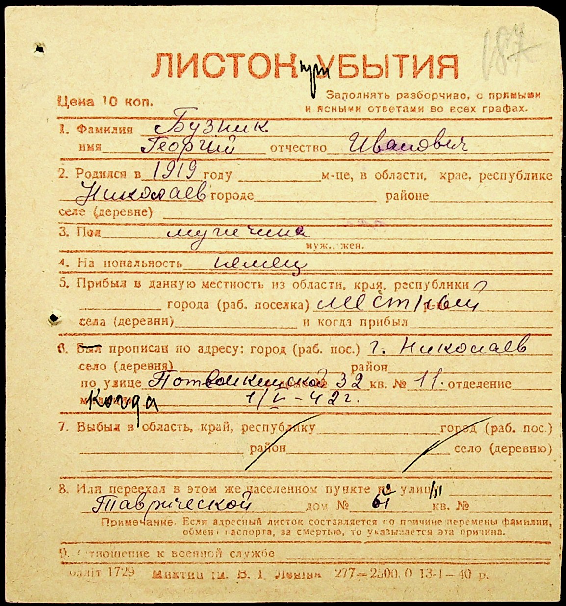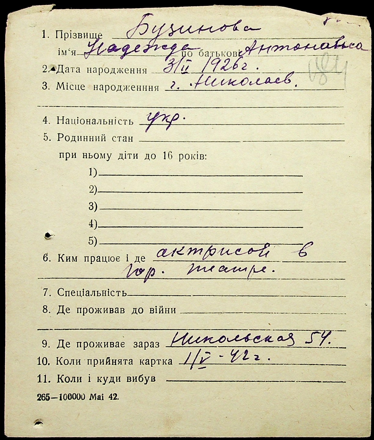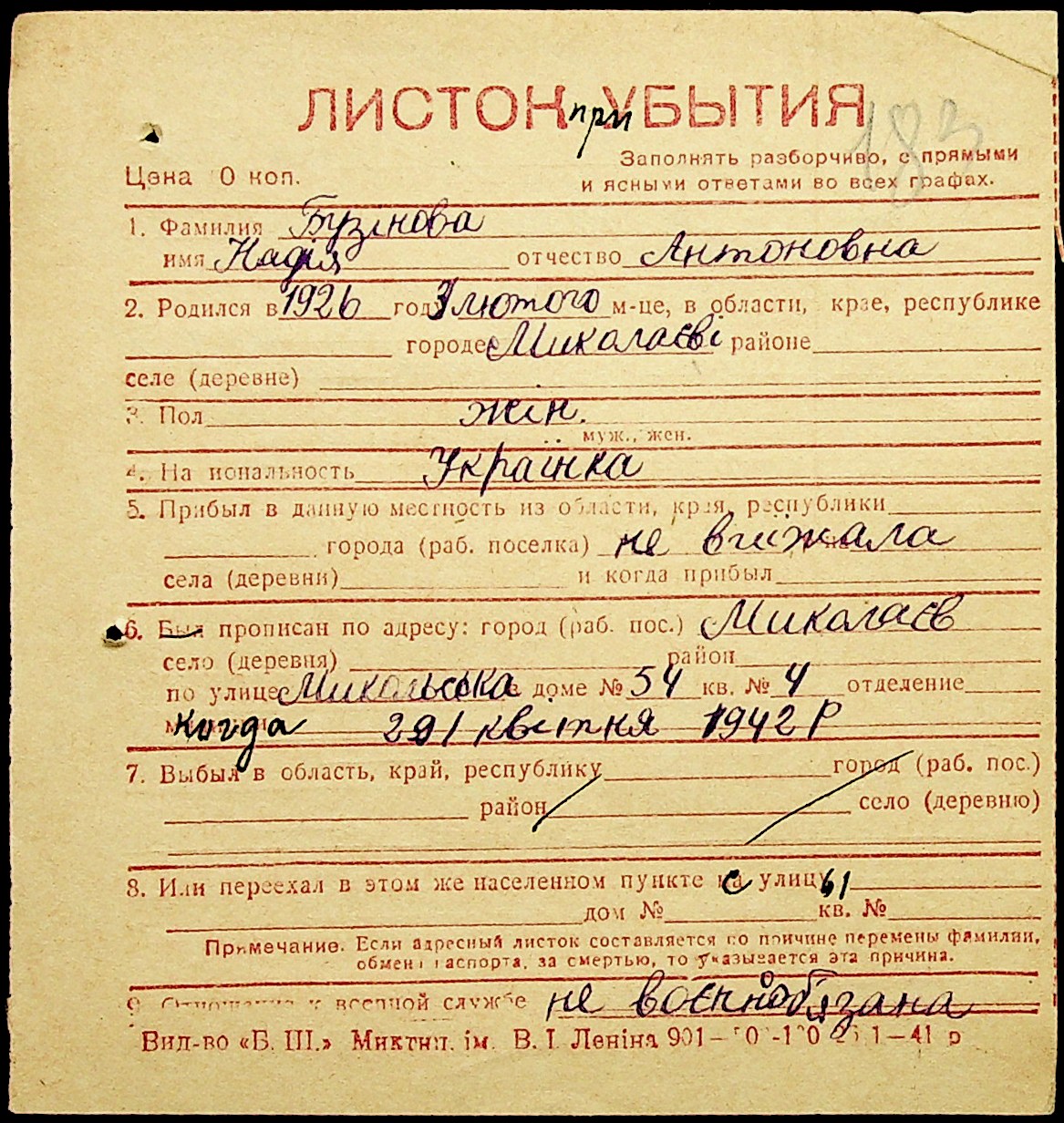 ◦ ◦ Фонд № Н-1016 “Адресне бюро м. Миколаєва”