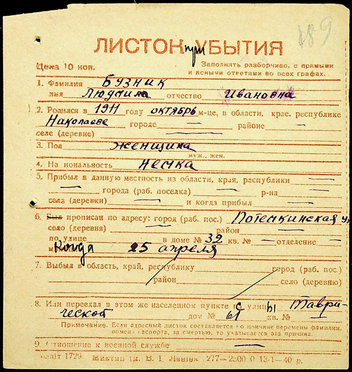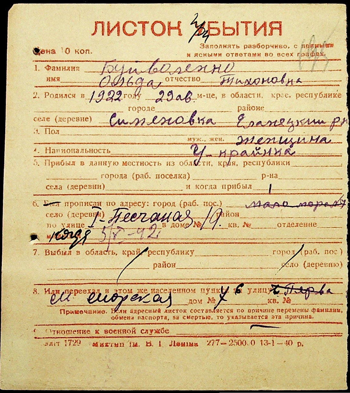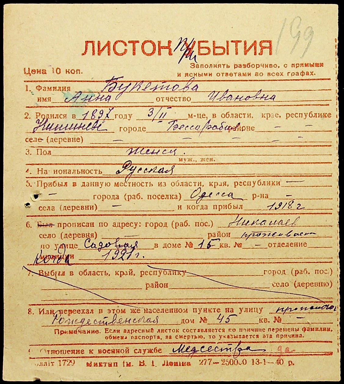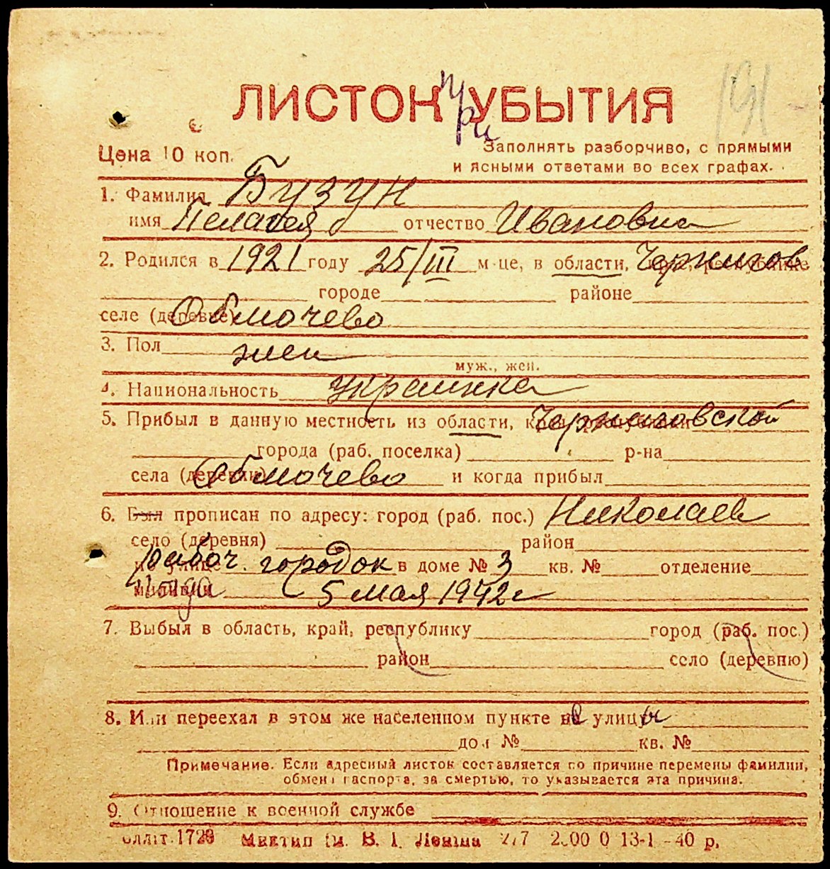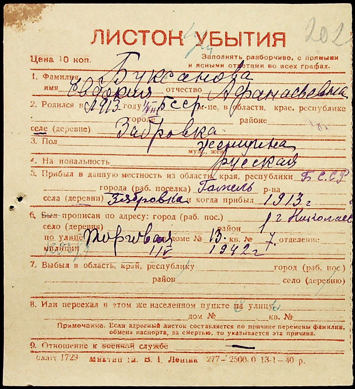 ◦ ◦ Фонд № Н-1016 “Адресне бюро м. Миколаєва”