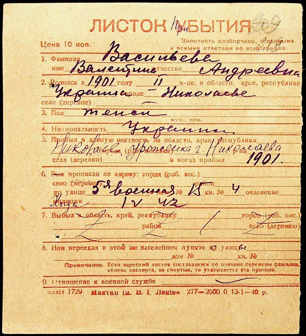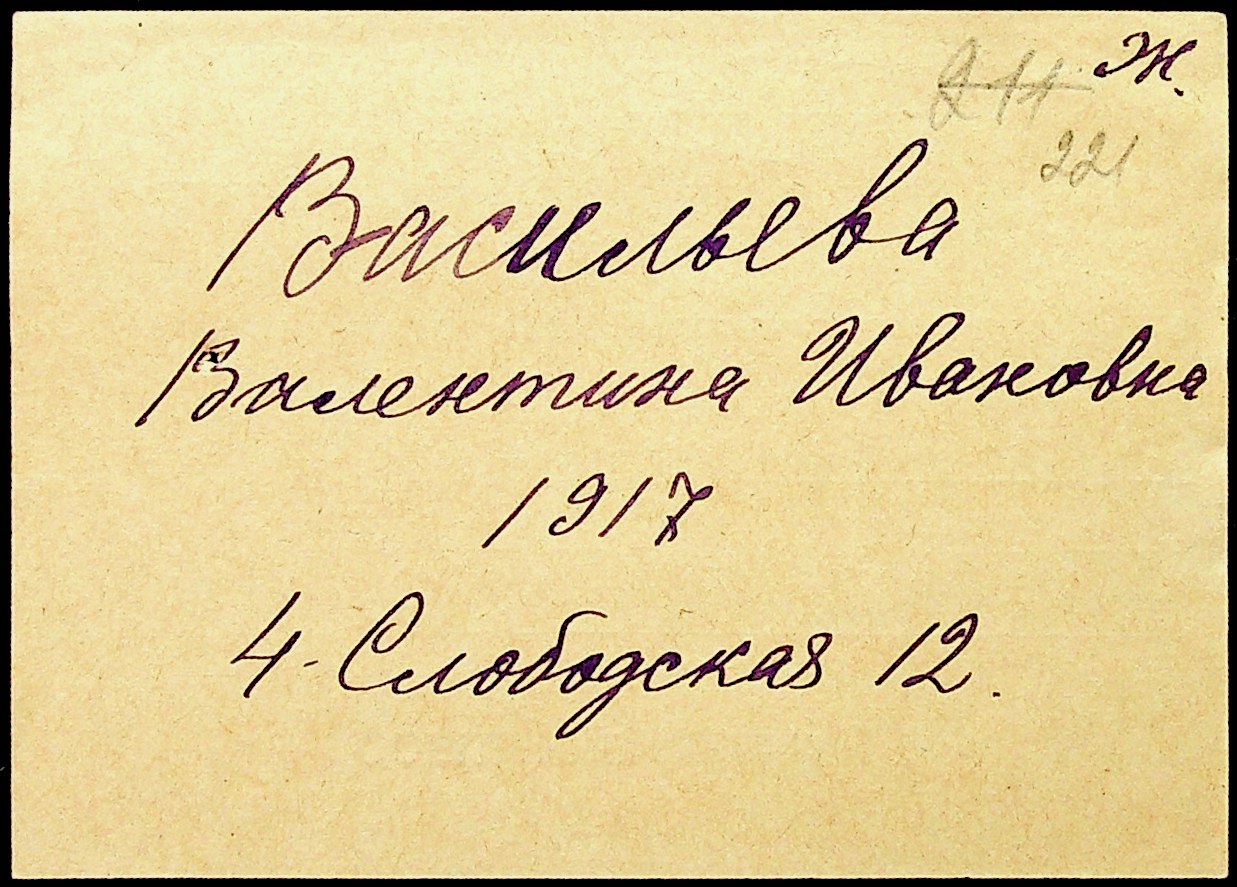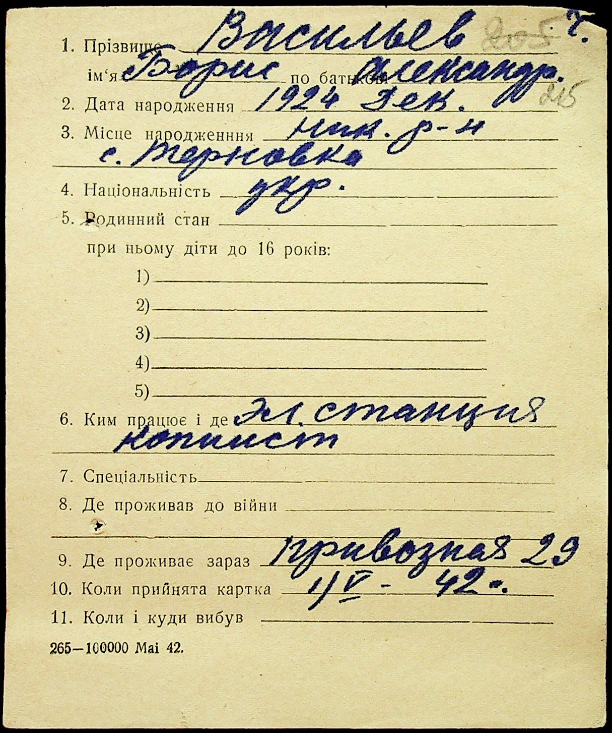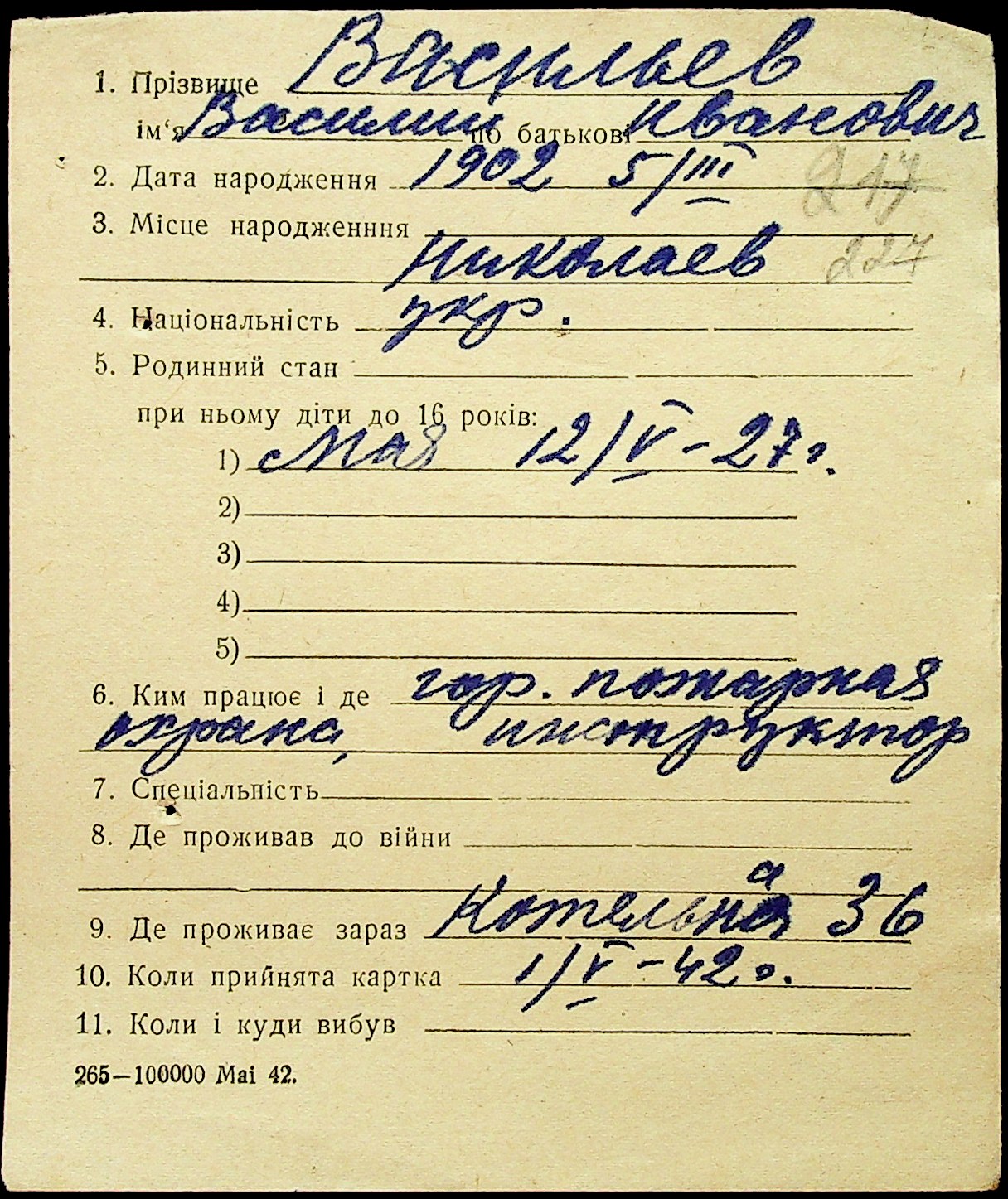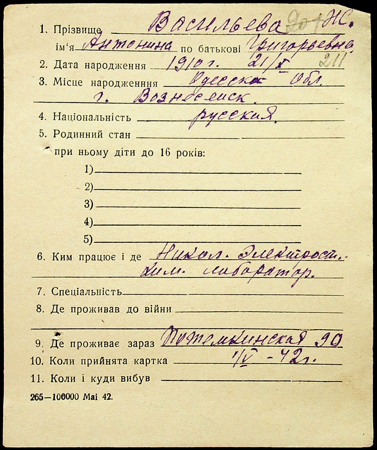 • • • • Справа № 9 “Картки адресного бюро м. Миколаєва на осіб, які працювали в німецько-фашистських установах та військових частинах. Прізвища на літеру «В». Том 1”