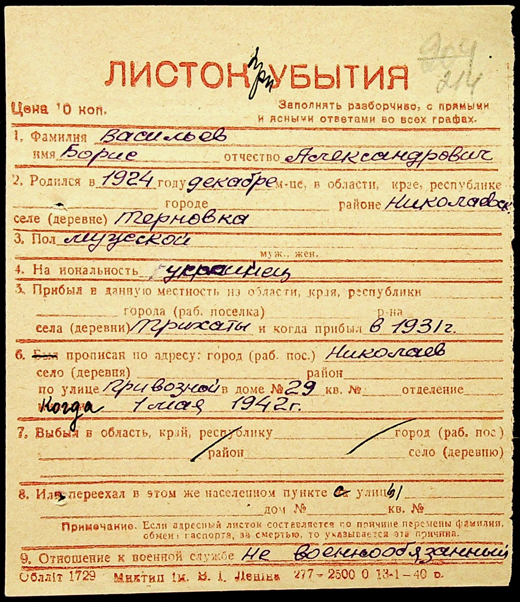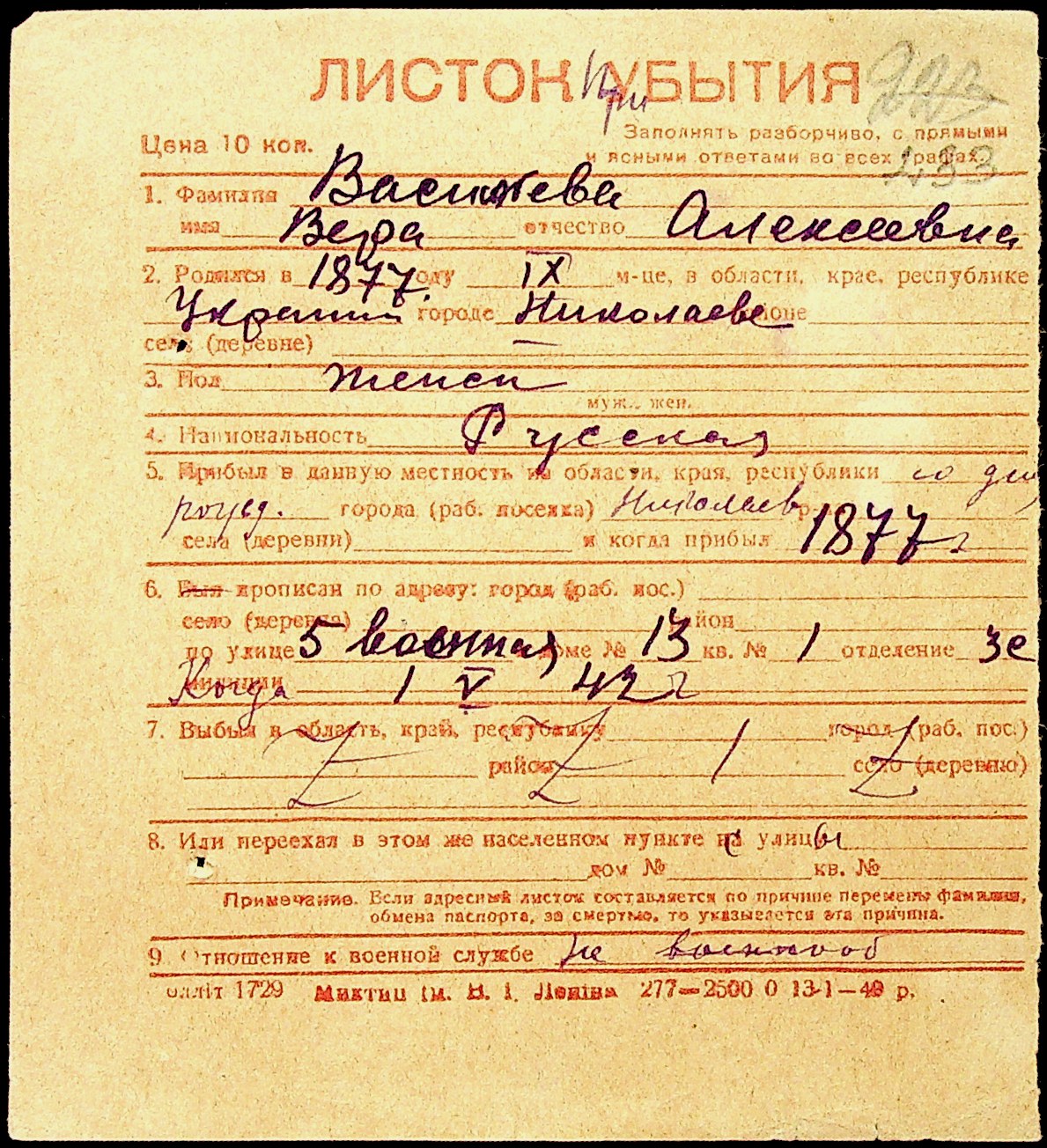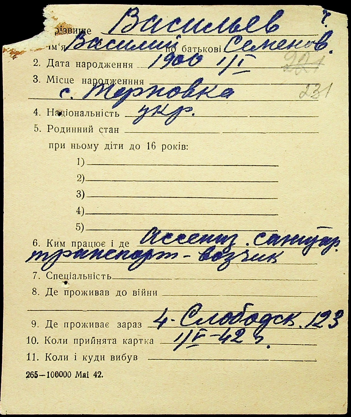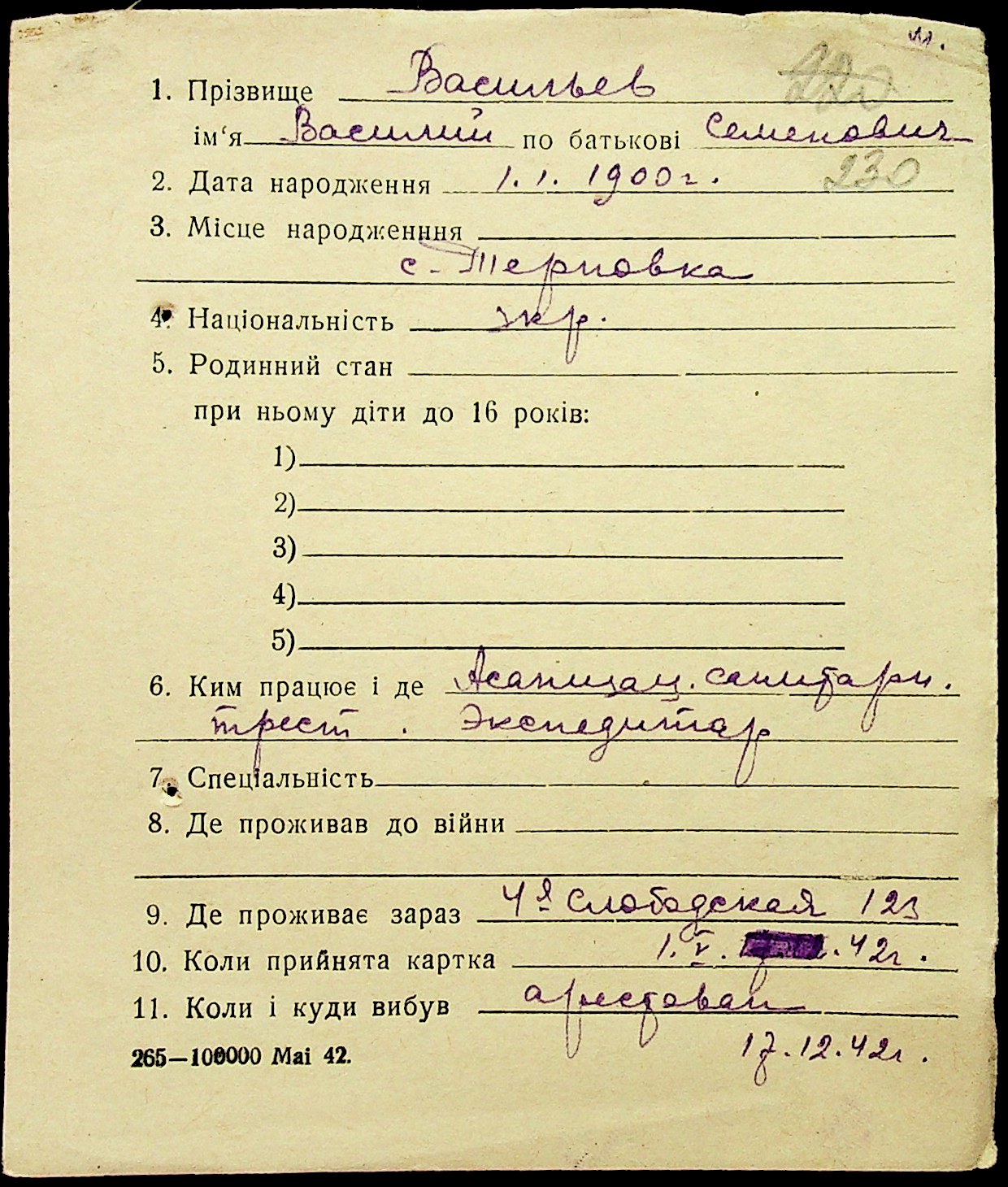 • • • • Справа № 9 “Картки адресного бюро м. Миколаєва на осіб, які працювали в німецько-фашистських установах та військових частинах. Прізвища на літеру «В». Том 1”