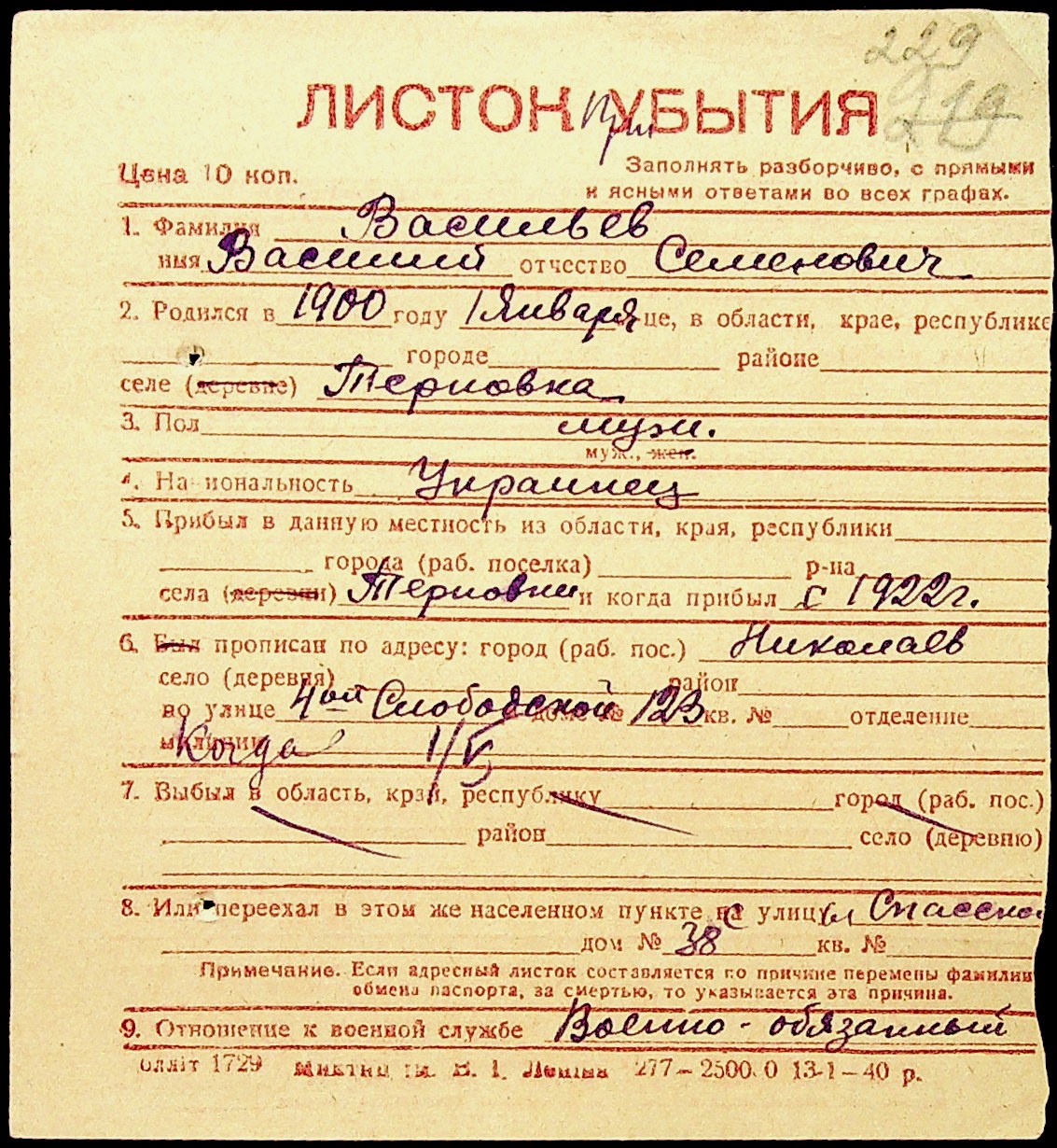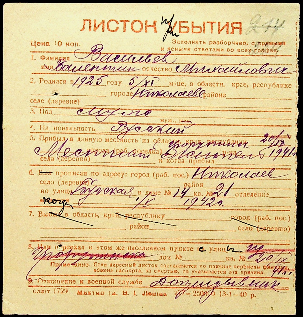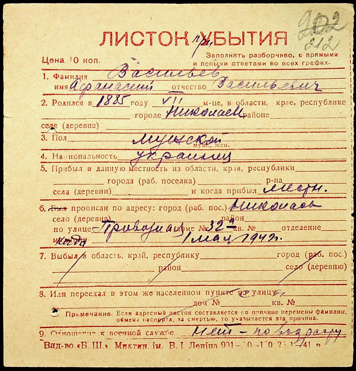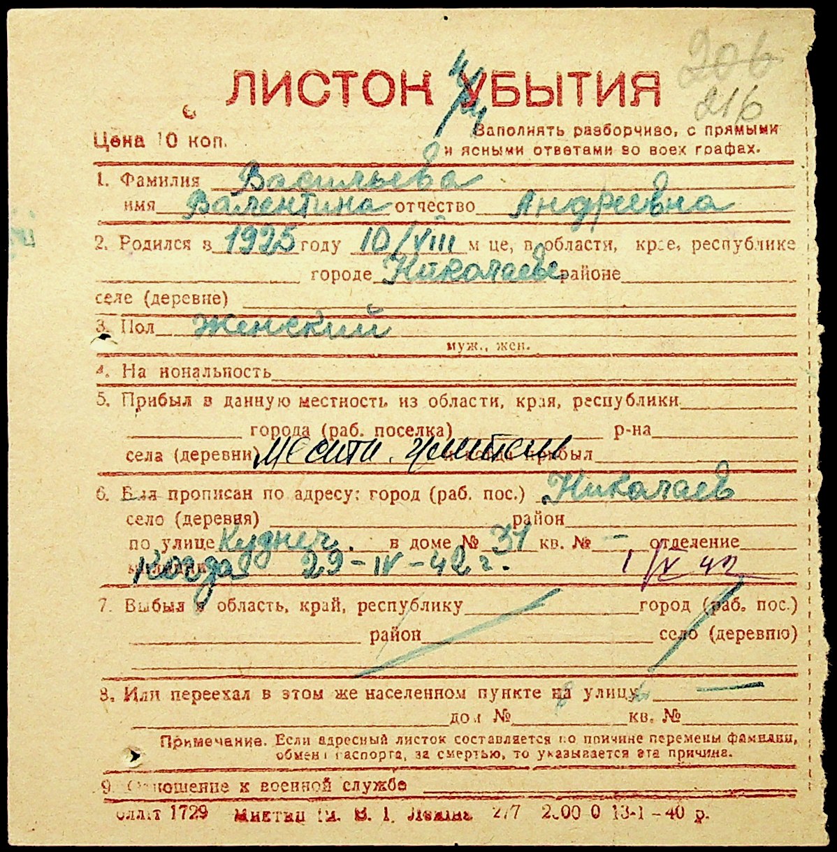 ◦ ◦ Фонд № Н-1016 “Адресне бюро м. Миколаєва”