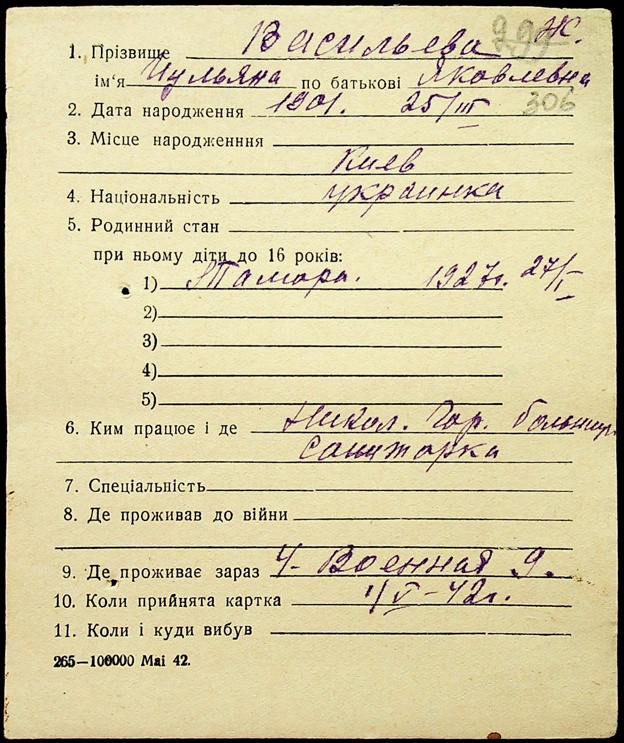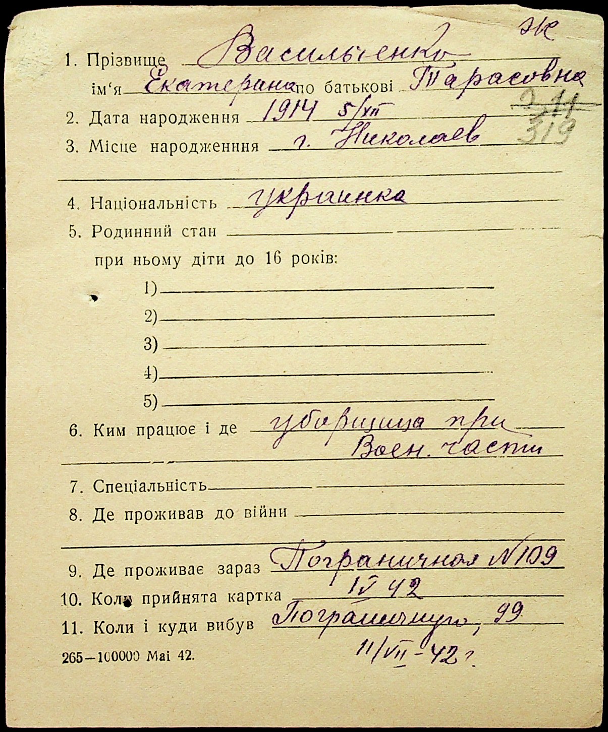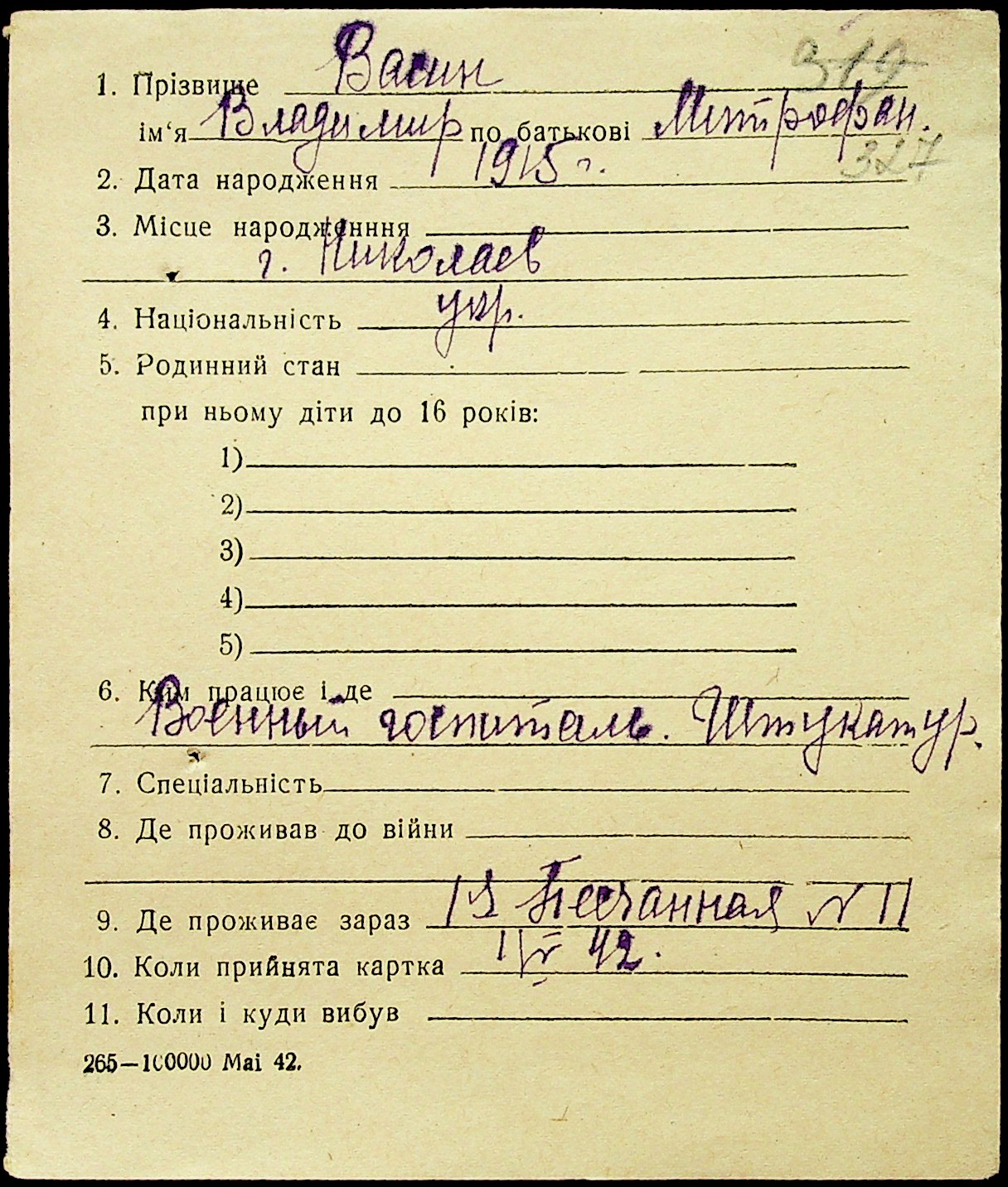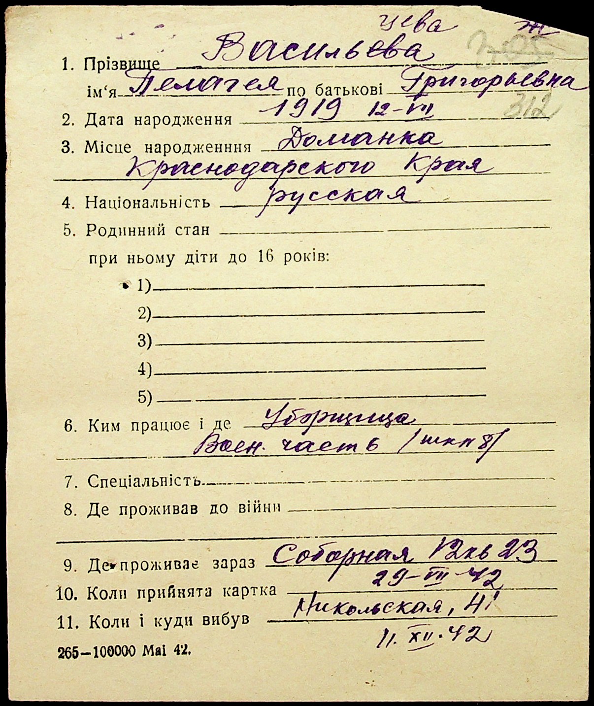 • • • • Справа № 9 “Картки адресного бюро м. Миколаєва на осіб, які працювали в німецько-фашистських установах та військових частинах. Прізвища на літеру «В». Том 1”