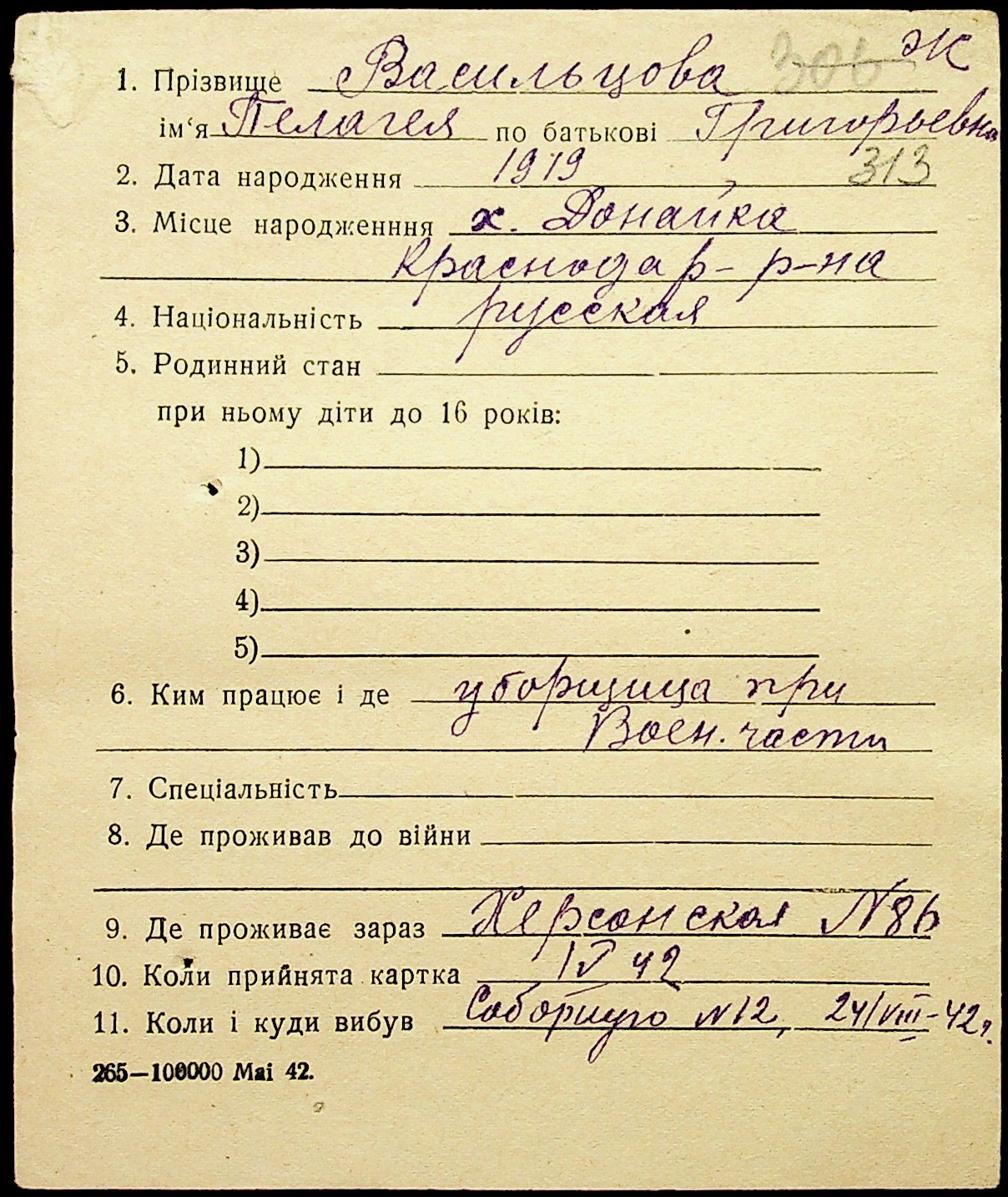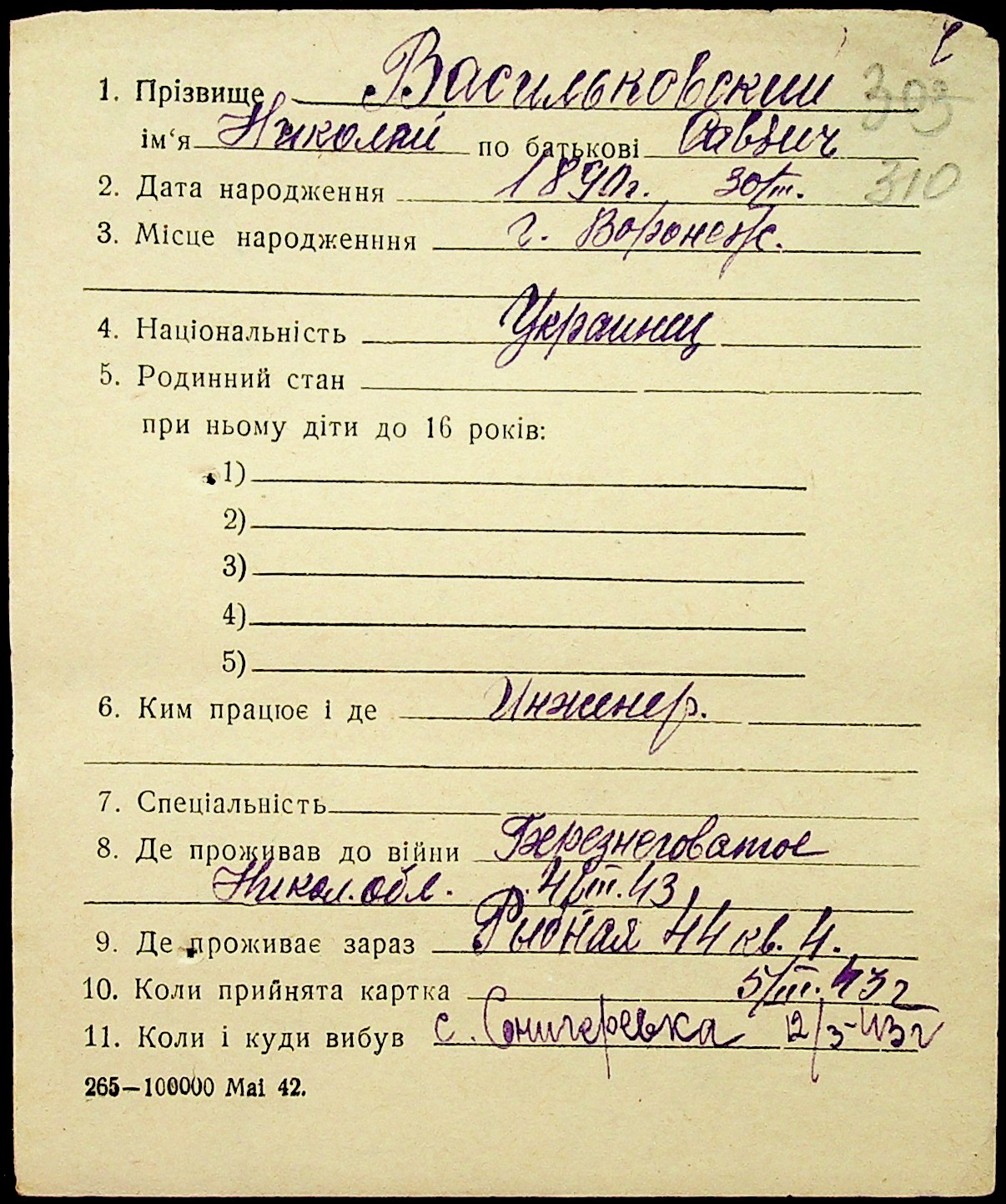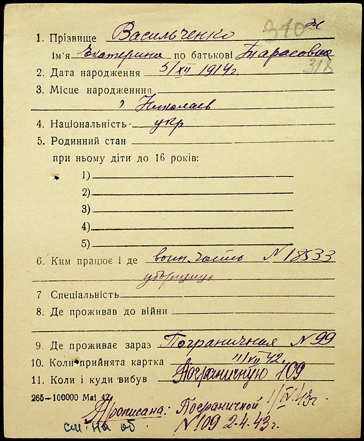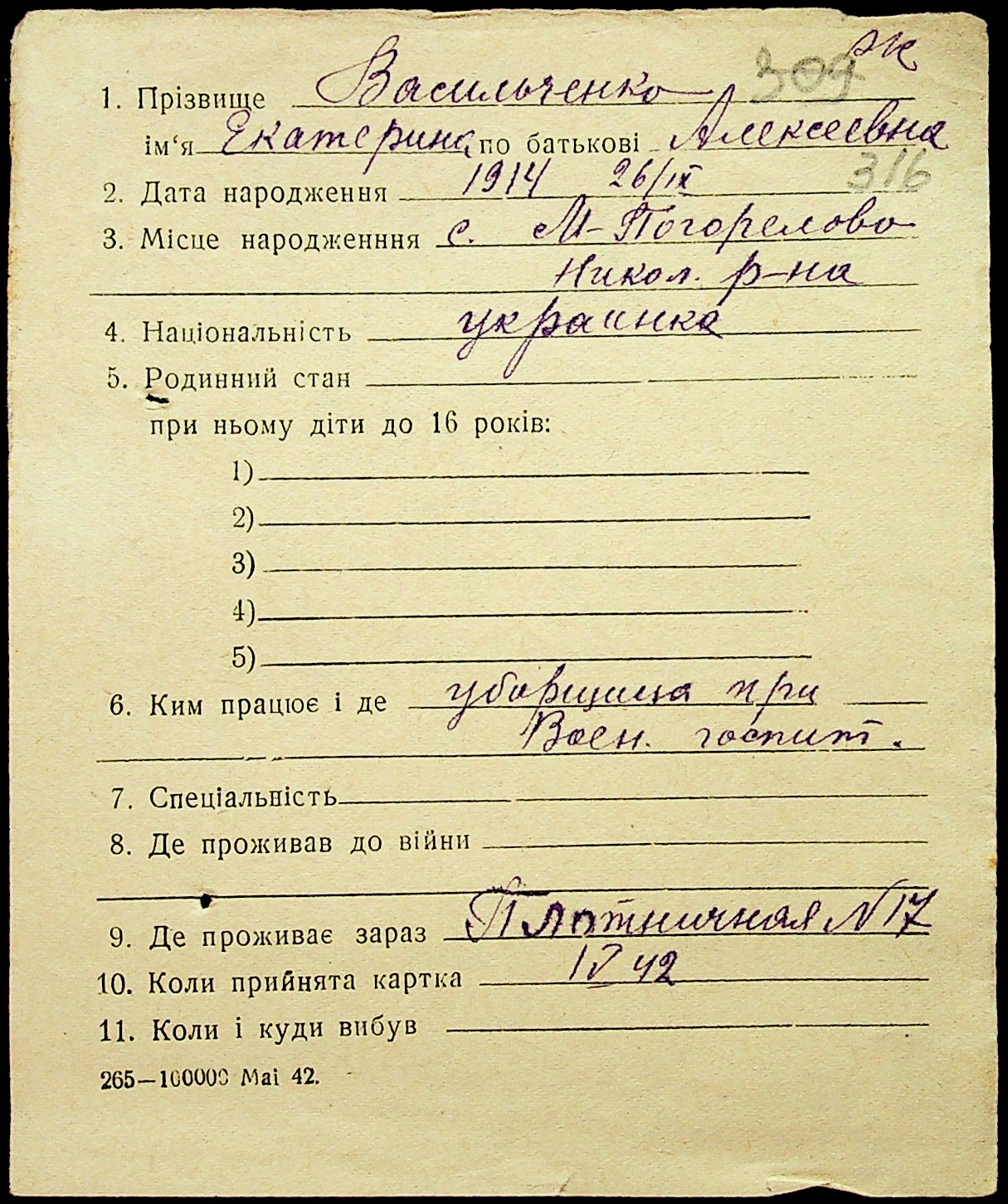 • • • • Справа № 9 “Картки адресного бюро м. Миколаєва на осіб, які працювали в німецько-фашистських установах та військових частинах. Прізвища на літеру «В». Том 1”