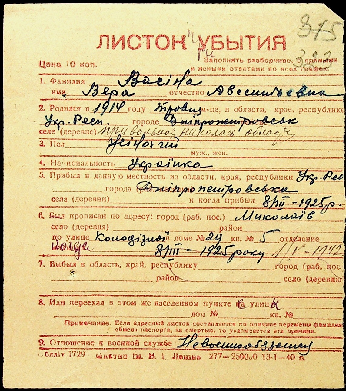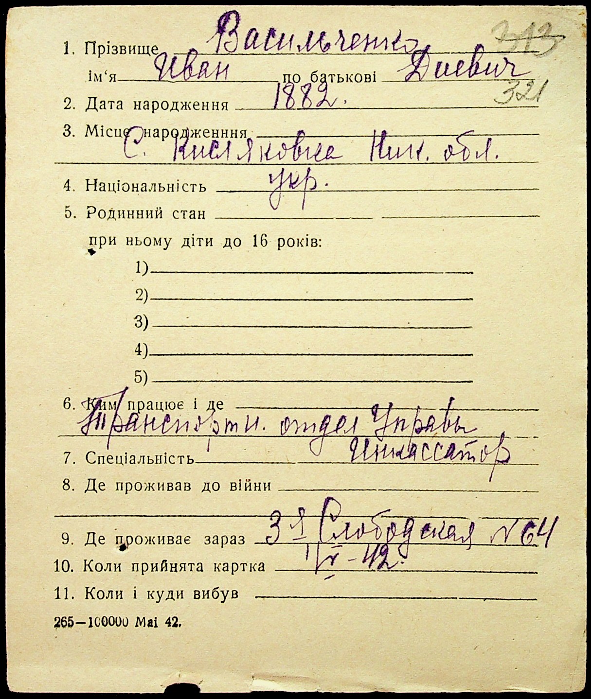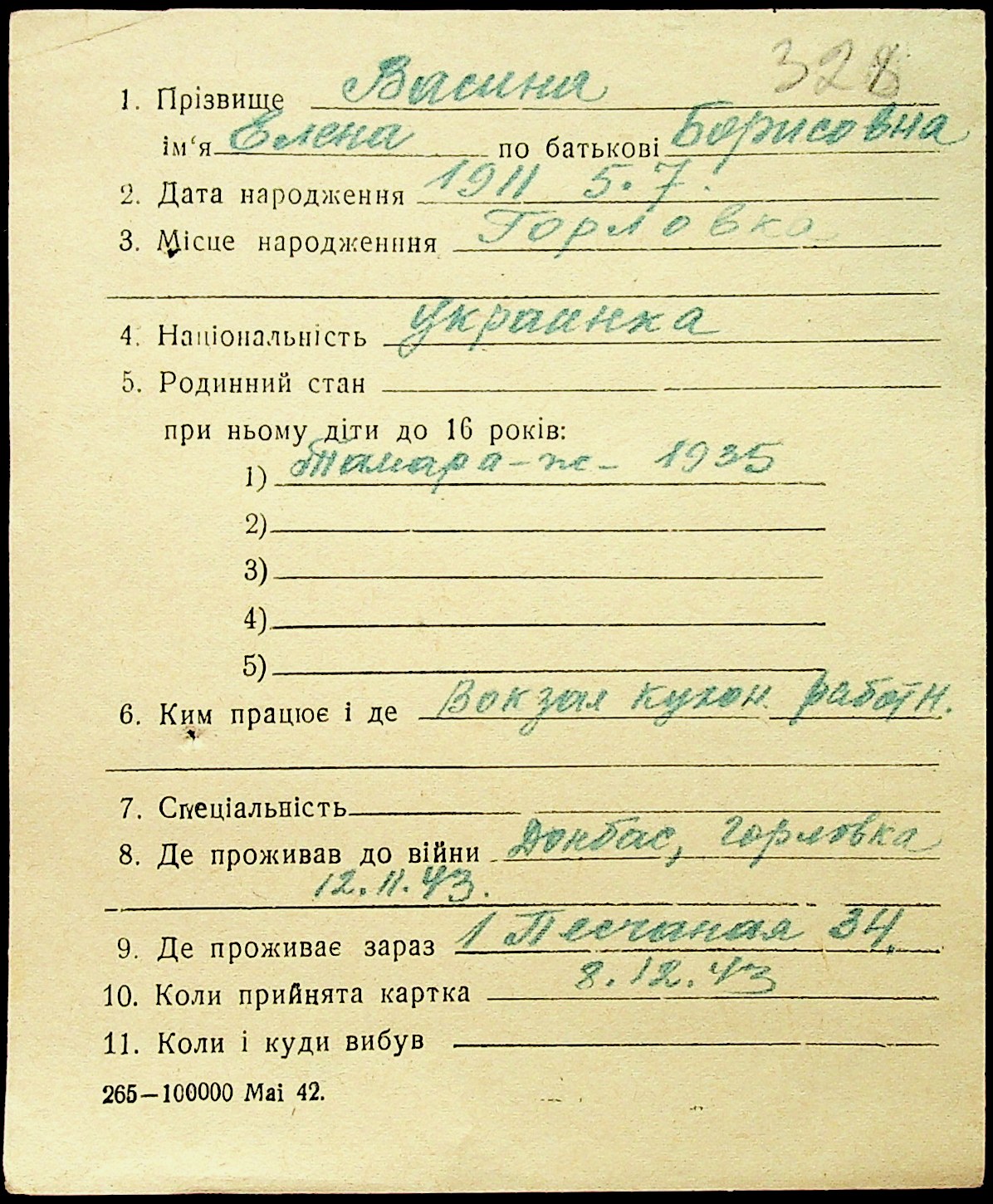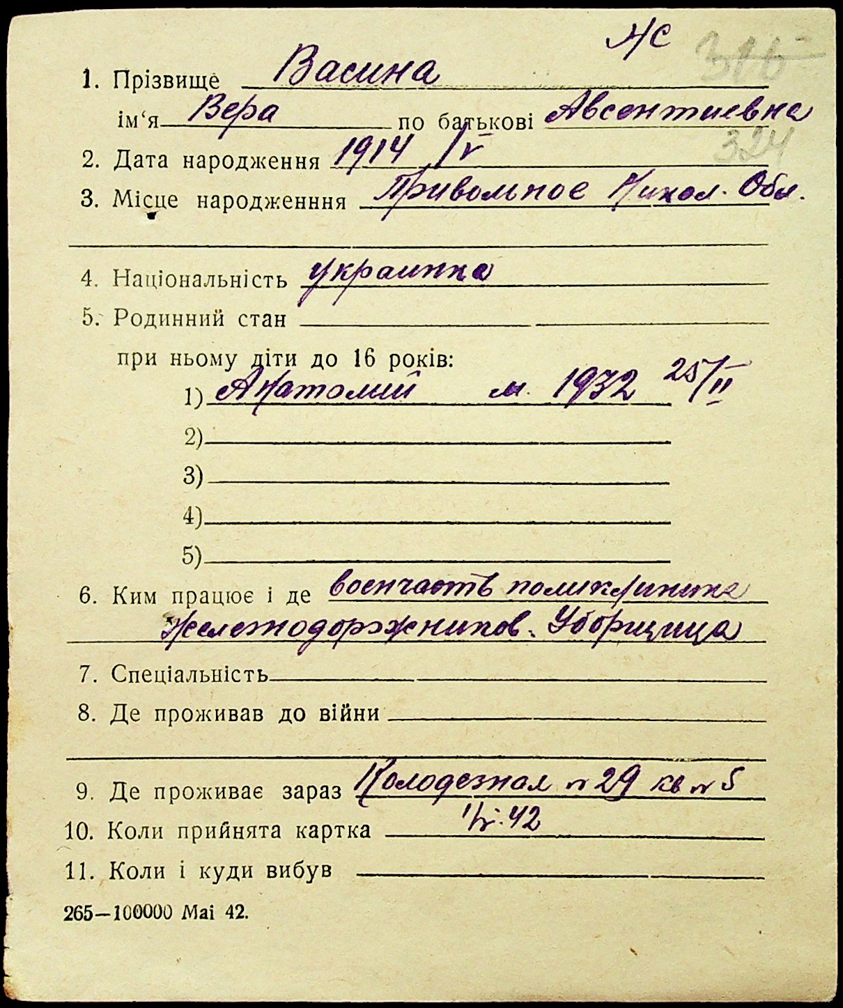 • • • • Справа № 9 “Картки адресного бюро м. Миколаєва на осіб, які працювали в німецько-фашистських установах та військових частинах. Прізвища на літеру «В». Том 1”