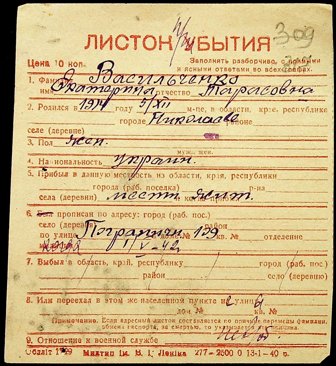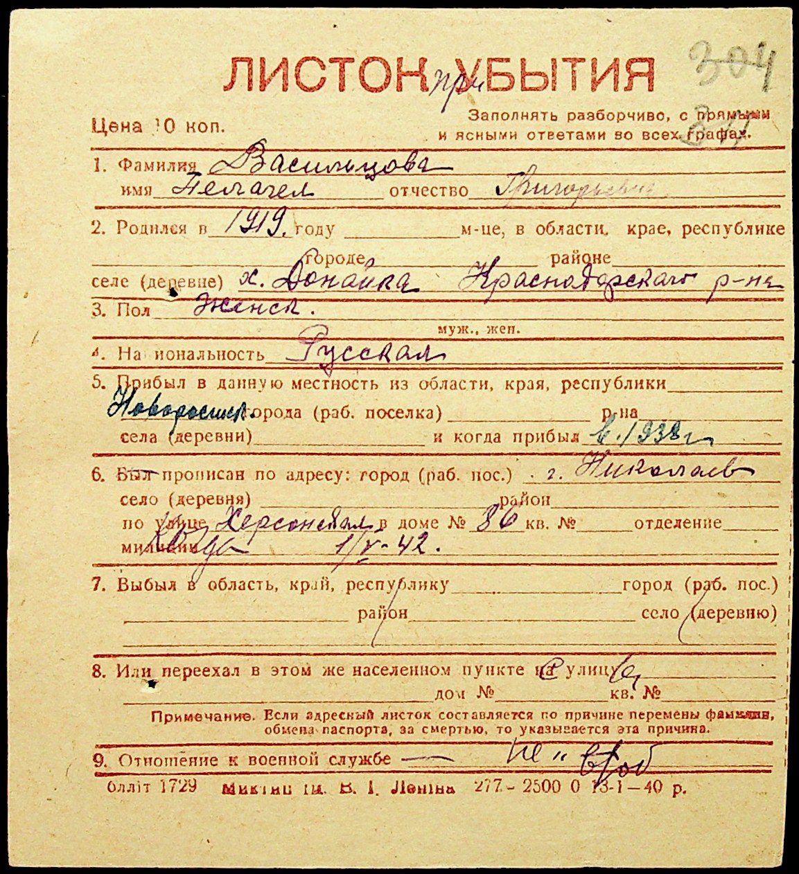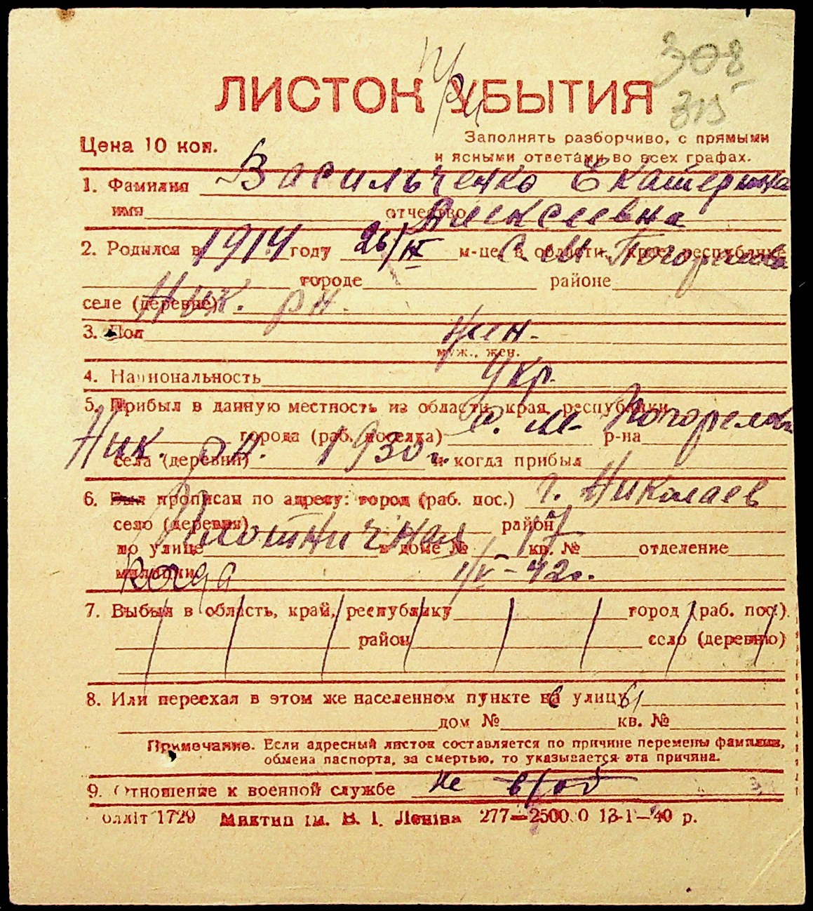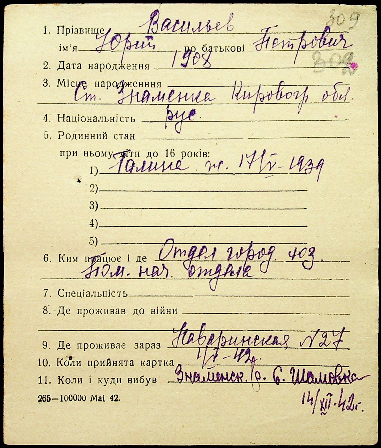 • • • • Справа № 9 “Картки адресного бюро м. Миколаєва на осіб, які працювали в німецько-фашистських установах та військових частинах. Прізвища на літеру «В». Том 1”