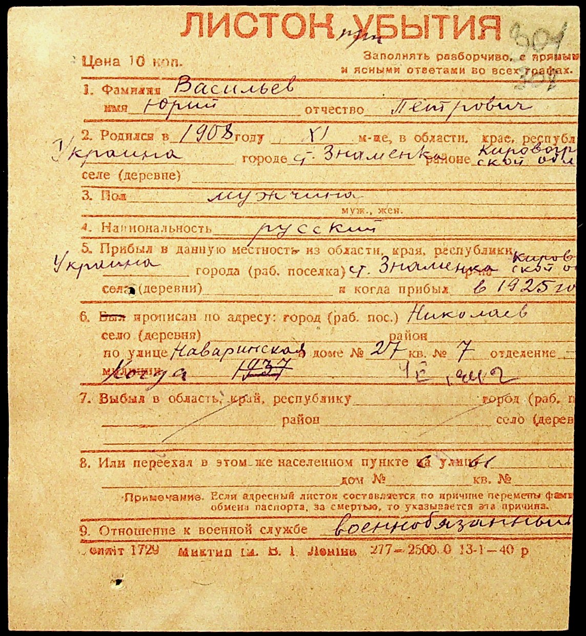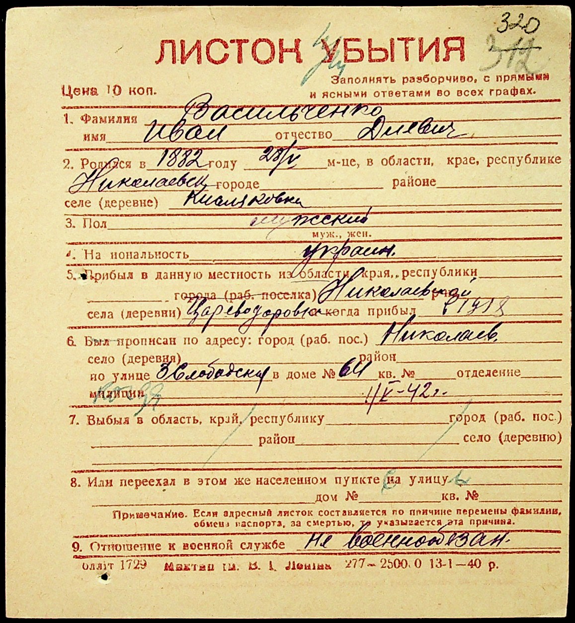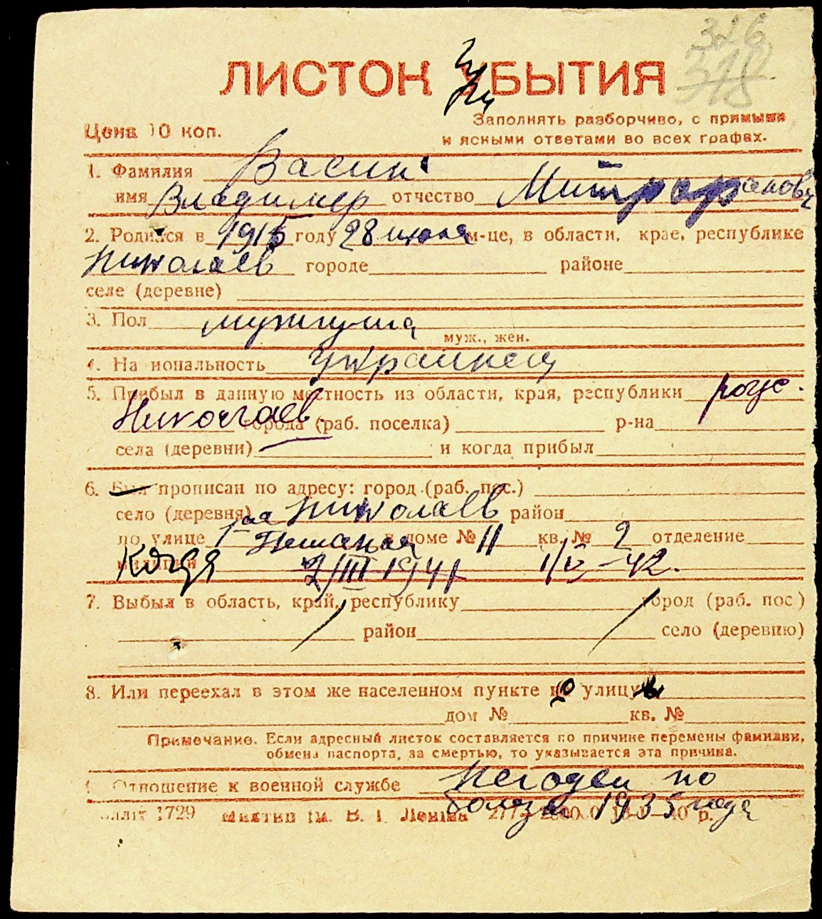 ◦ ◦ Фонд № Н-1016 “Адресне бюро м. Миколаєва”
