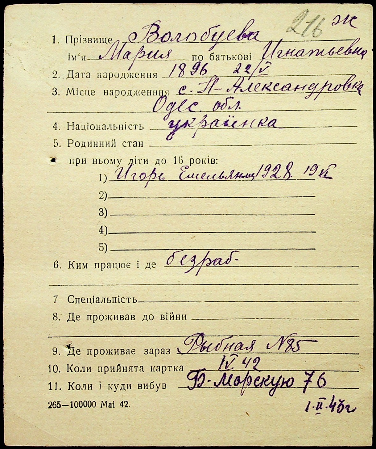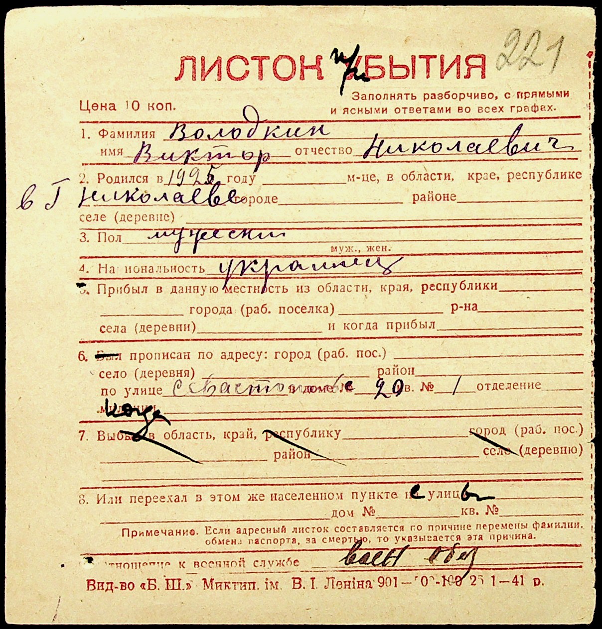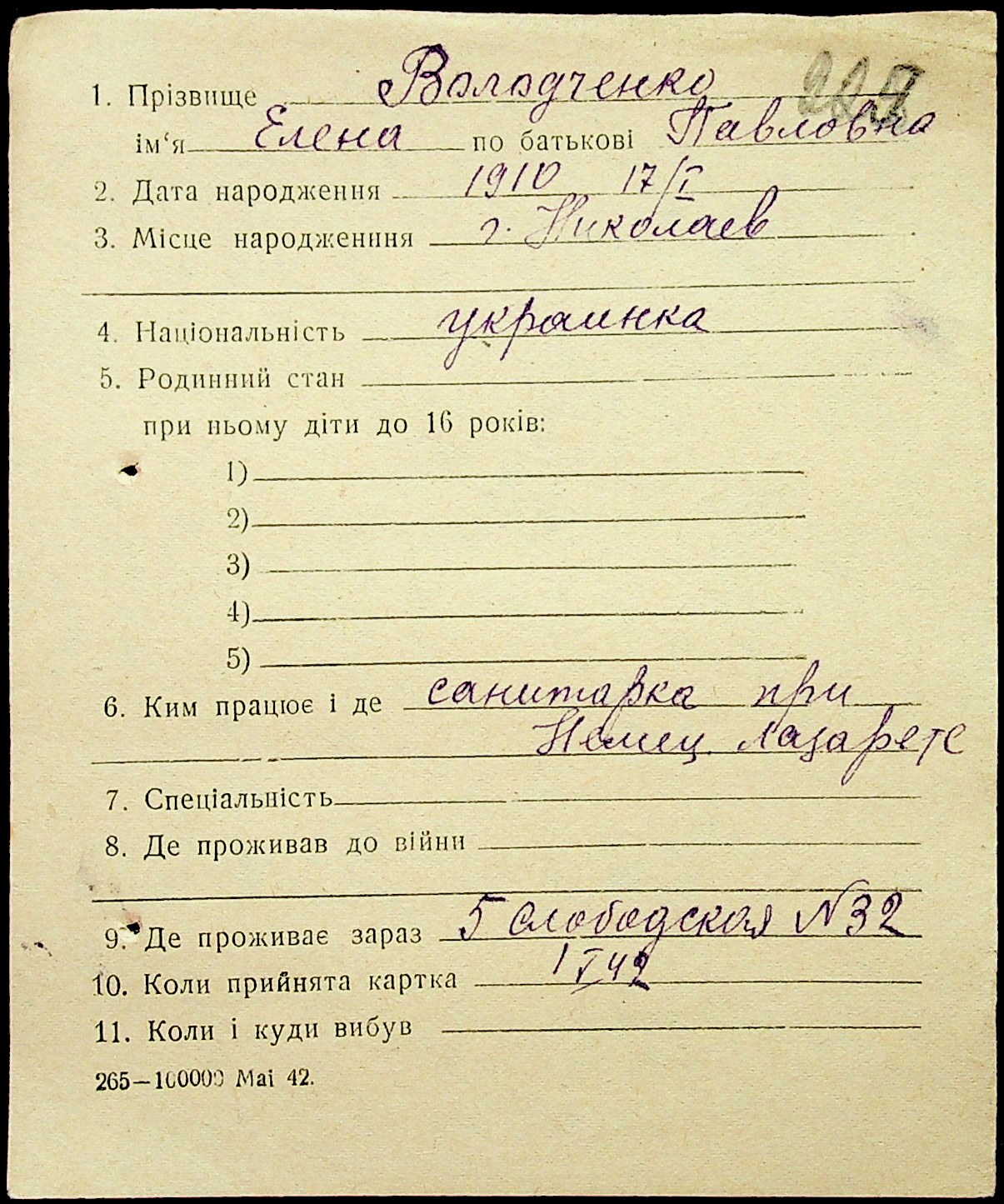 ◦ ◦ Фонд № Н-1016 “Адресне бюро м. Миколаєва”