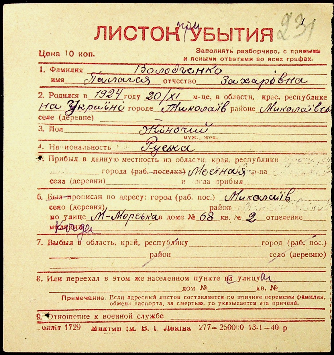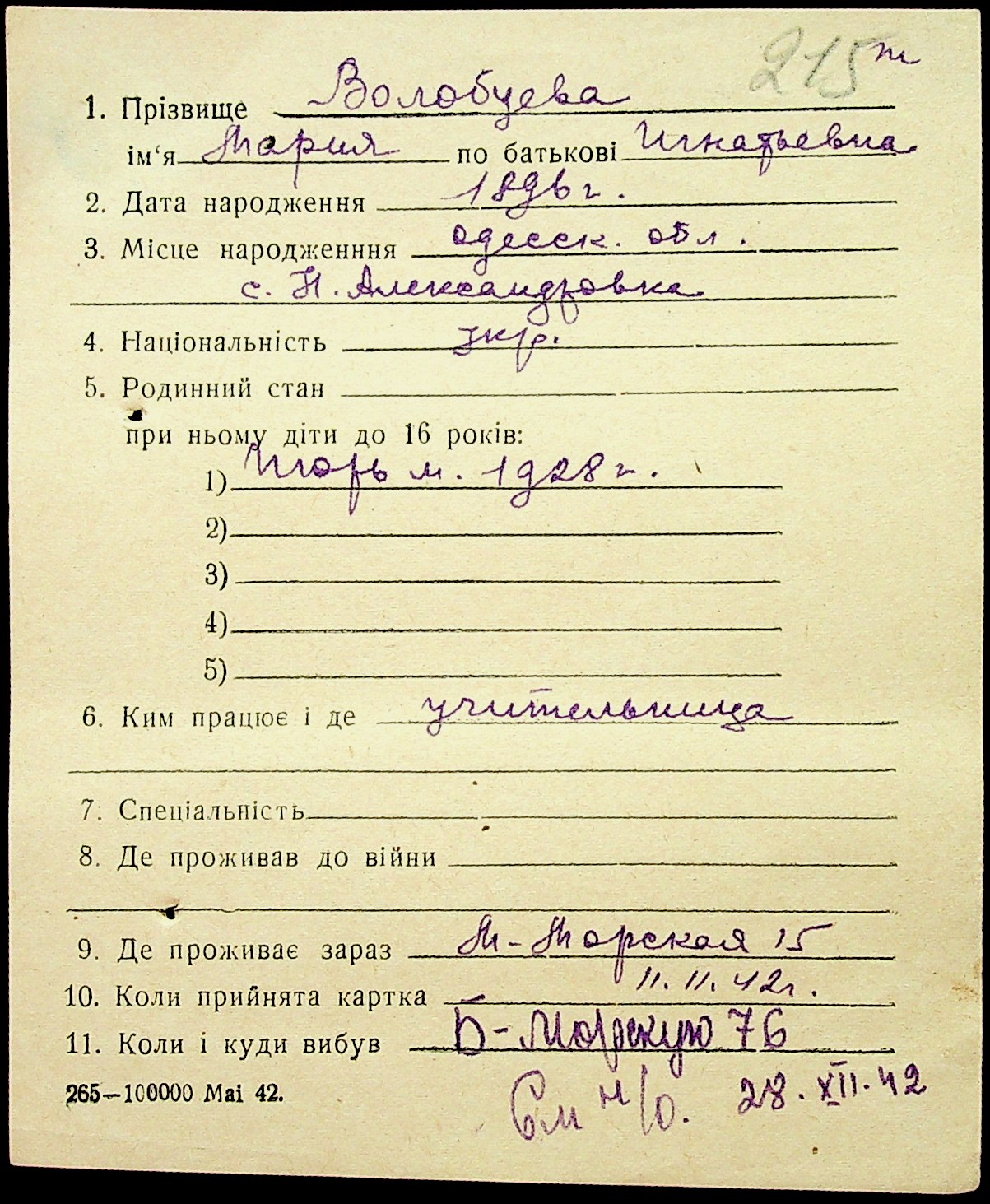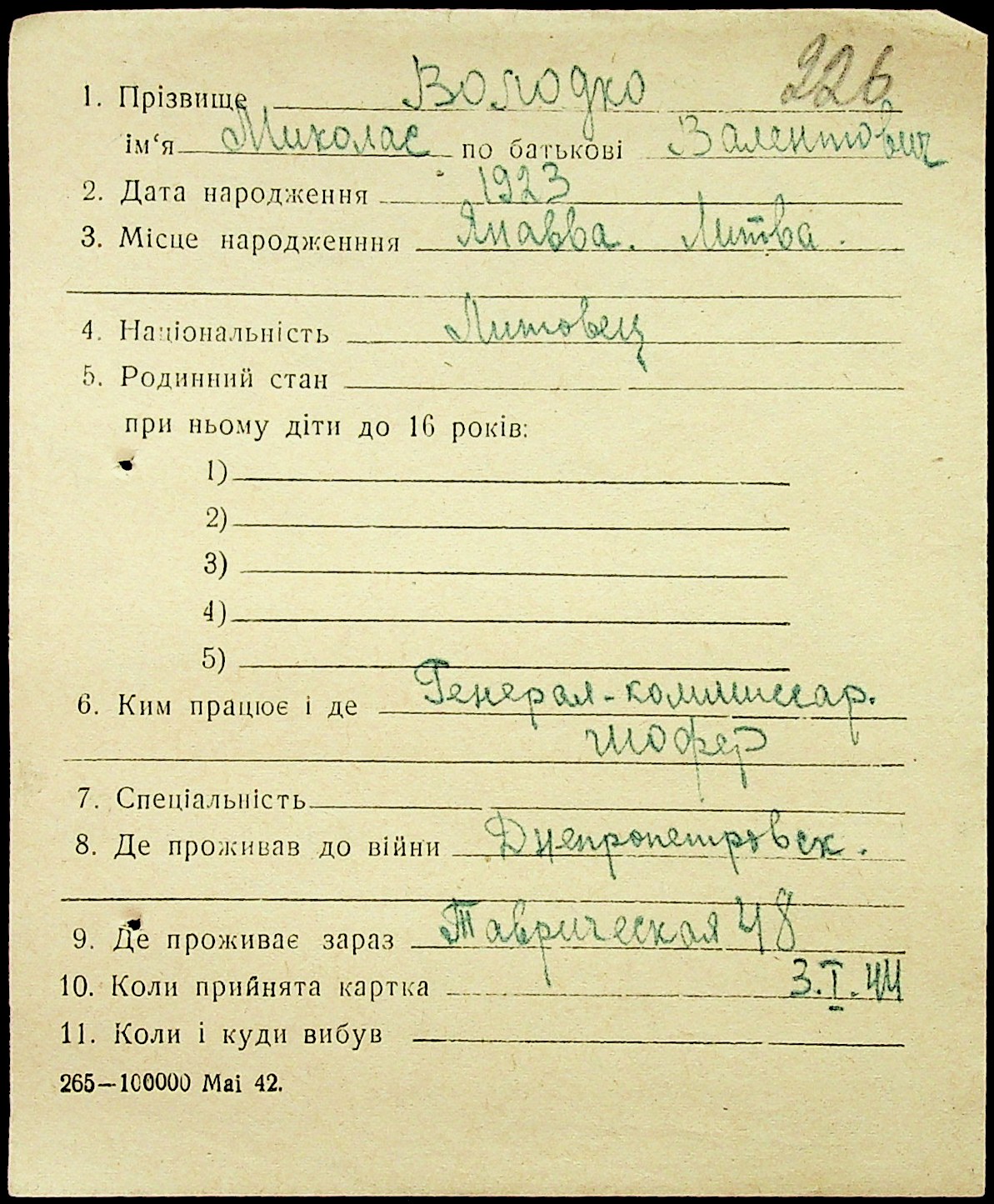 ◦ ◦ Фонд № Н-1016 “Адресне бюро м. Миколаєва”