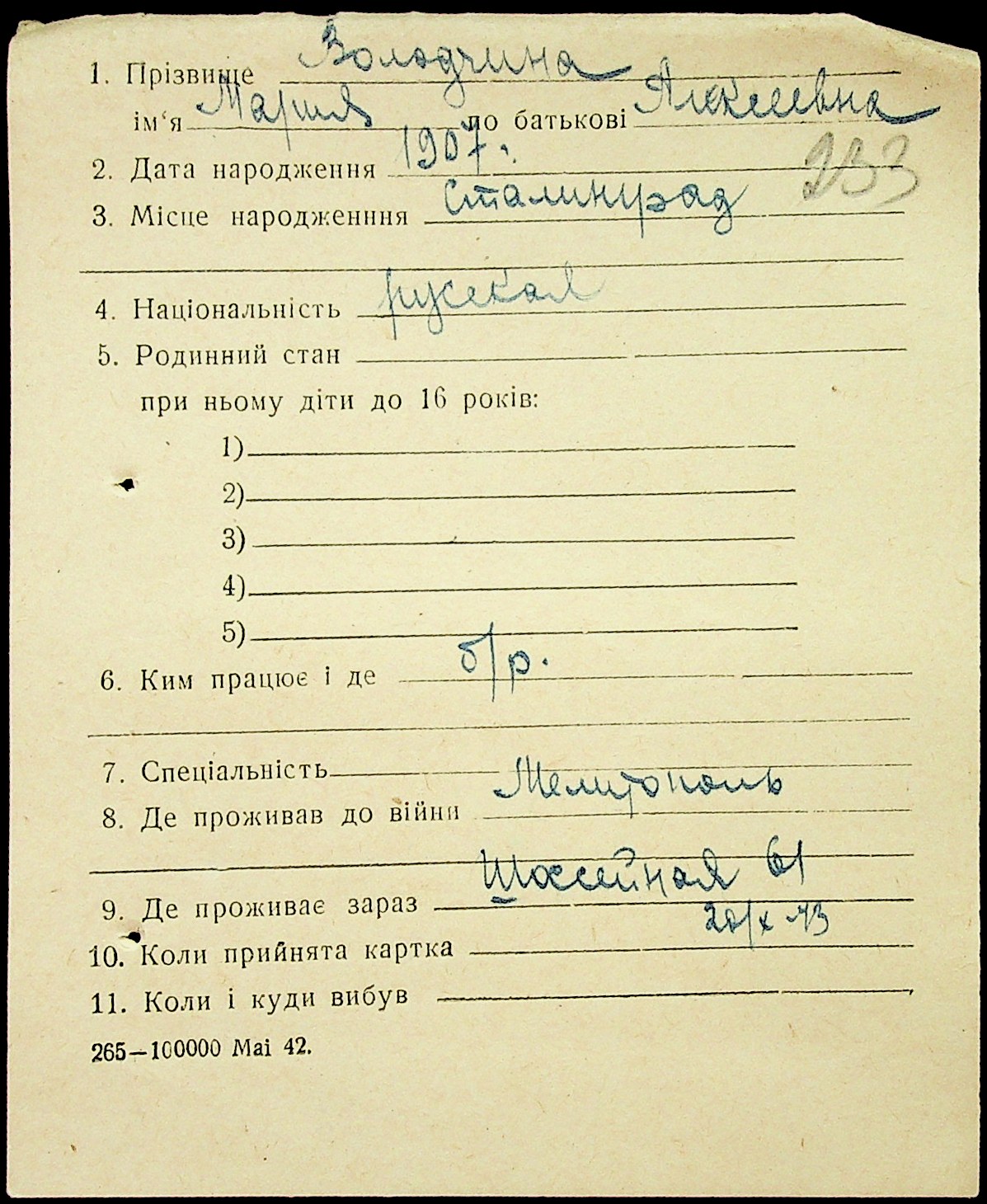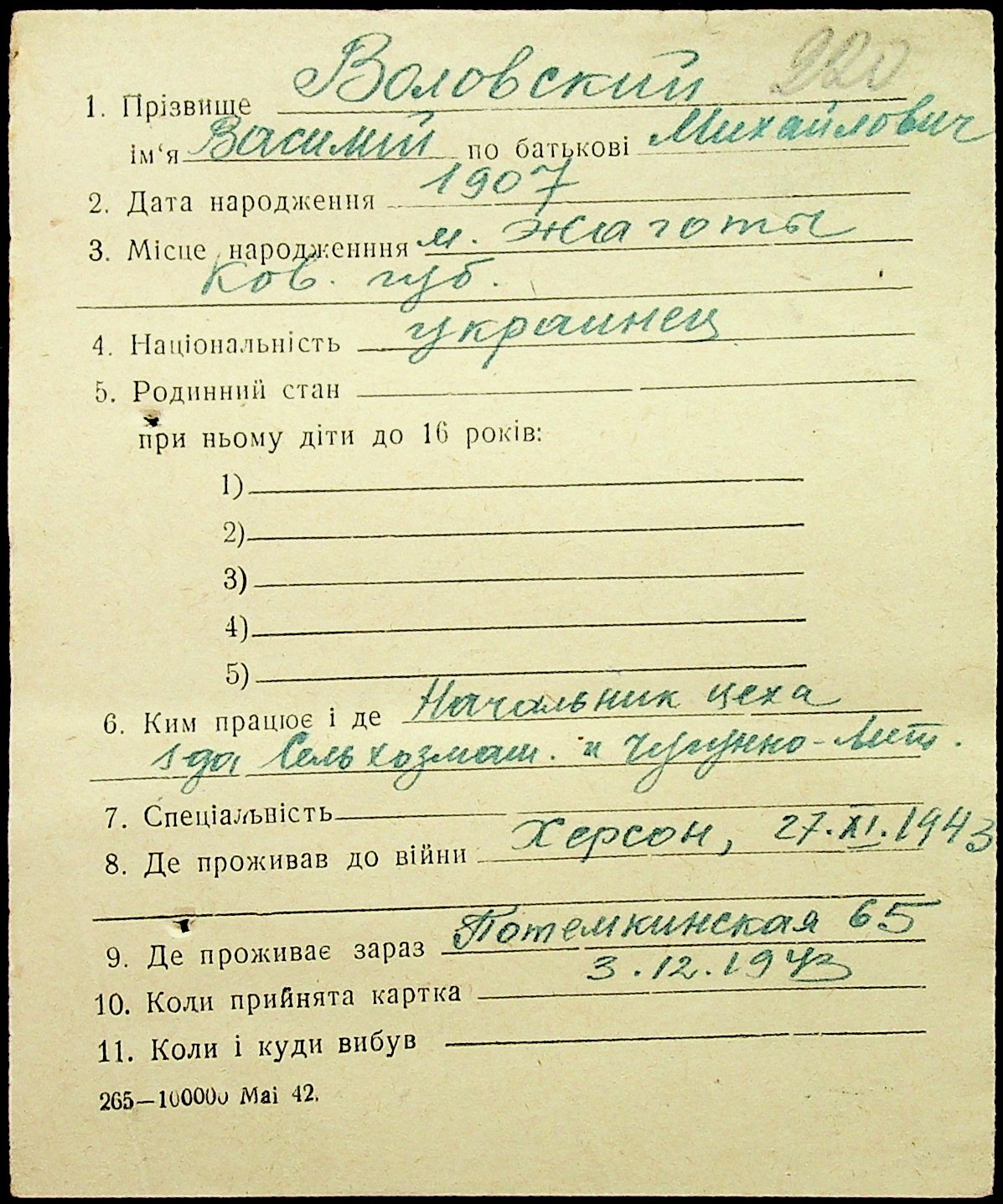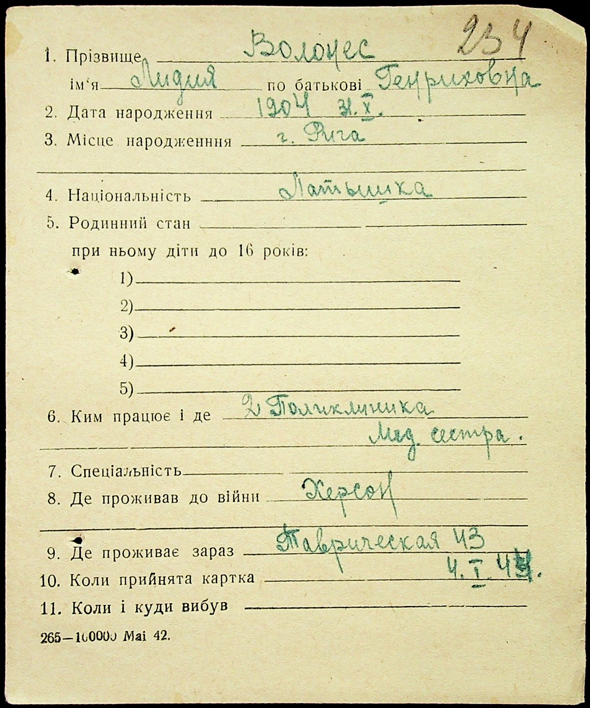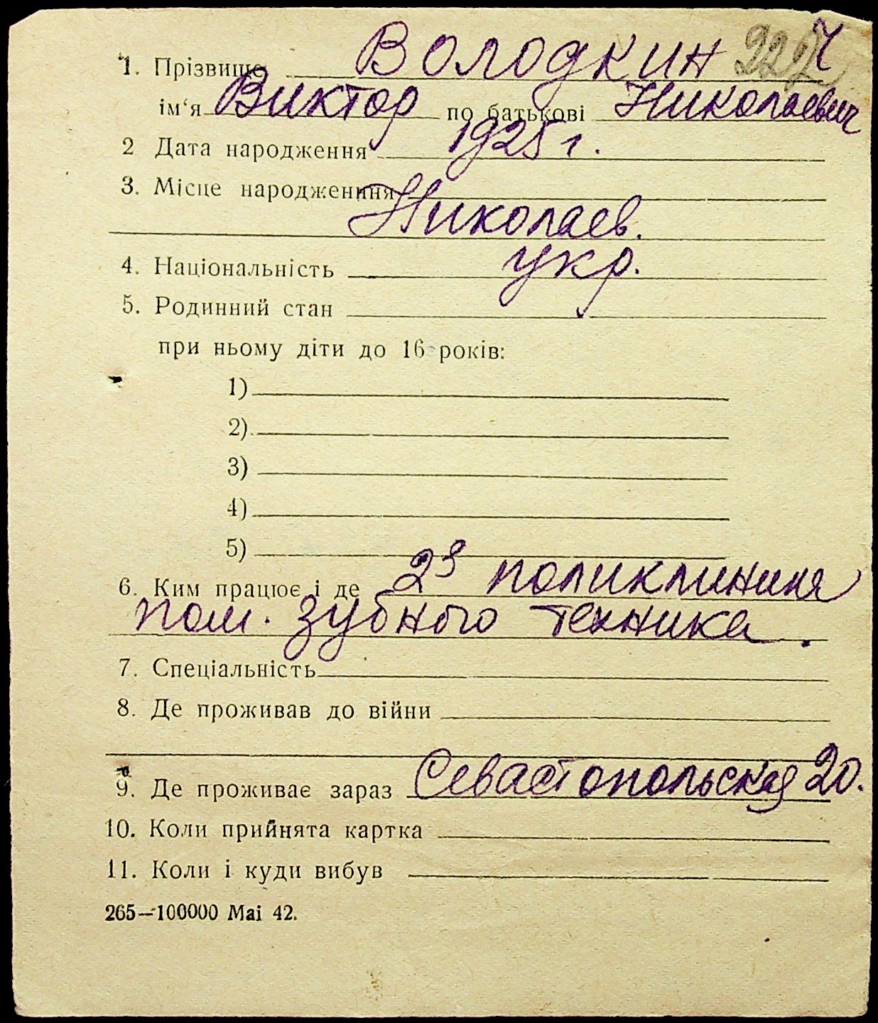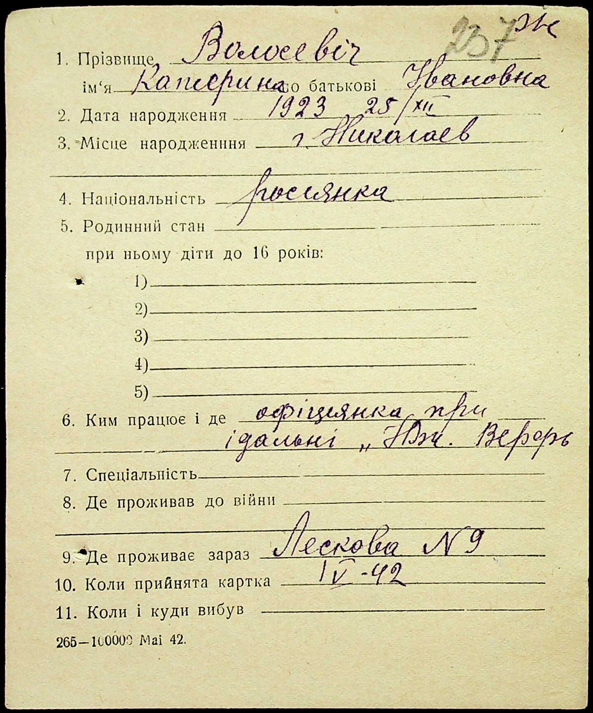 • • • • Справа № 12 “Картки адресного бюро м. Миколаєва на осіб, які працювали в німецько-фашистських установах та військових частинах. Прізвища на літеру «В». Том 4”