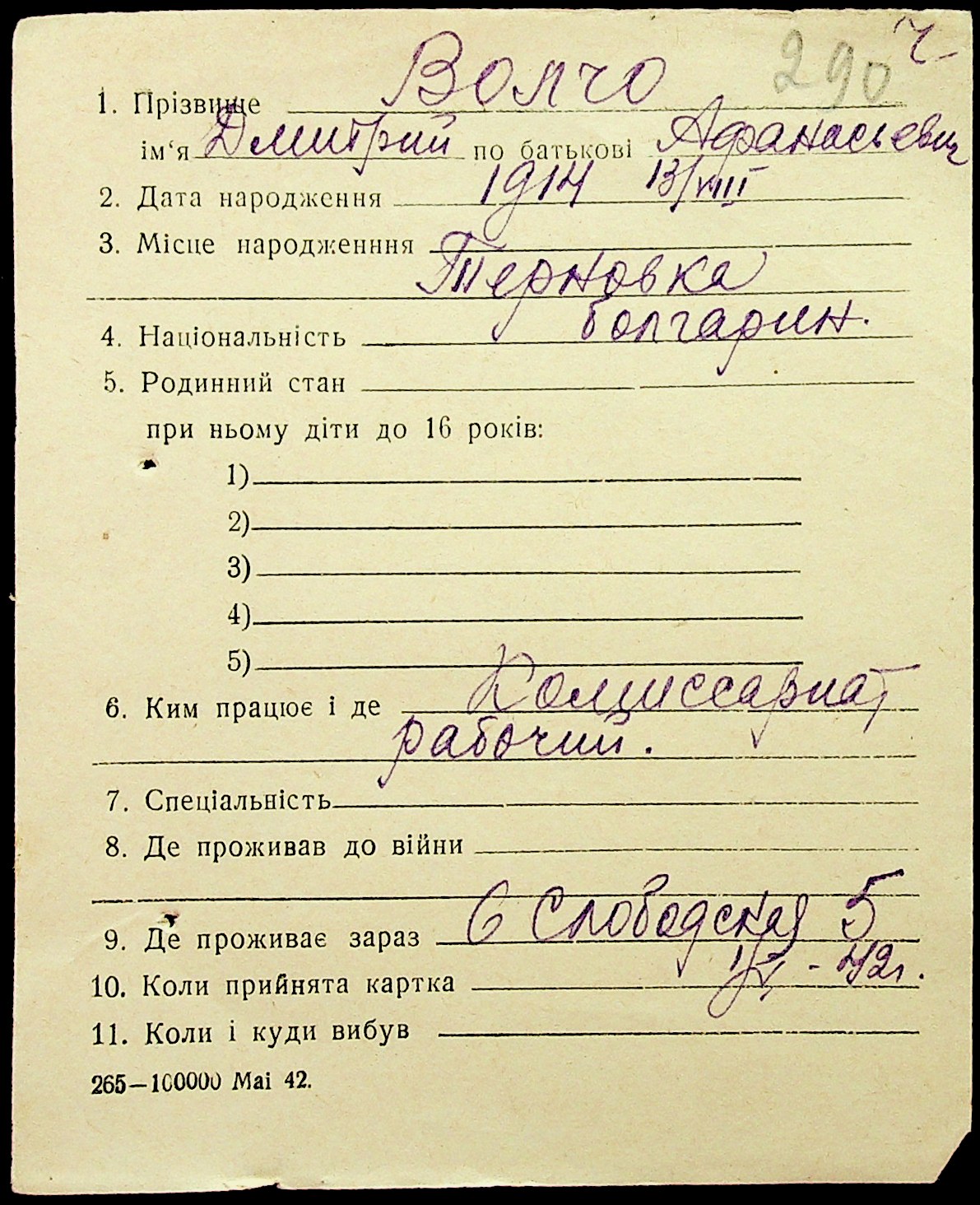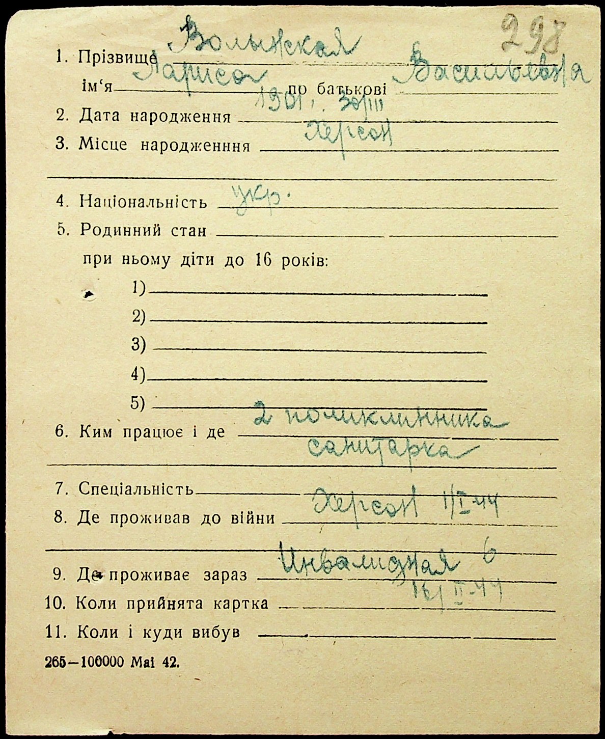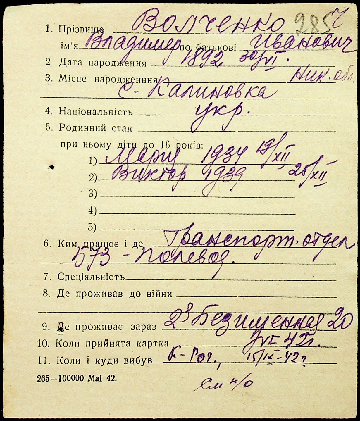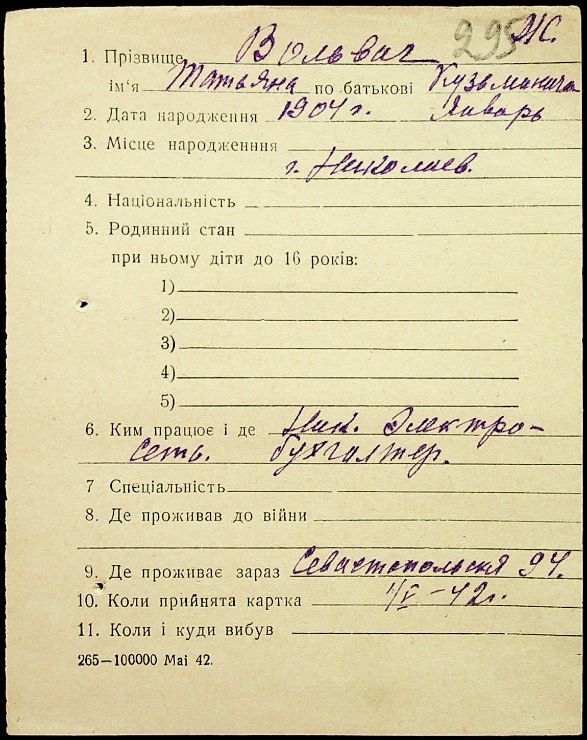 • • • • Справа № 12 “Картки адресного бюро м. Миколаєва на осіб, які працювали в німецько-фашистських установах та військових частинах. Прізвища на літеру «В». Том 4”