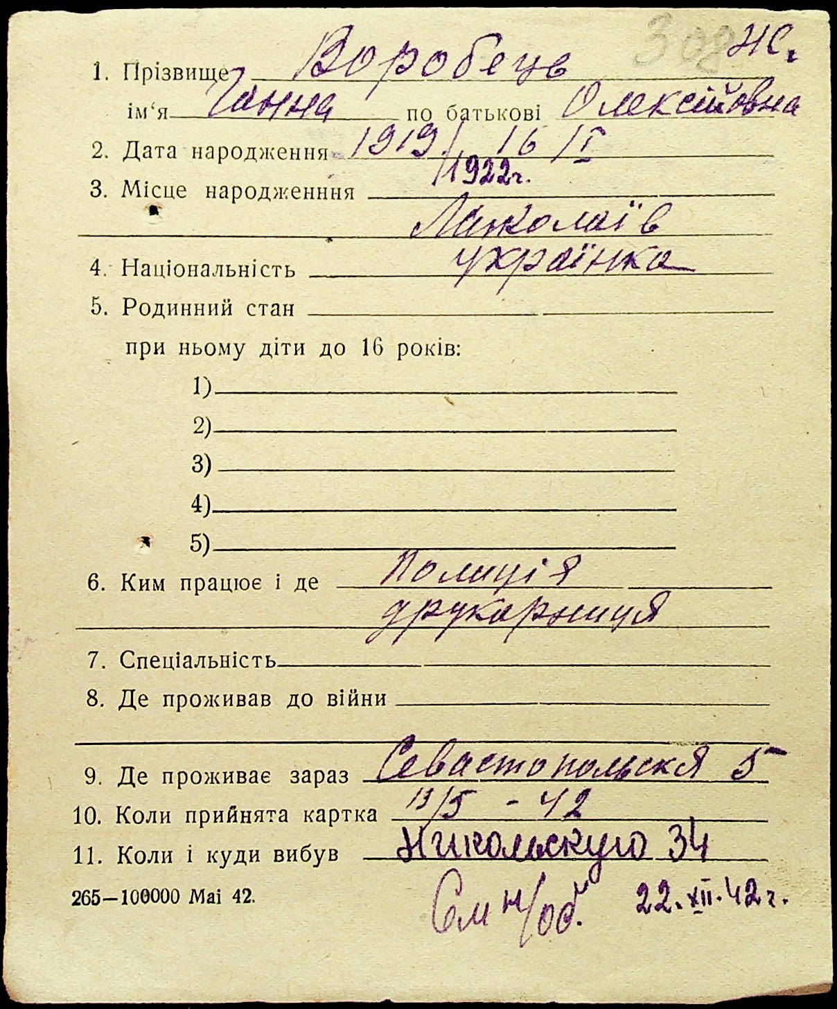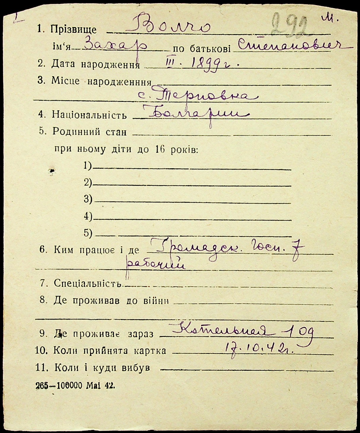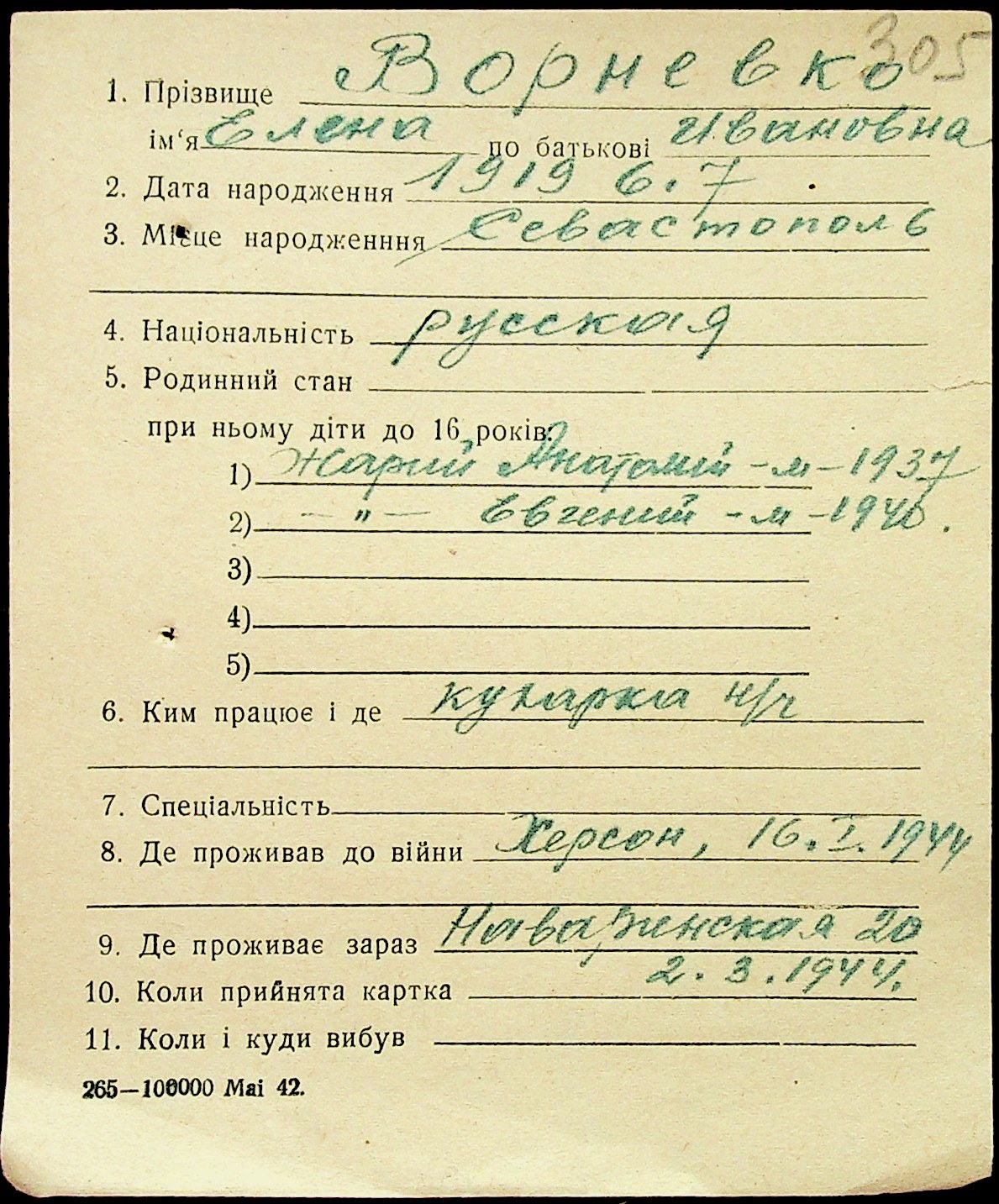 • • • • Справа № 12 “Картки адресного бюро м. Миколаєва на осіб, які працювали в німецько-фашистських установах та військових частинах. Прізвища на літеру «В». Том 4”