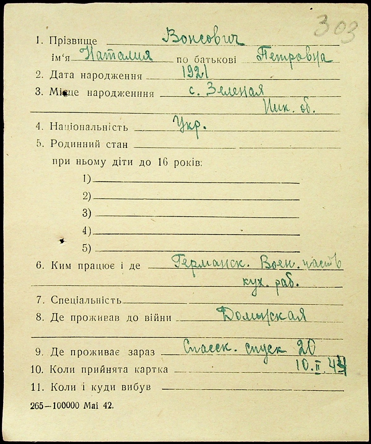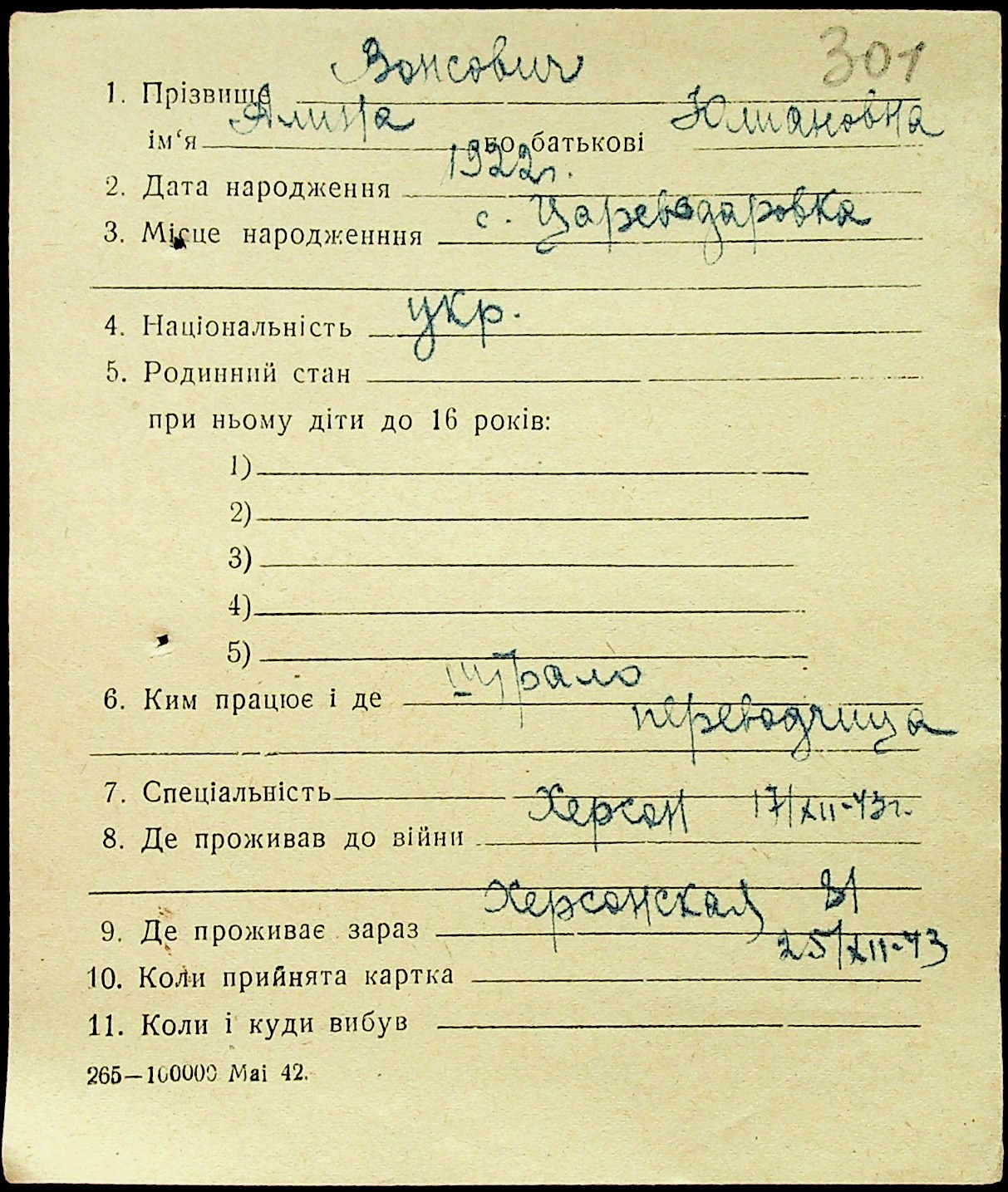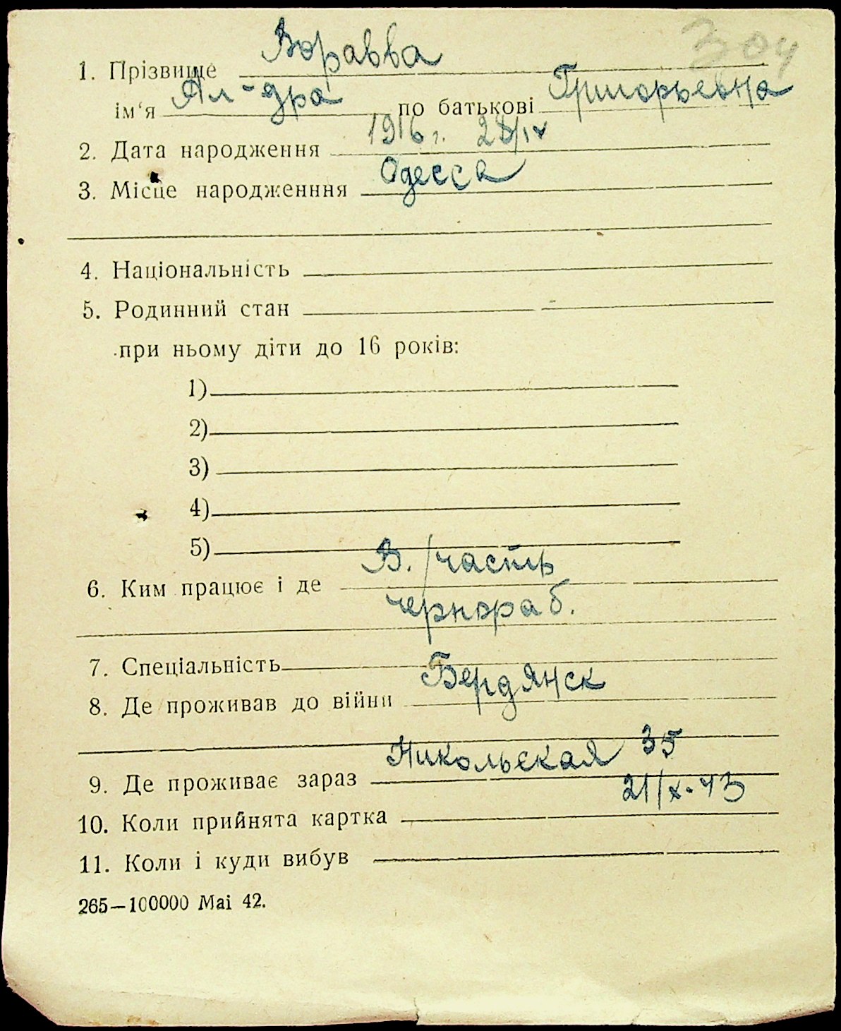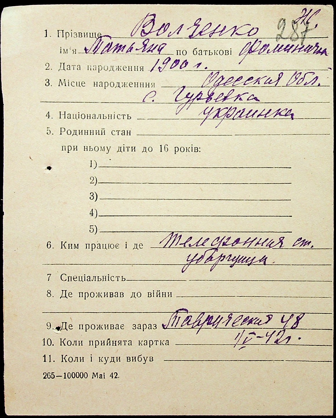 • • • • Справа № 12 “Картки адресного бюро м. Миколаєва на осіб, які працювали в німецько-фашистських установах та військових частинах. Прізвища на літеру «В». Том 4”