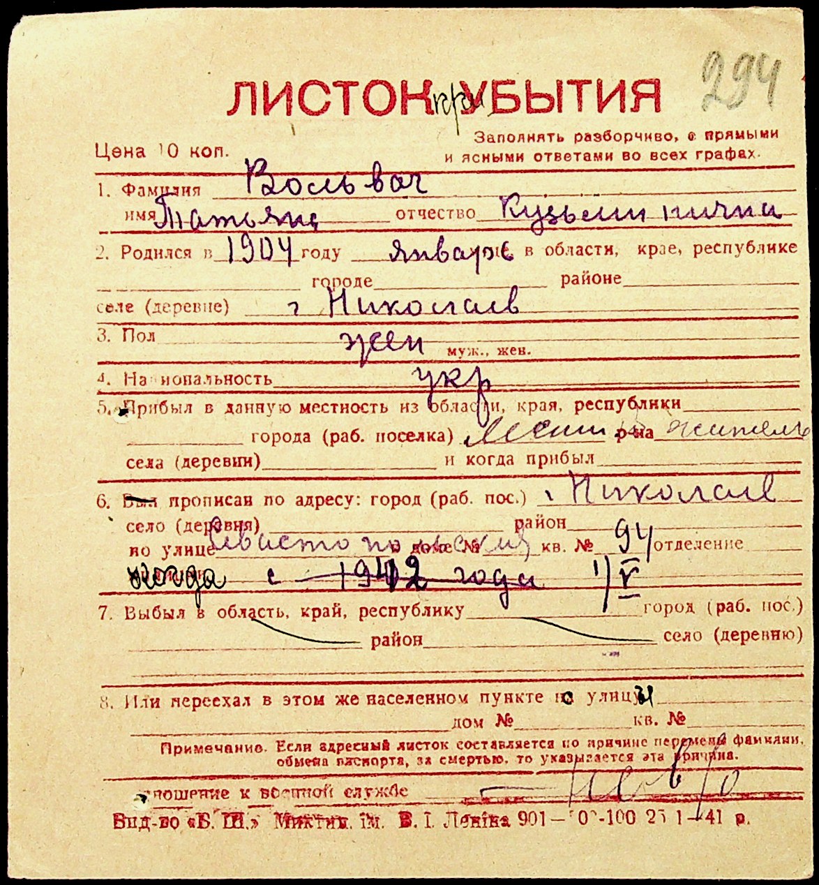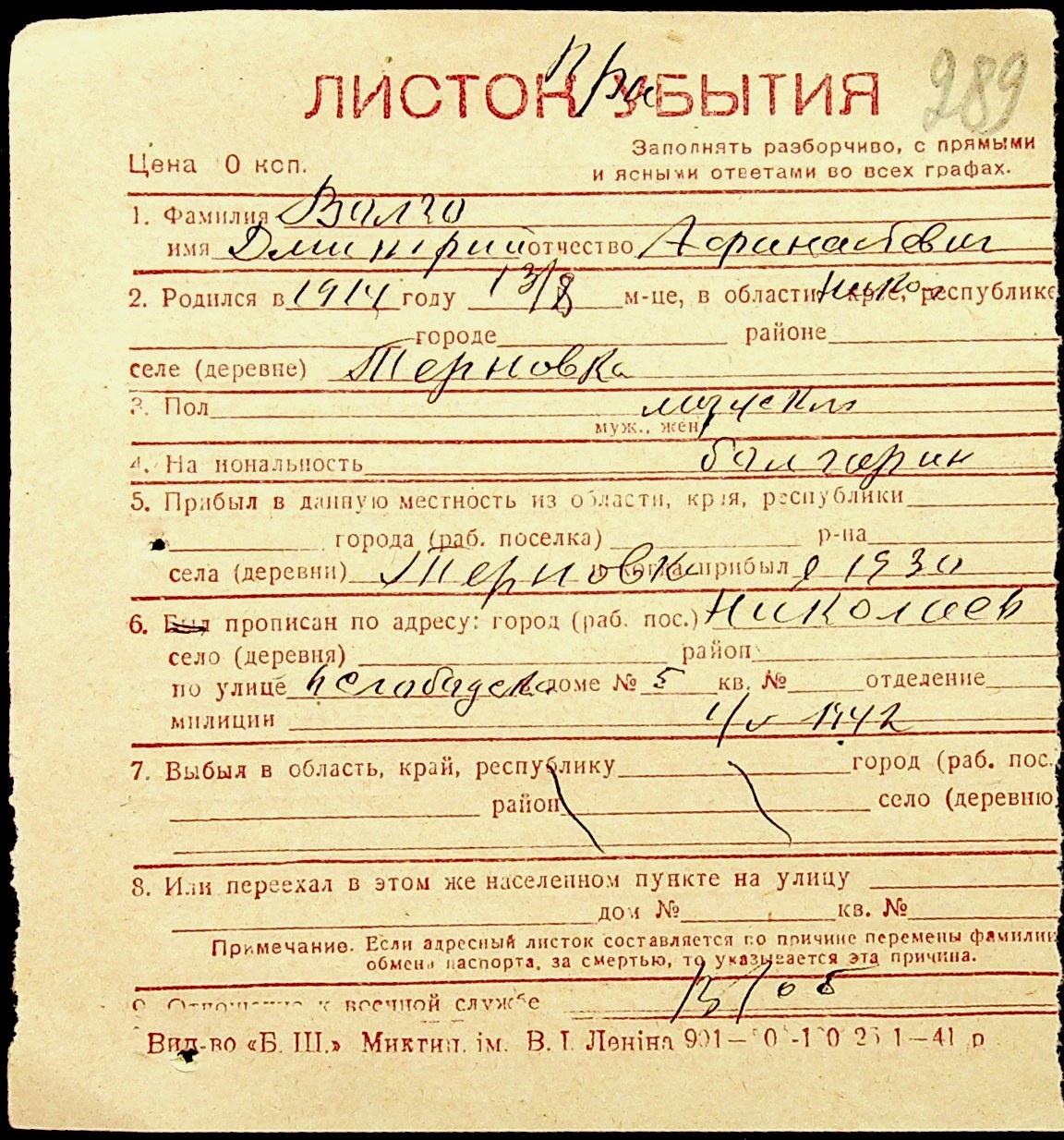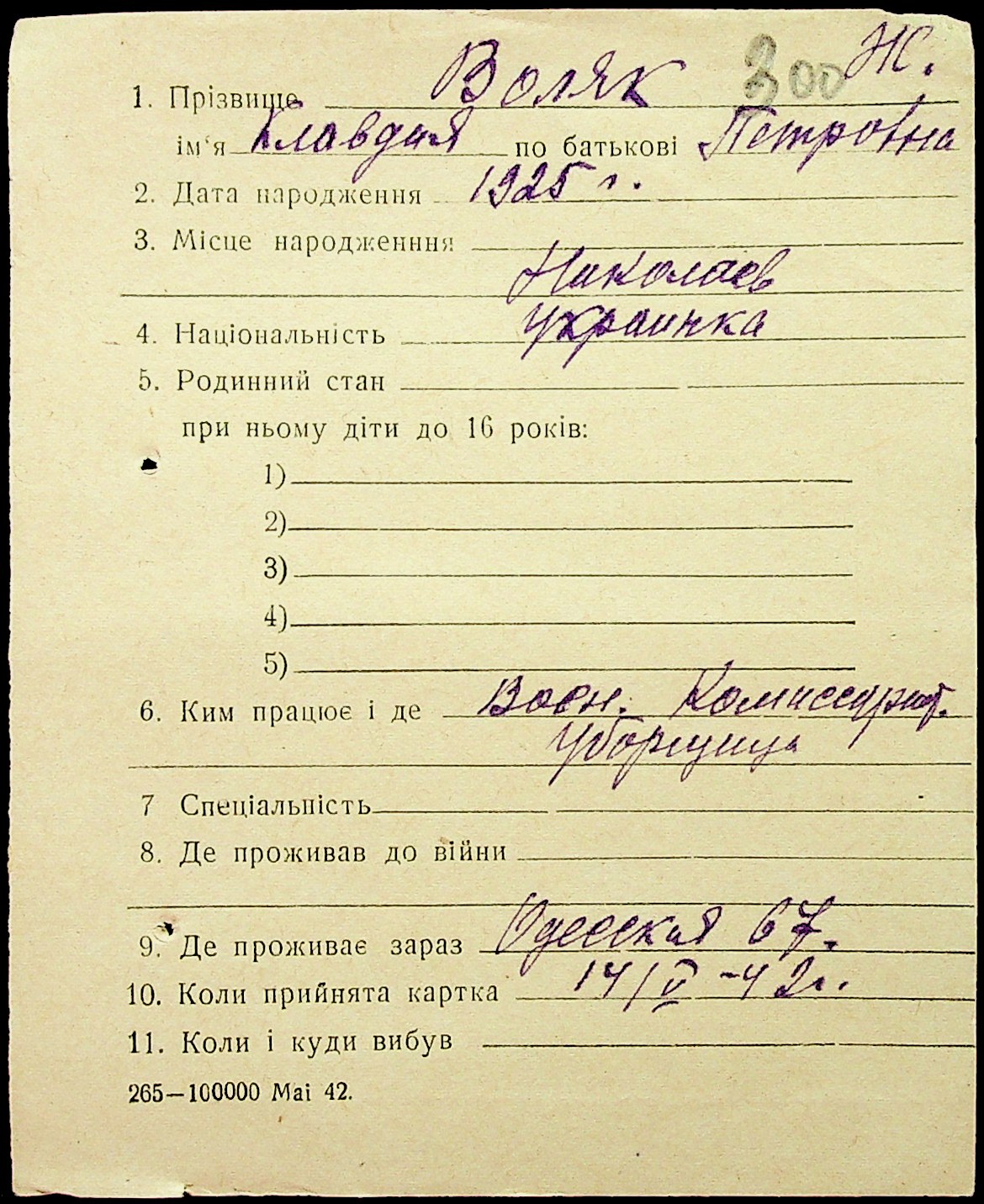 ◦ ◦ Фонд № Н-1016 “Адресне бюро м. Миколаєва”