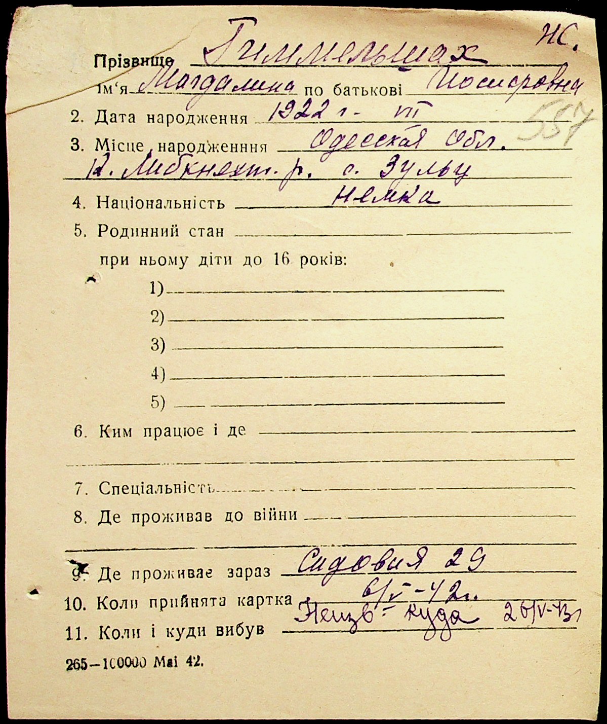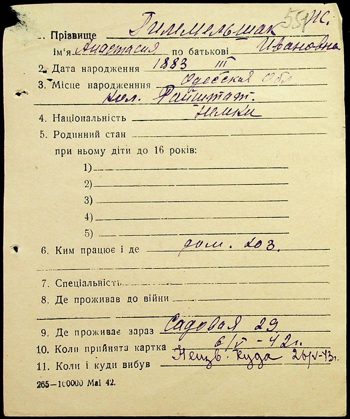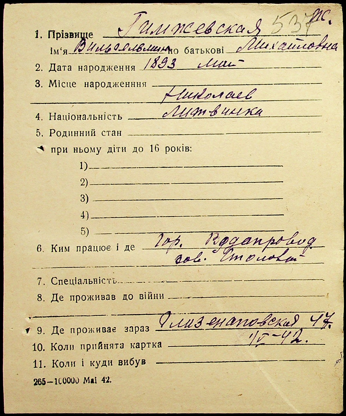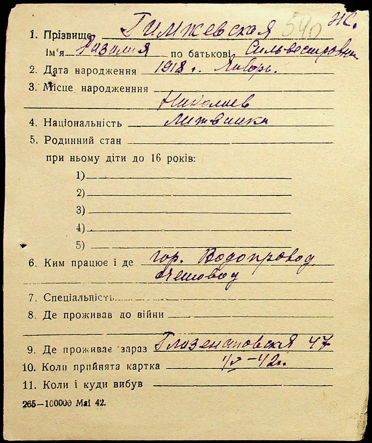 • • • • Справа № 14 “Картки адресного бюро м. Миколаєва на осіб, які працювали в німецько-фашистських установах та військових частинах. Прізвища на літеру «Г». Том 2”