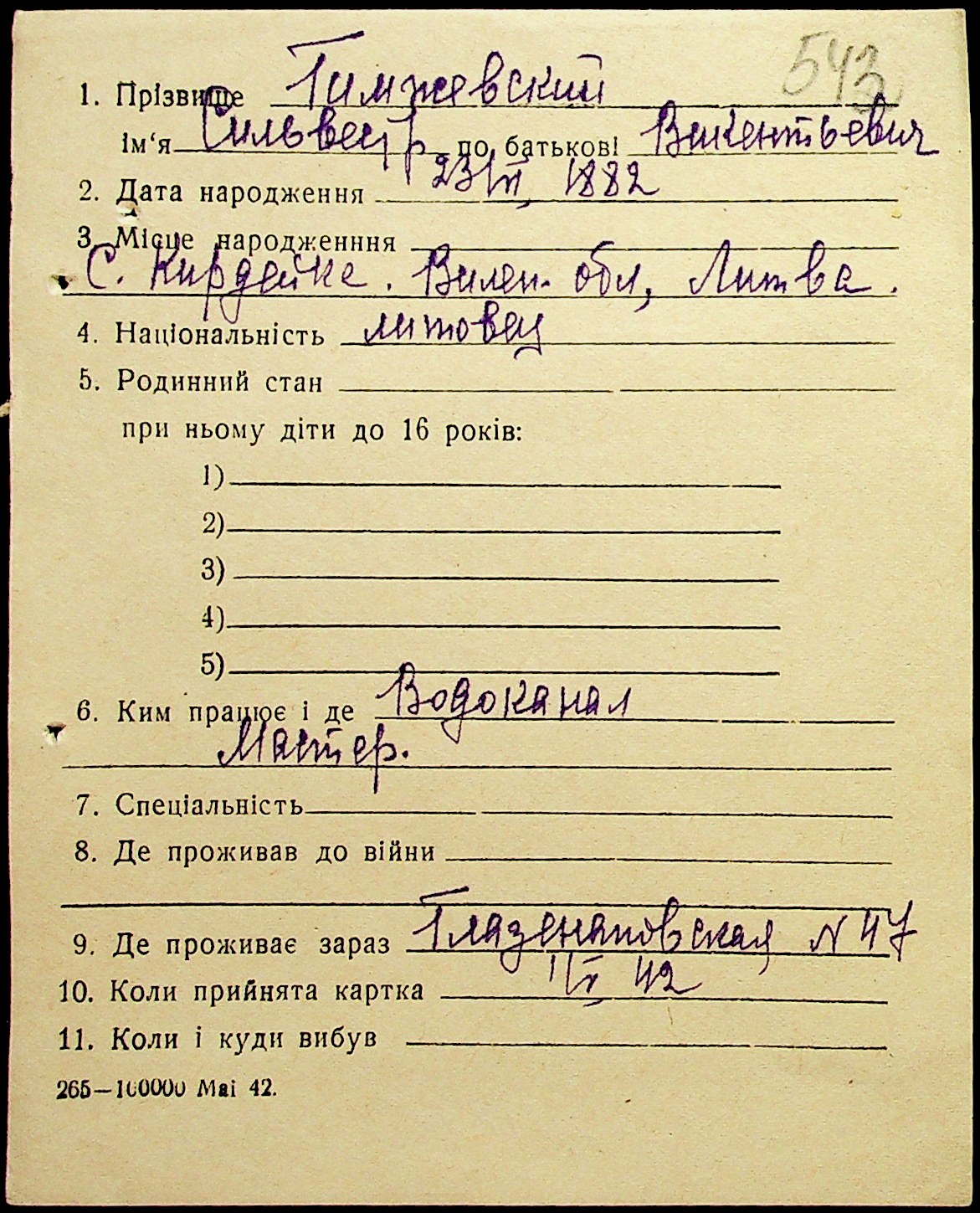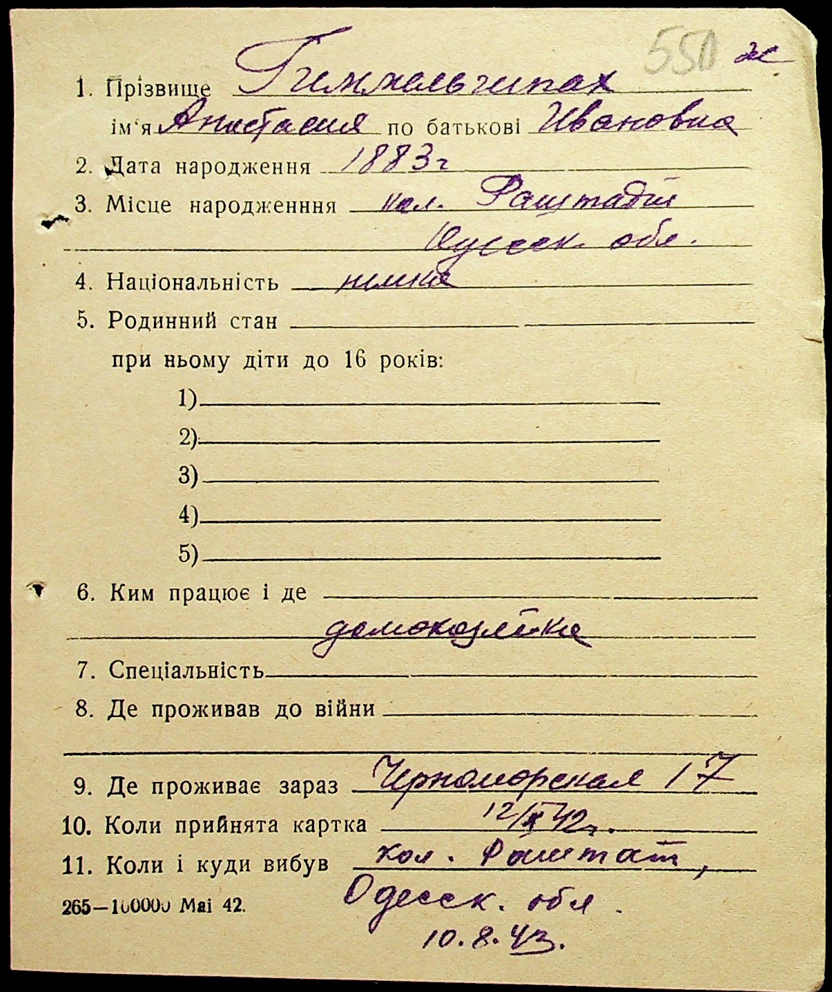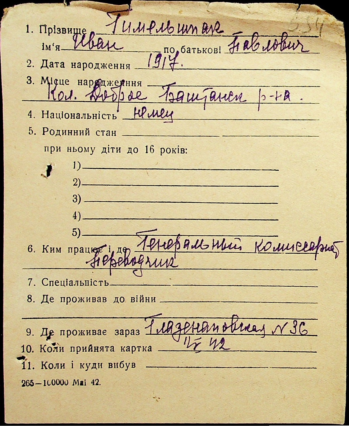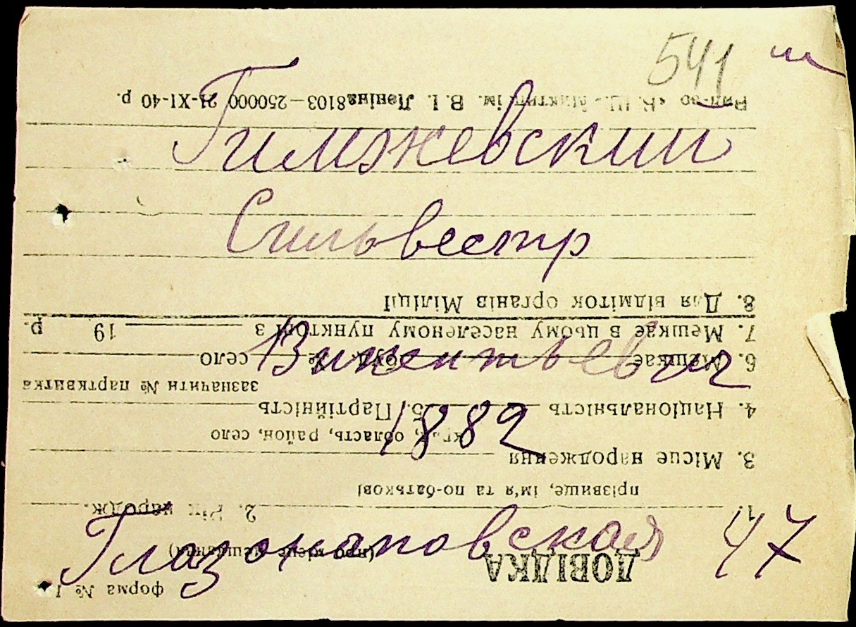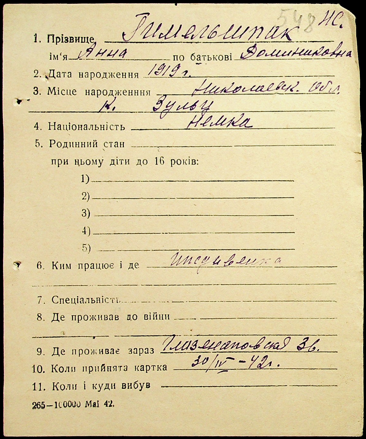 • • • • Справа № 14 “Картки адресного бюро м. Миколаєва на осіб, які працювали в німецько-фашистських установах та військових частинах. Прізвища на літеру «Г». Том 2”