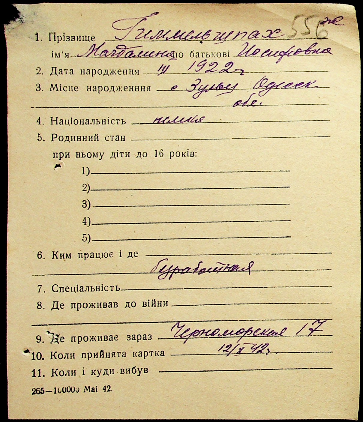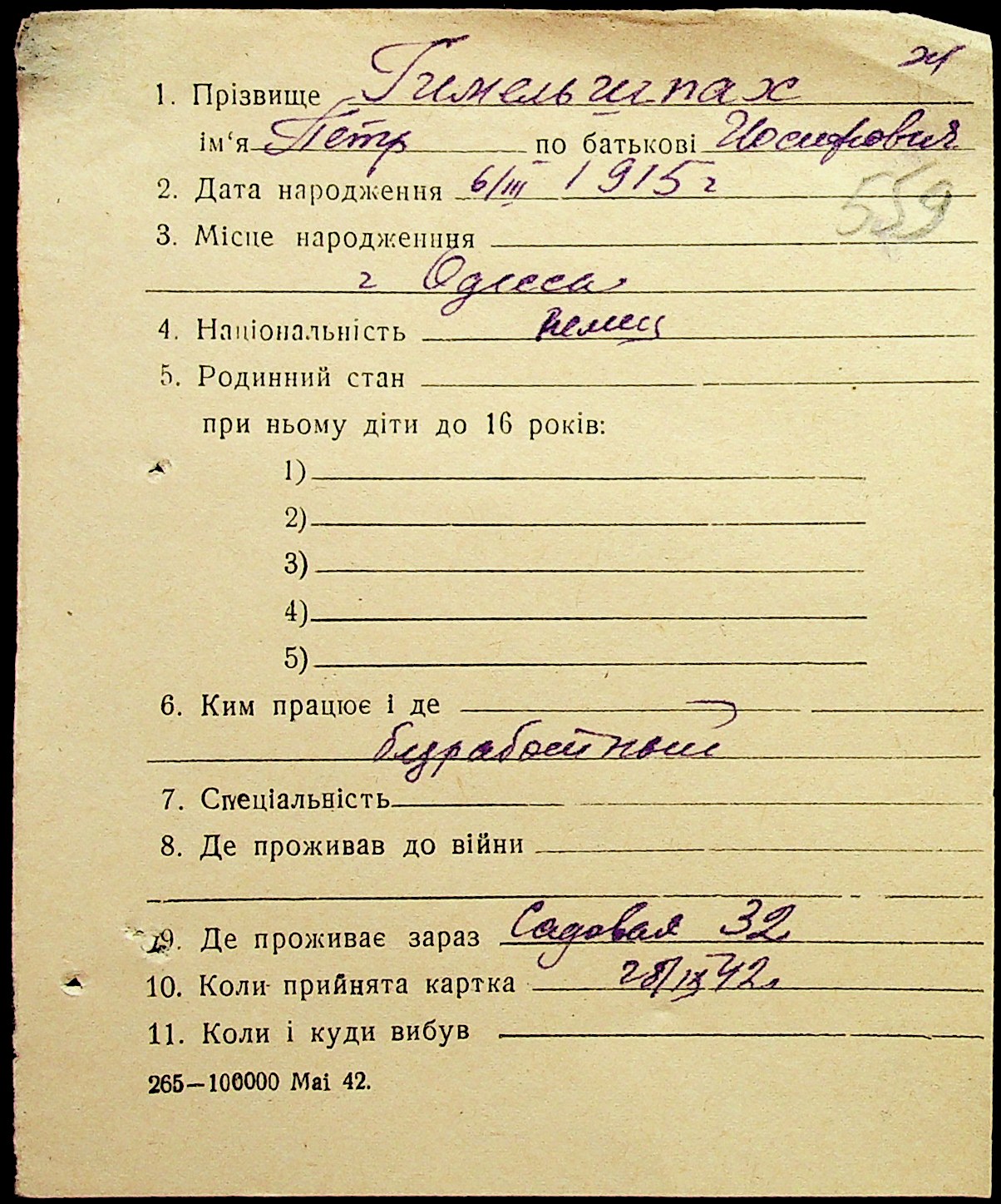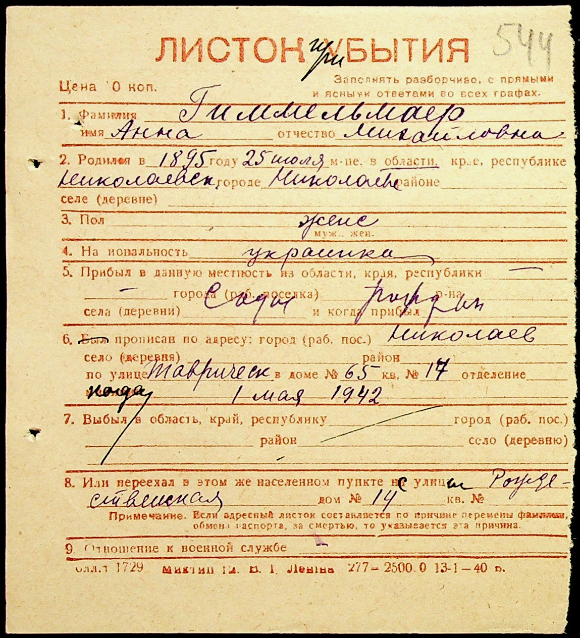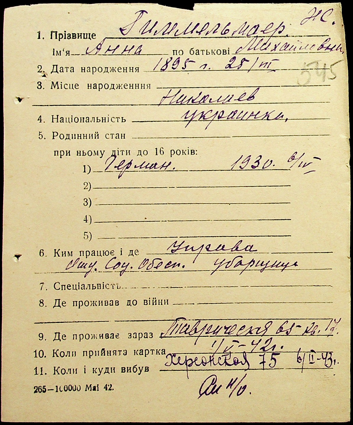 ◦ ◦ Фонд № Н-1016 “Адресне бюро м. Миколаєва”