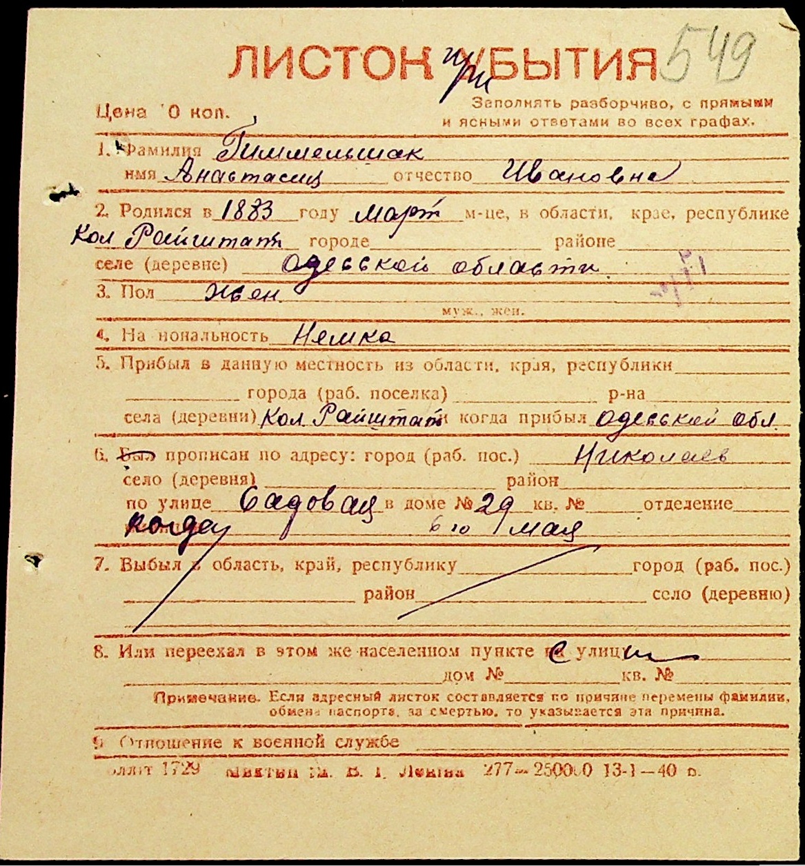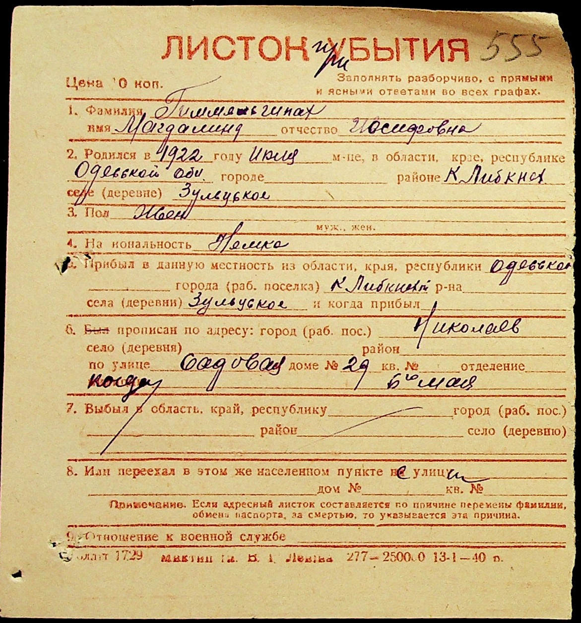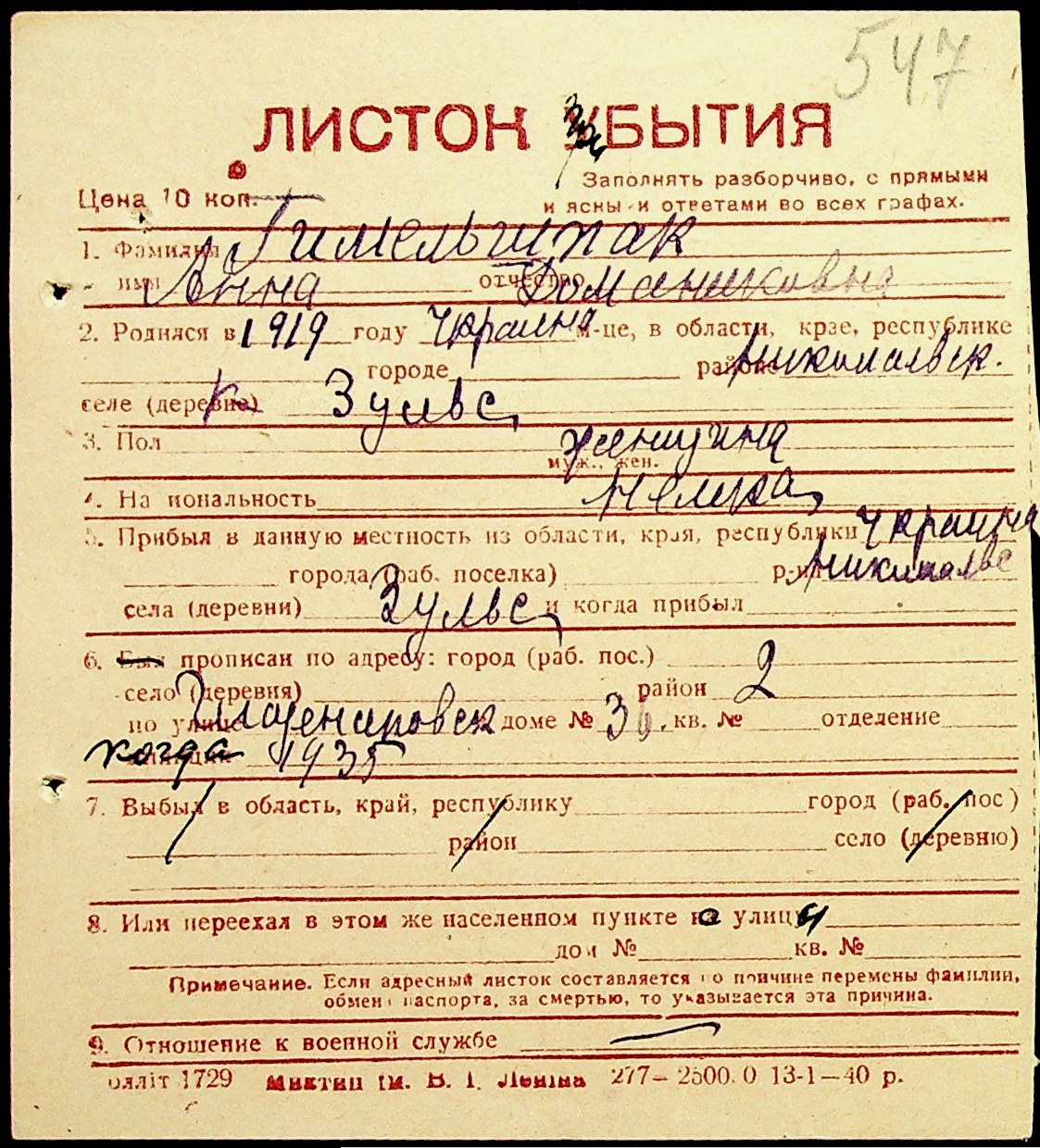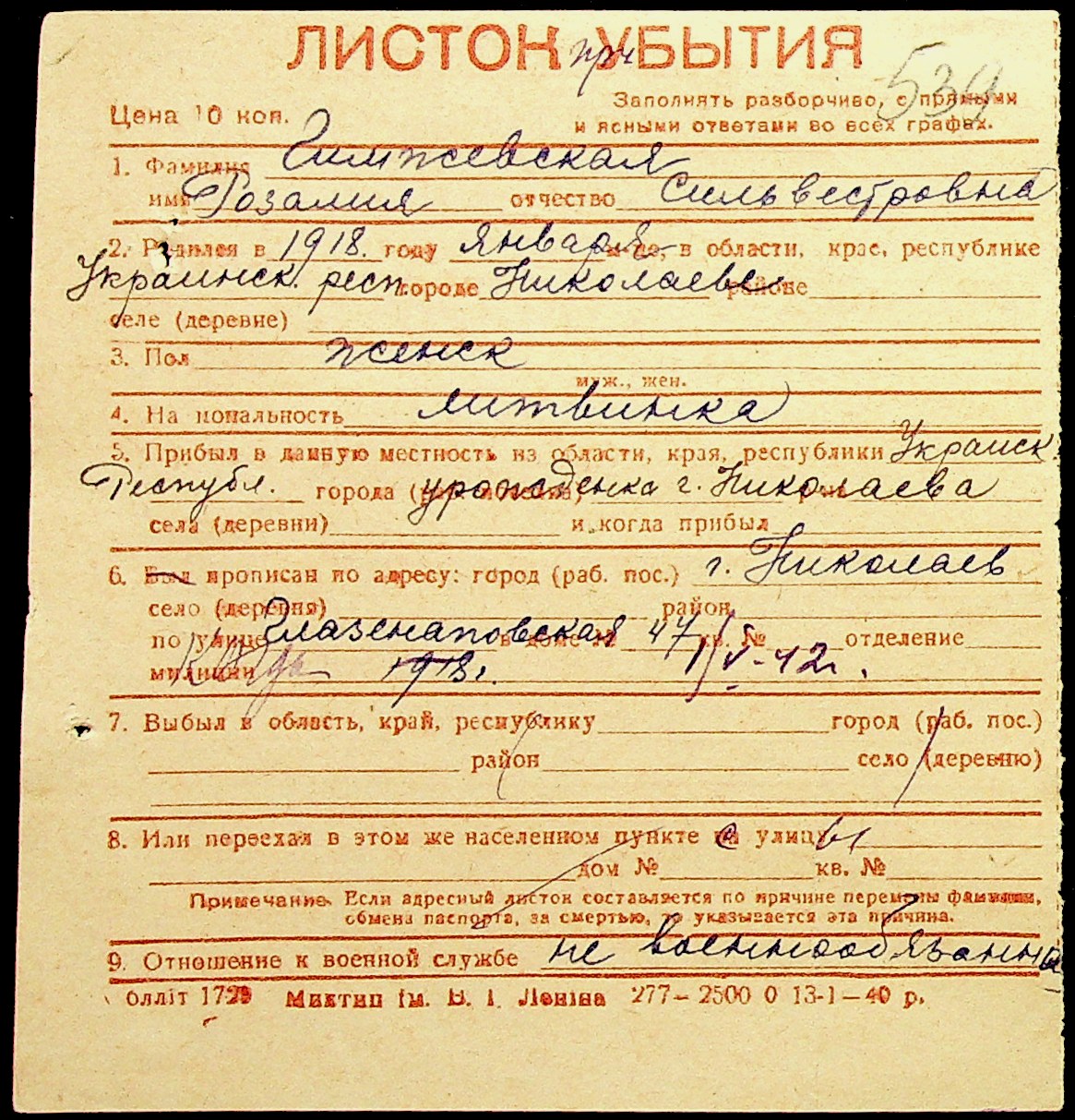 ◦ ◦ Фонд № Н-1016 “Адресне бюро м. Миколаєва”