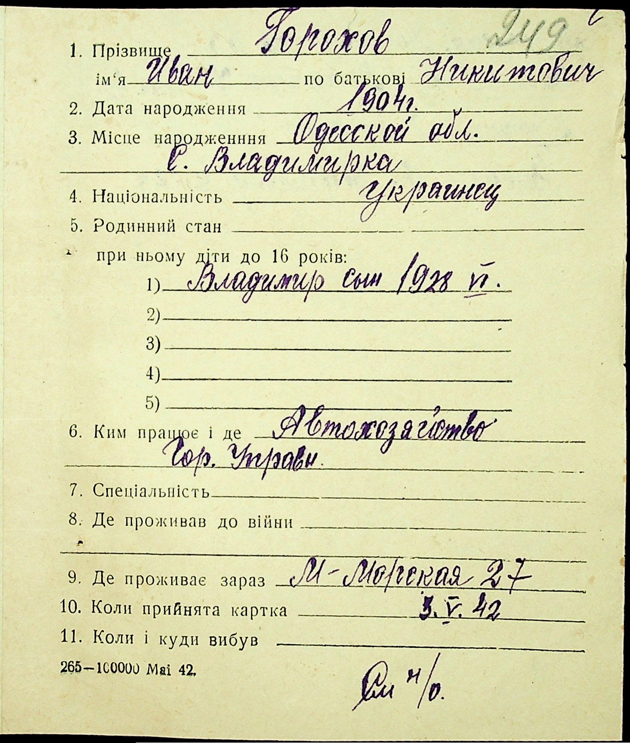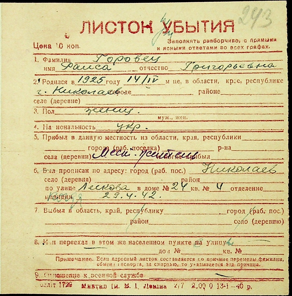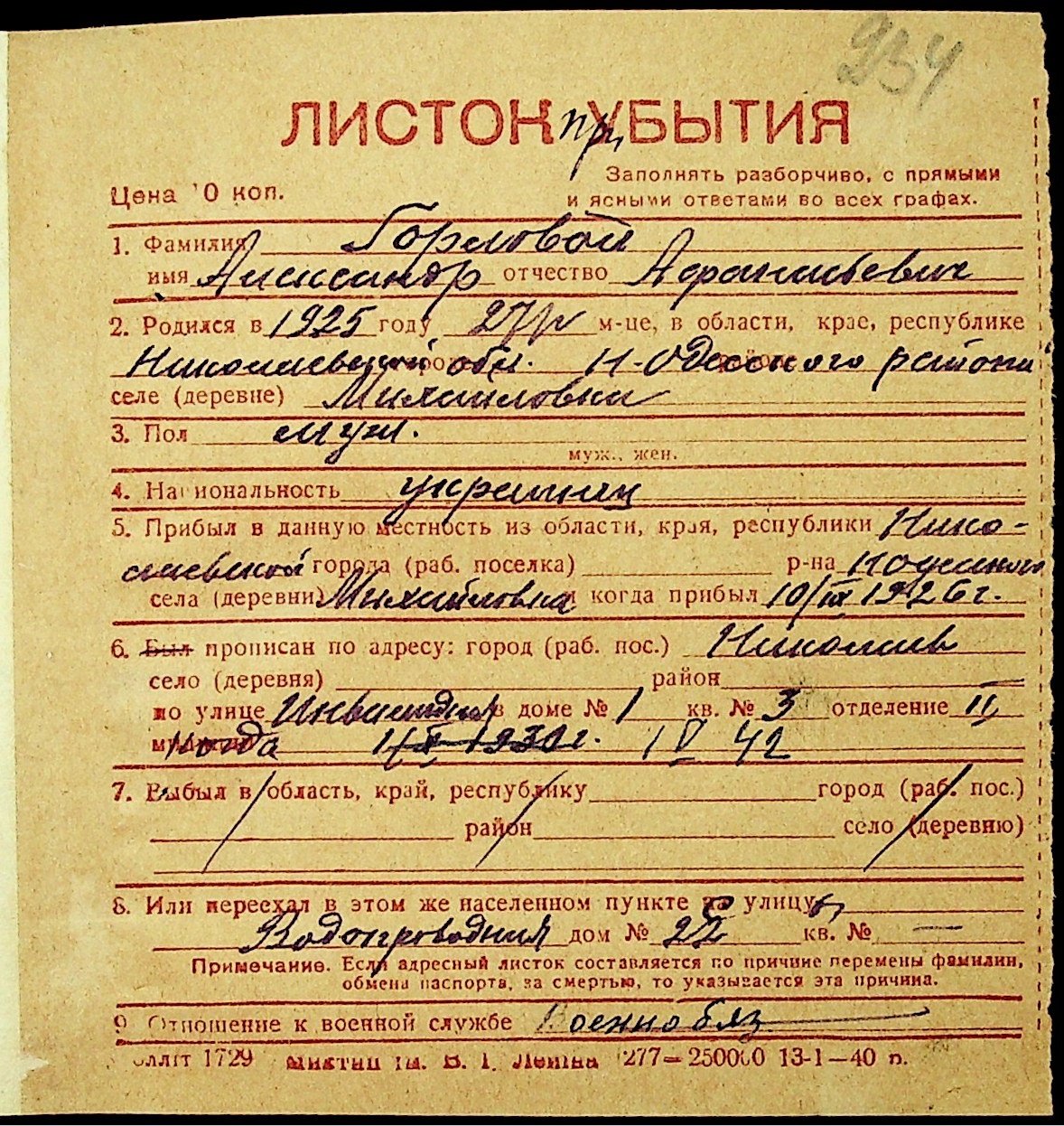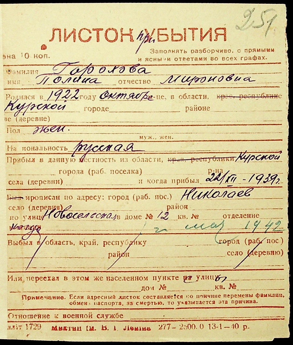 ◦ ◦ Фонд № Н-1016 “Адресне бюро м. Миколаєва”