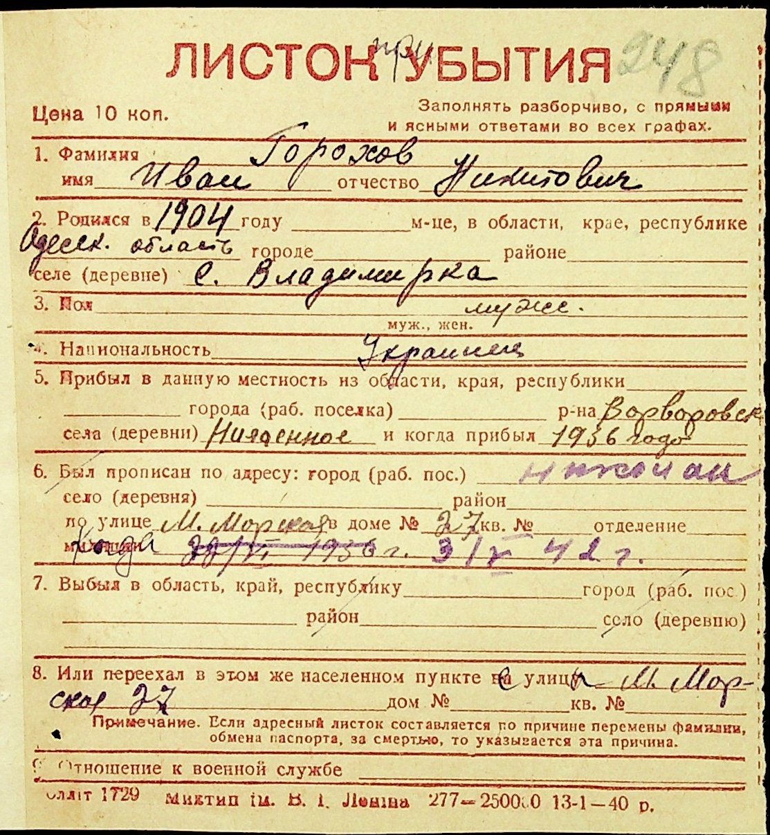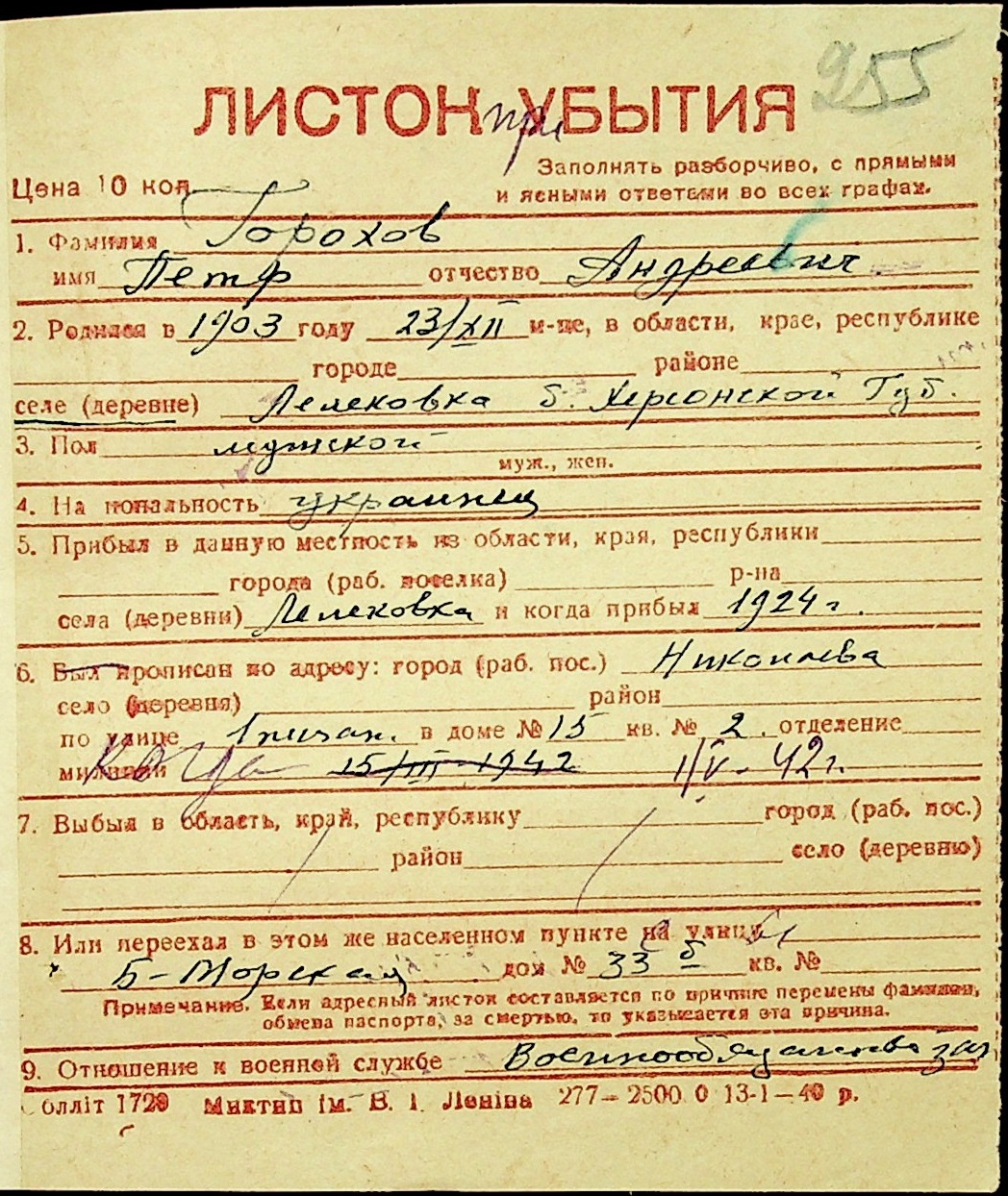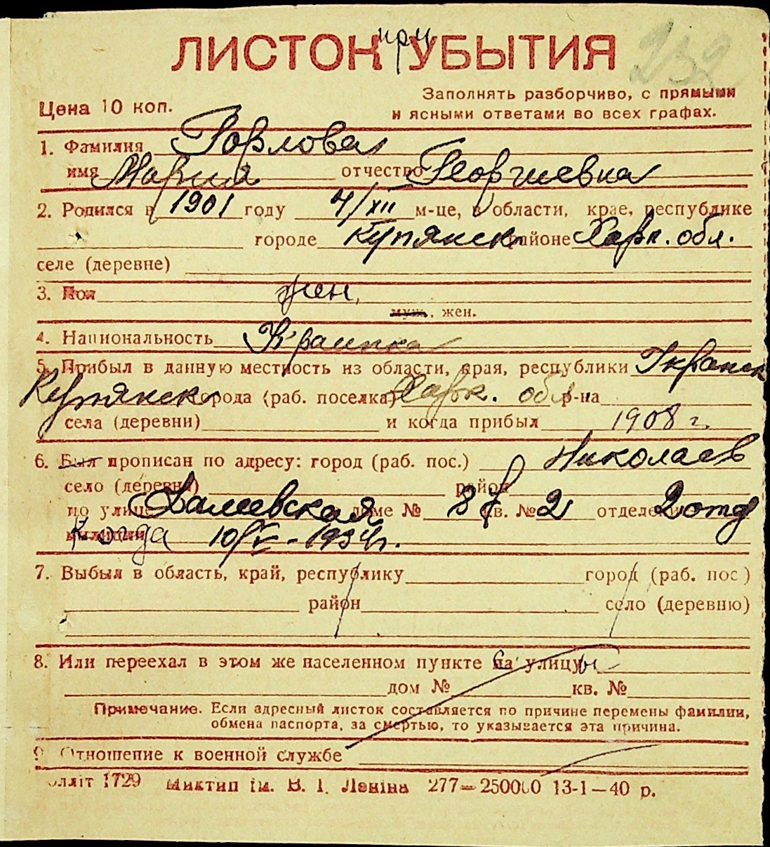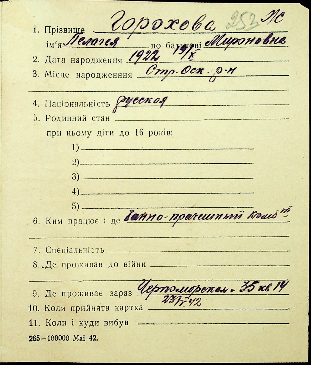 ◦ ◦ Фонд № Н-1016 “Адресне бюро м. Миколаєва”