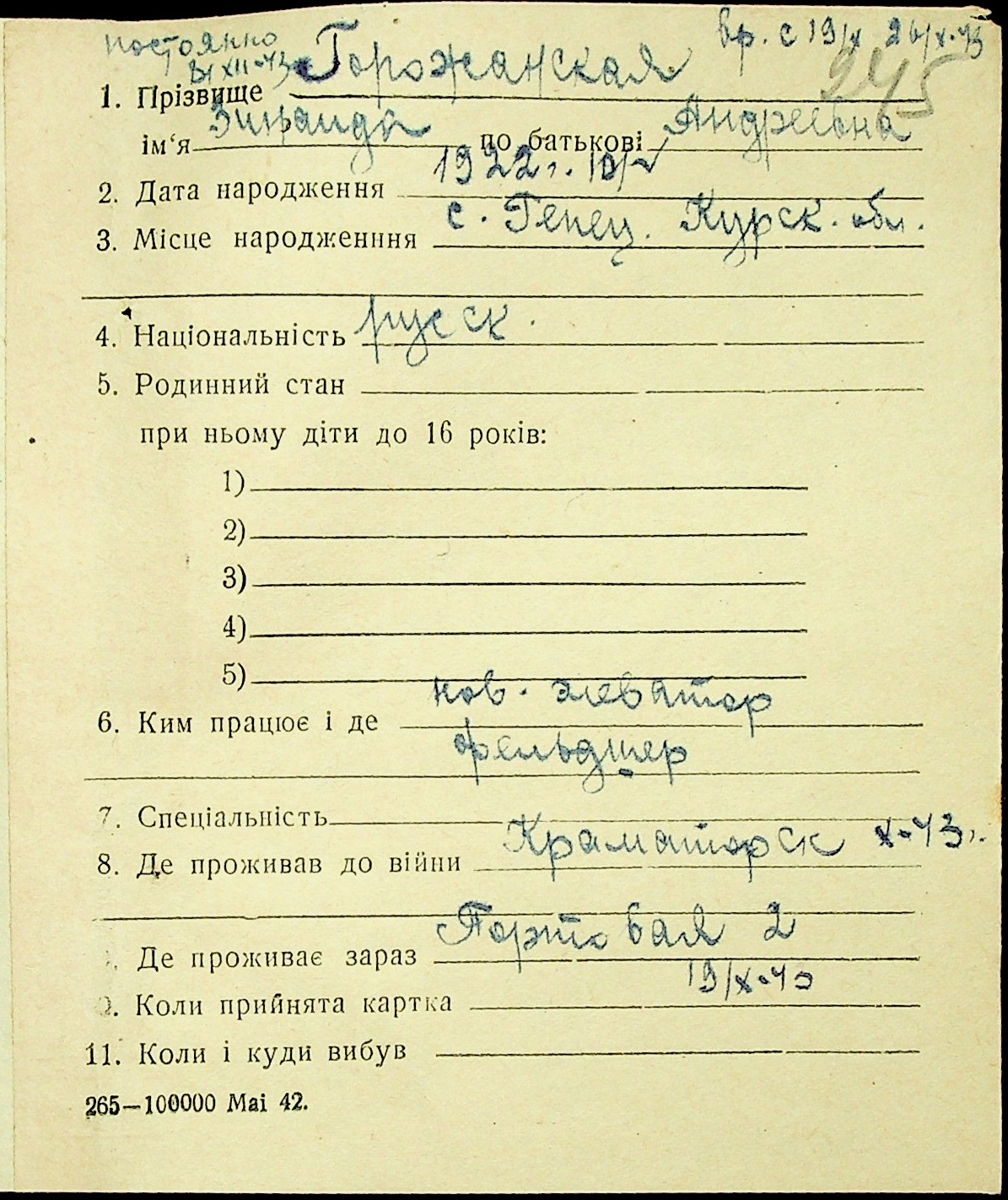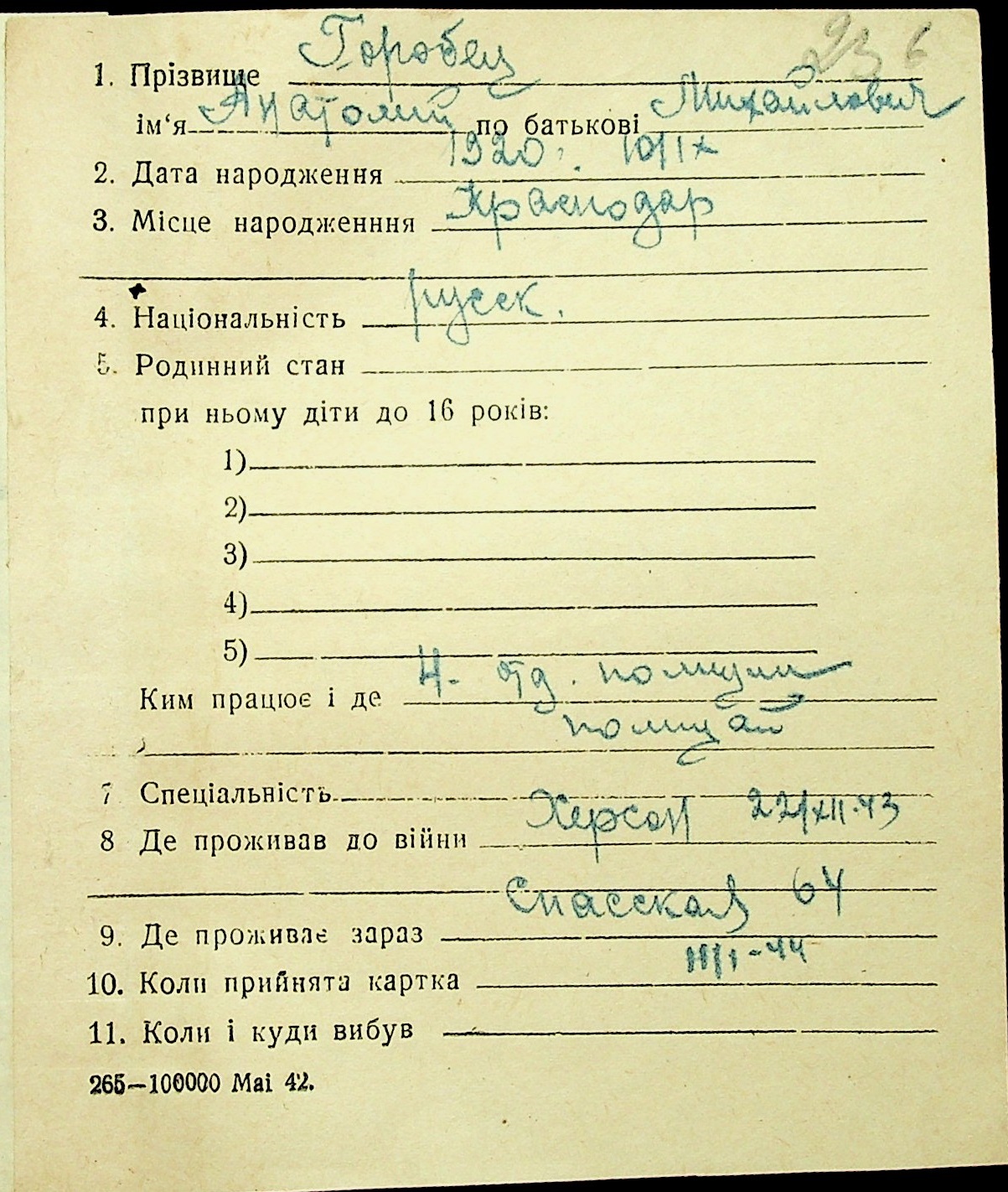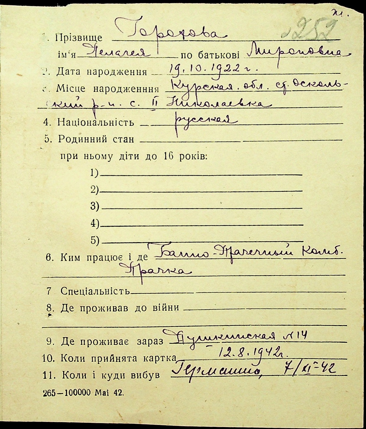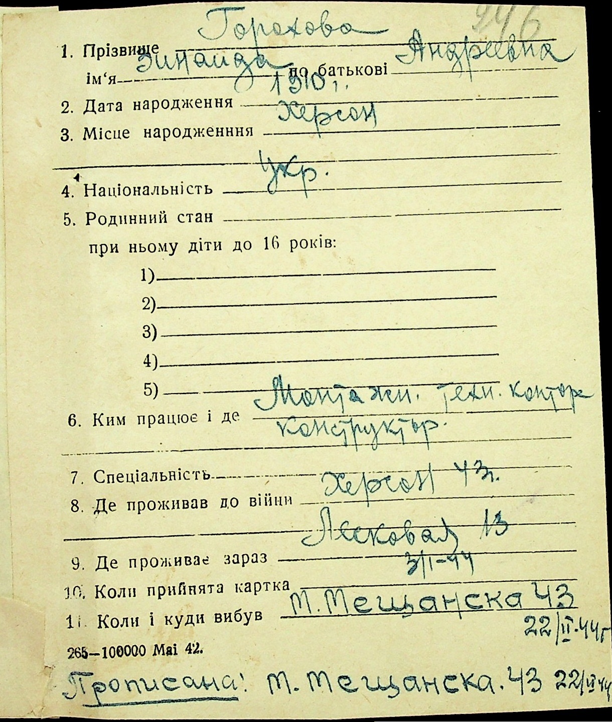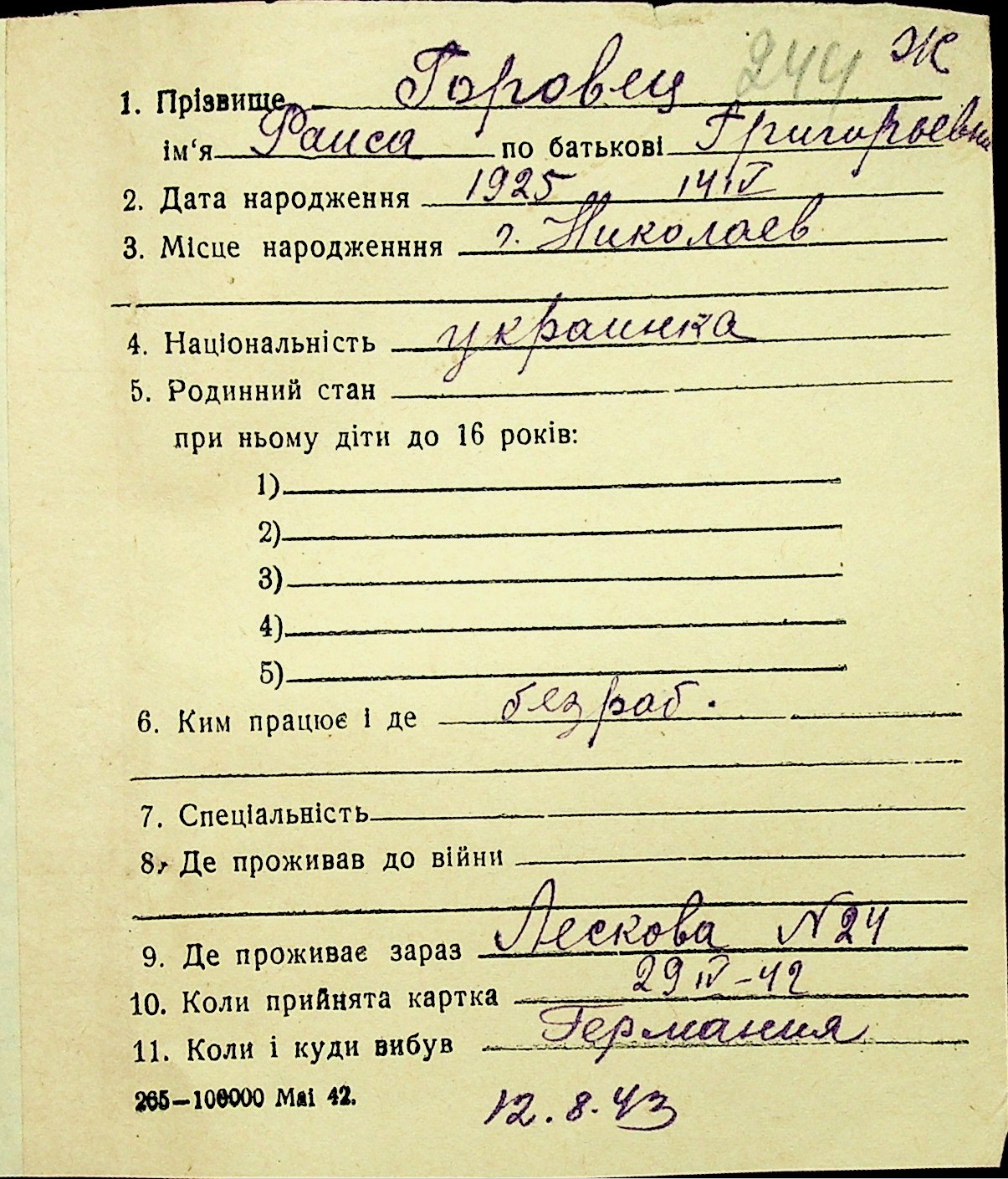 • • • • Справа № 16 “Картки адресного бюро м. Миколаєва на осіб, які працювали в німецько-фашистських установах та військових частинах. Прізвища на літеру «Г». Том 4”