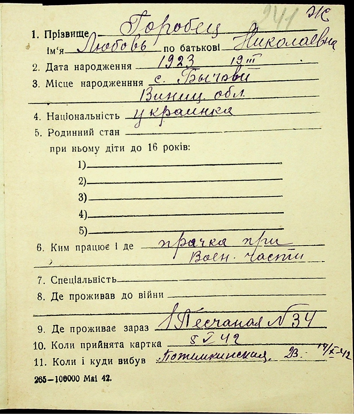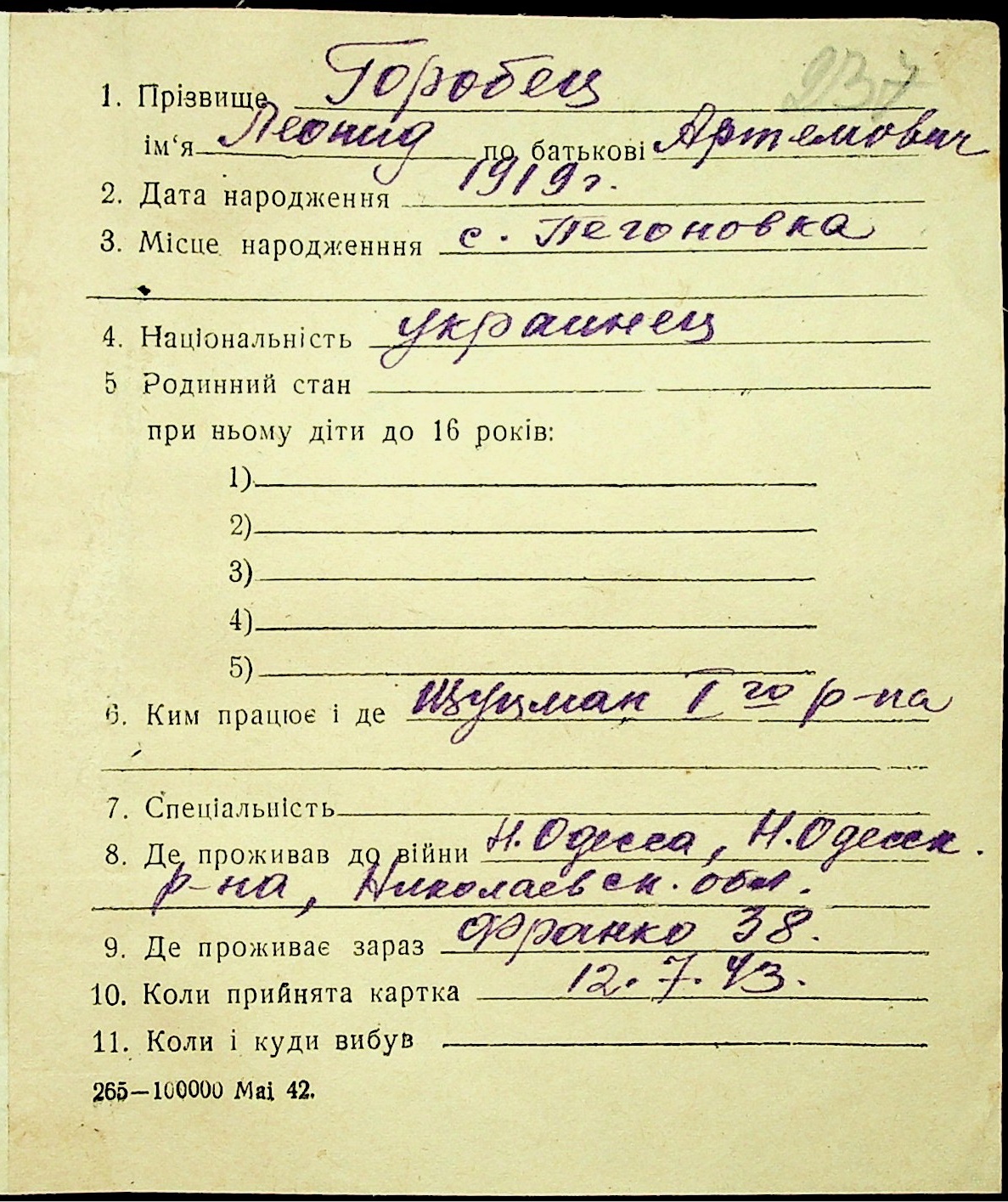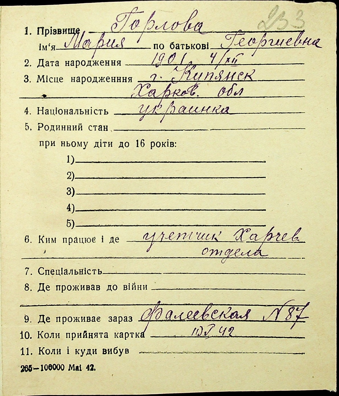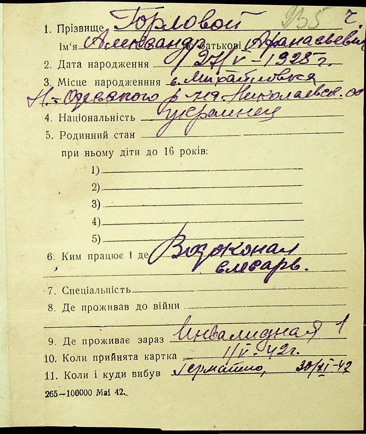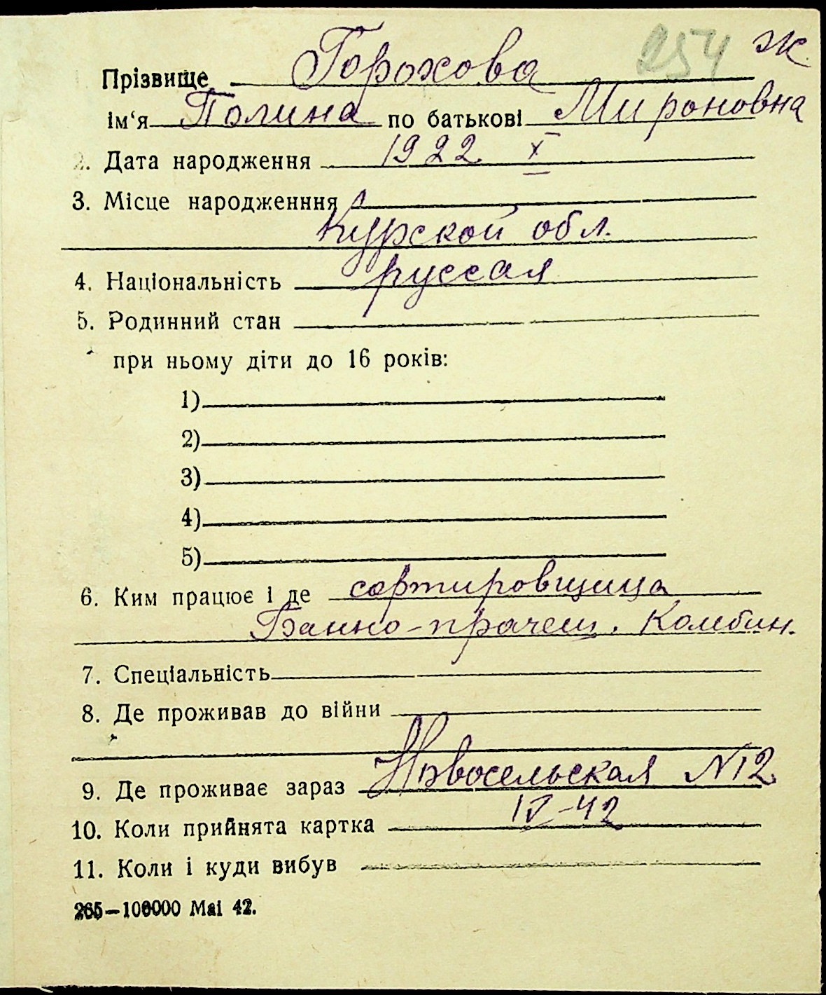 • • • • Справа № 16 “Картки адресного бюро м. Миколаєва на осіб, які працювали в німецько-фашистських установах та військових частинах. Прізвища на літеру «Г». Том 4”
