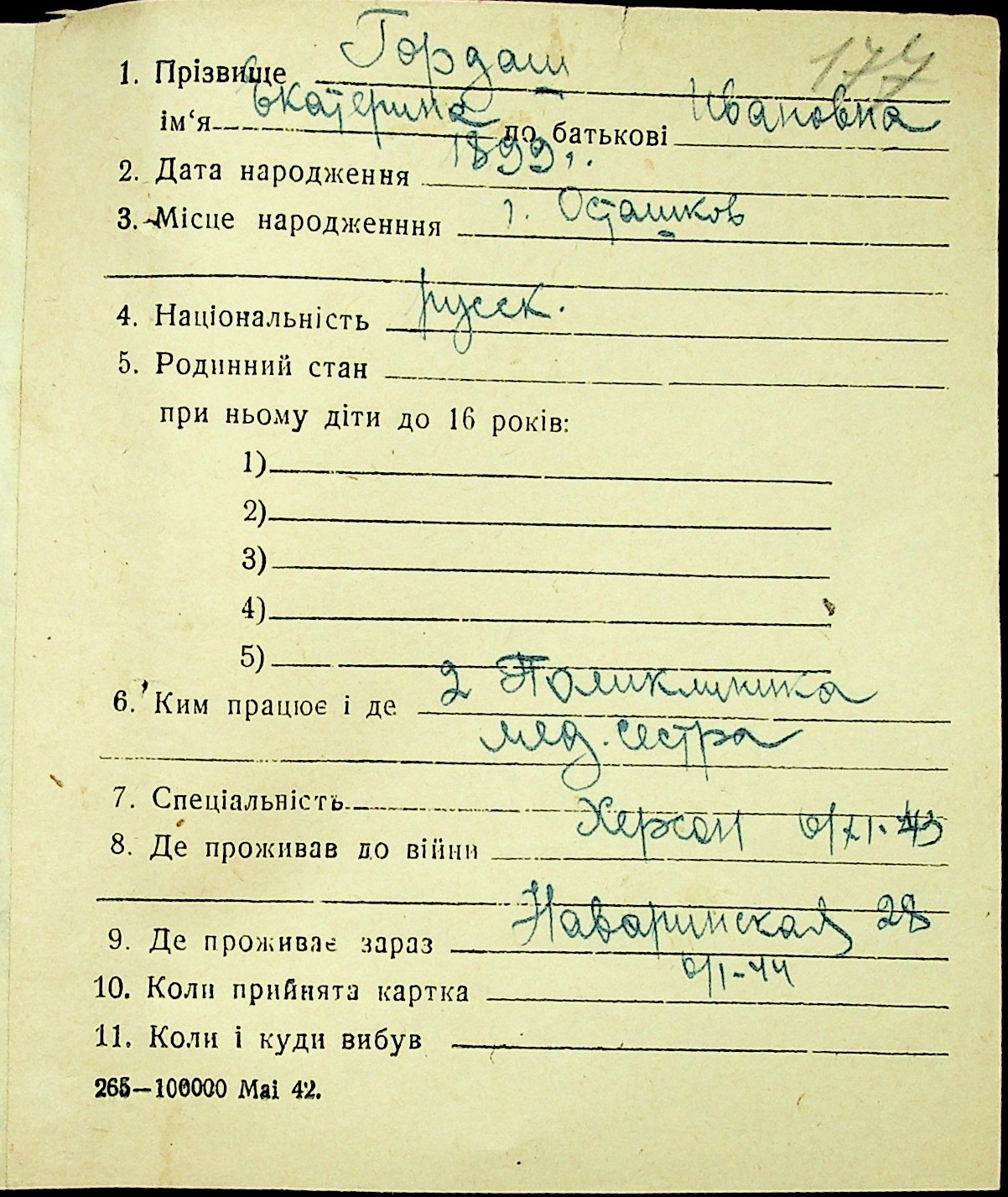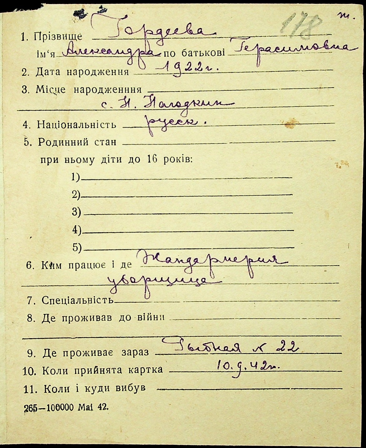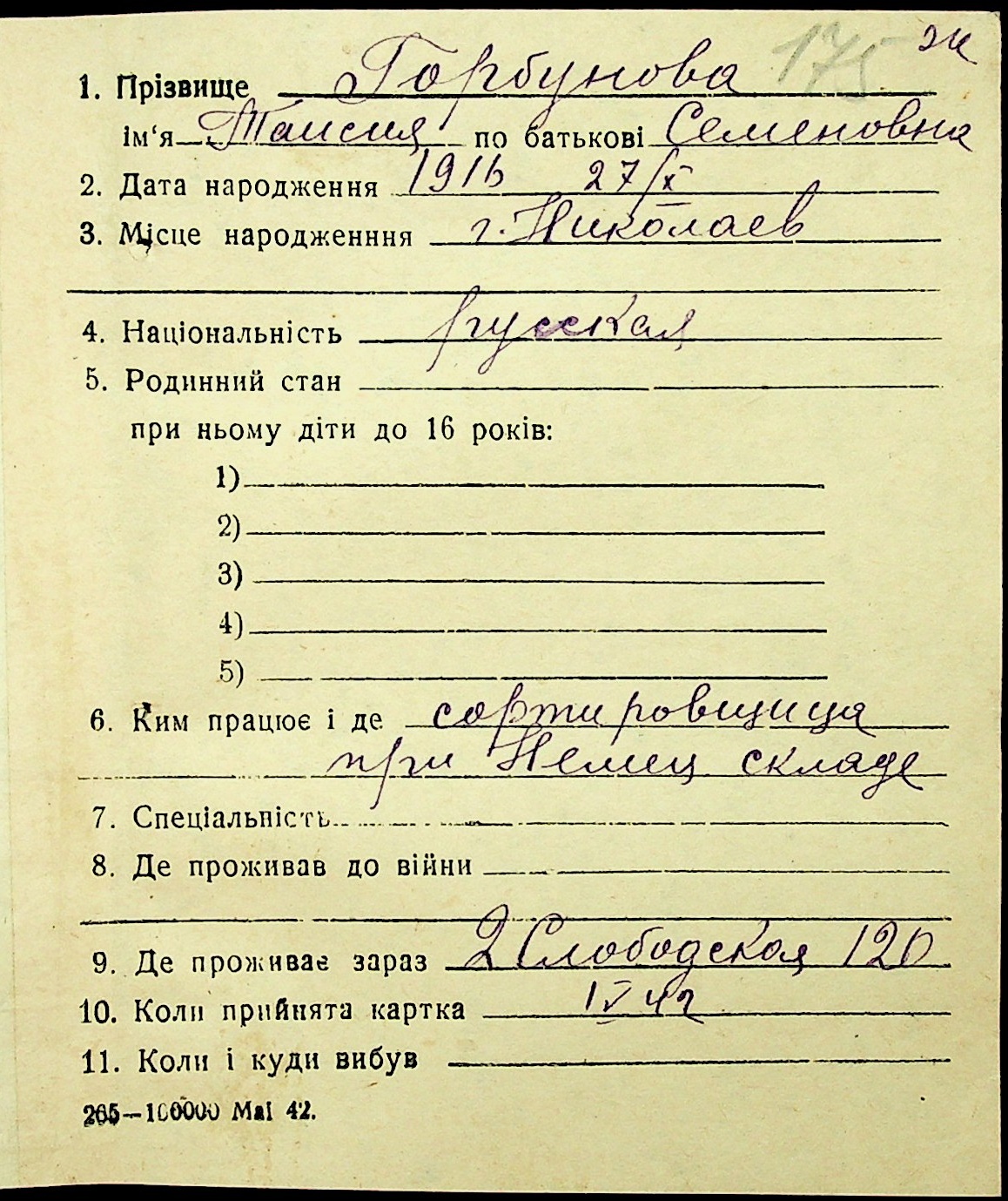• • • • Справа № 16 “Картки адресного бюро м. Миколаєва на осіб, які працювали в німецько-фашистських установах та військових частинах. Прізвища на літеру «Г». Том 4”