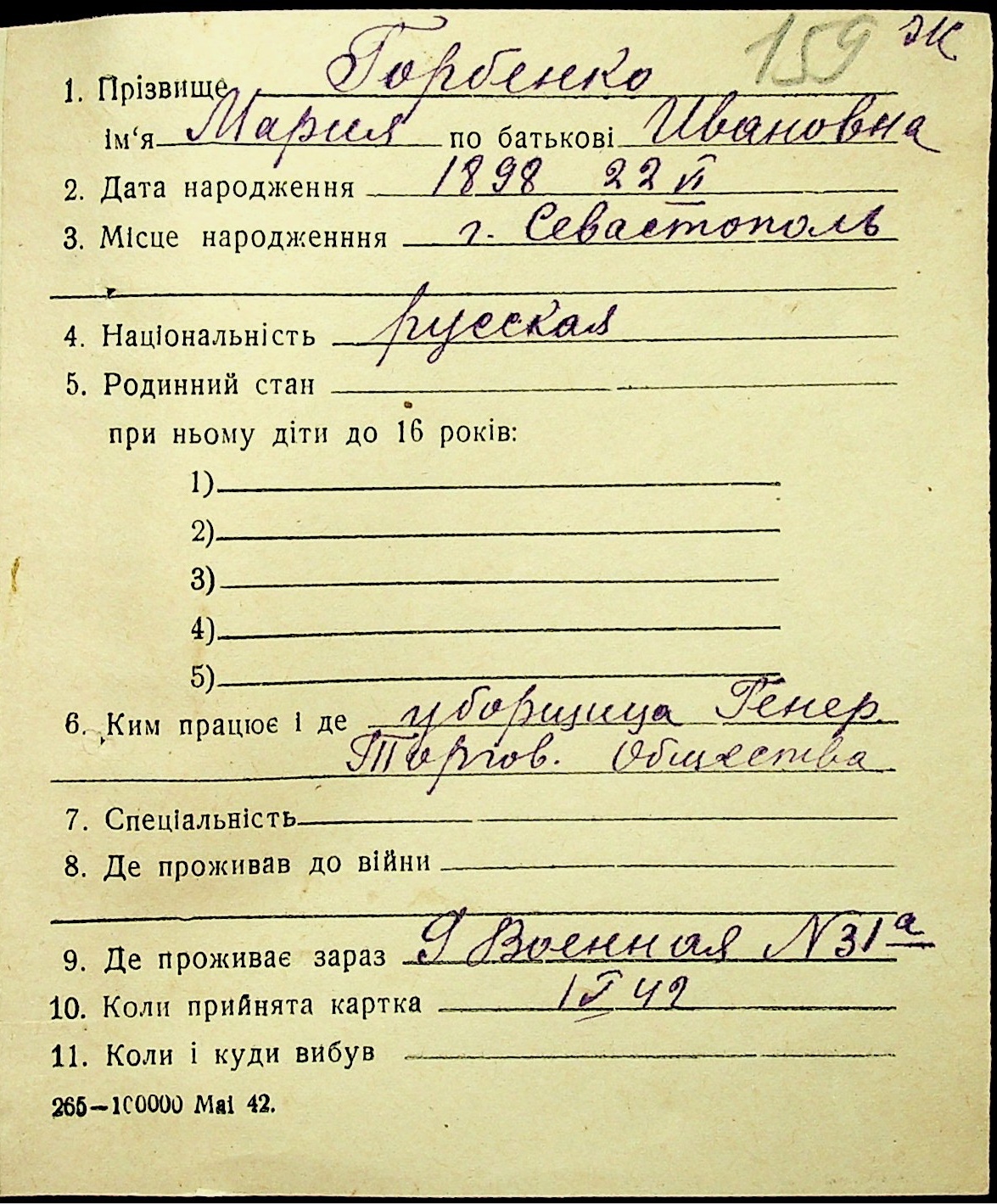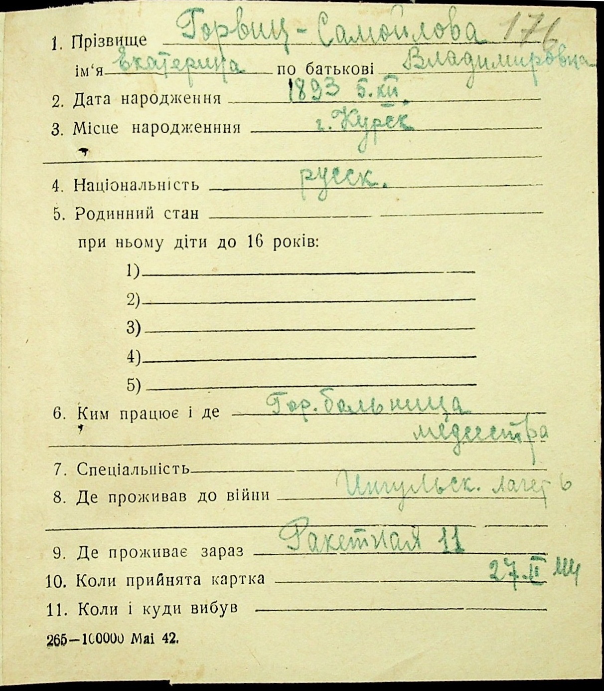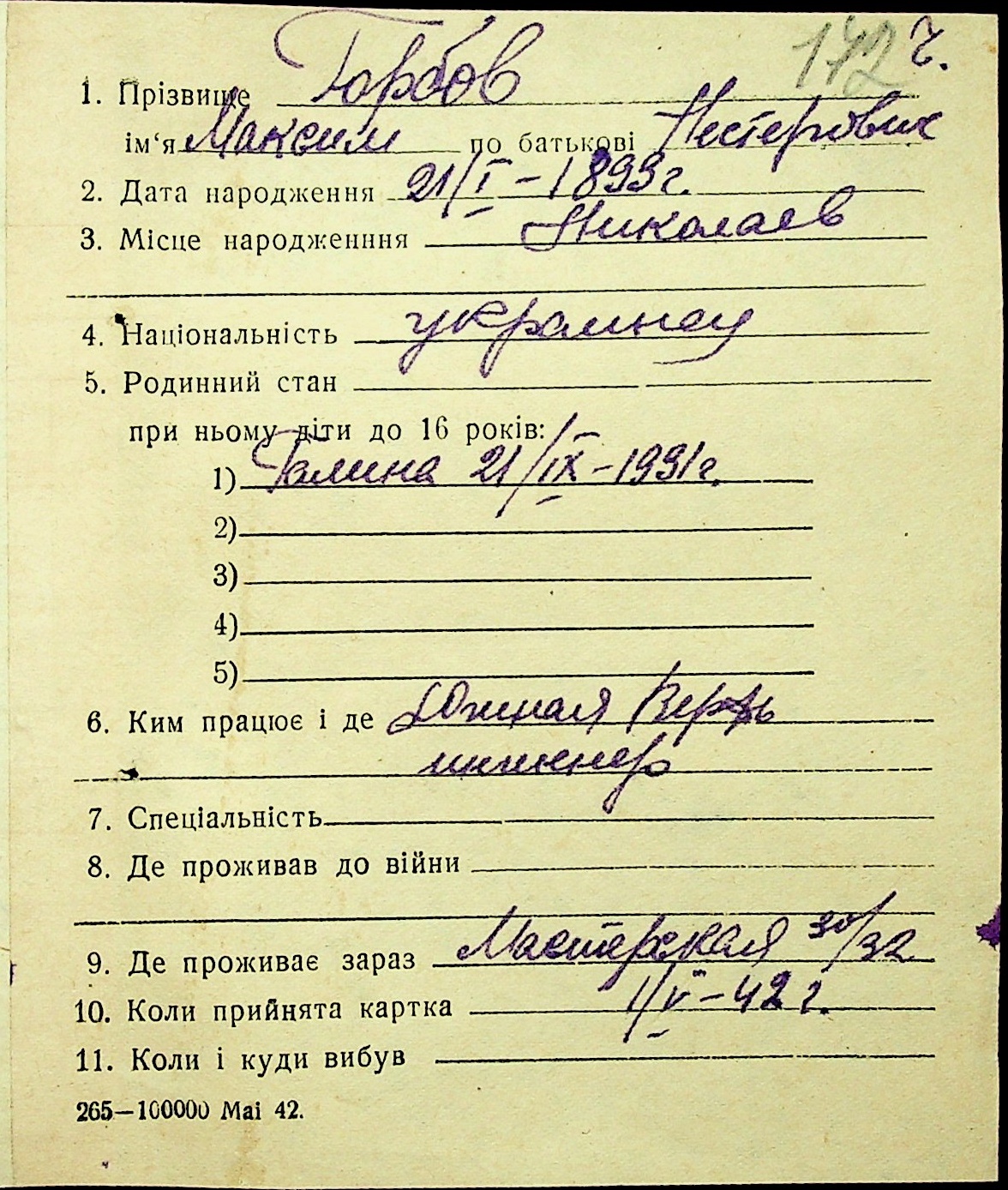 • • • • Справа № 16 “Картки адресного бюро м. Миколаєва на осіб, які працювали в німецько-фашистських установах та військових частинах. Прізвища на літеру «Г». Том 4”