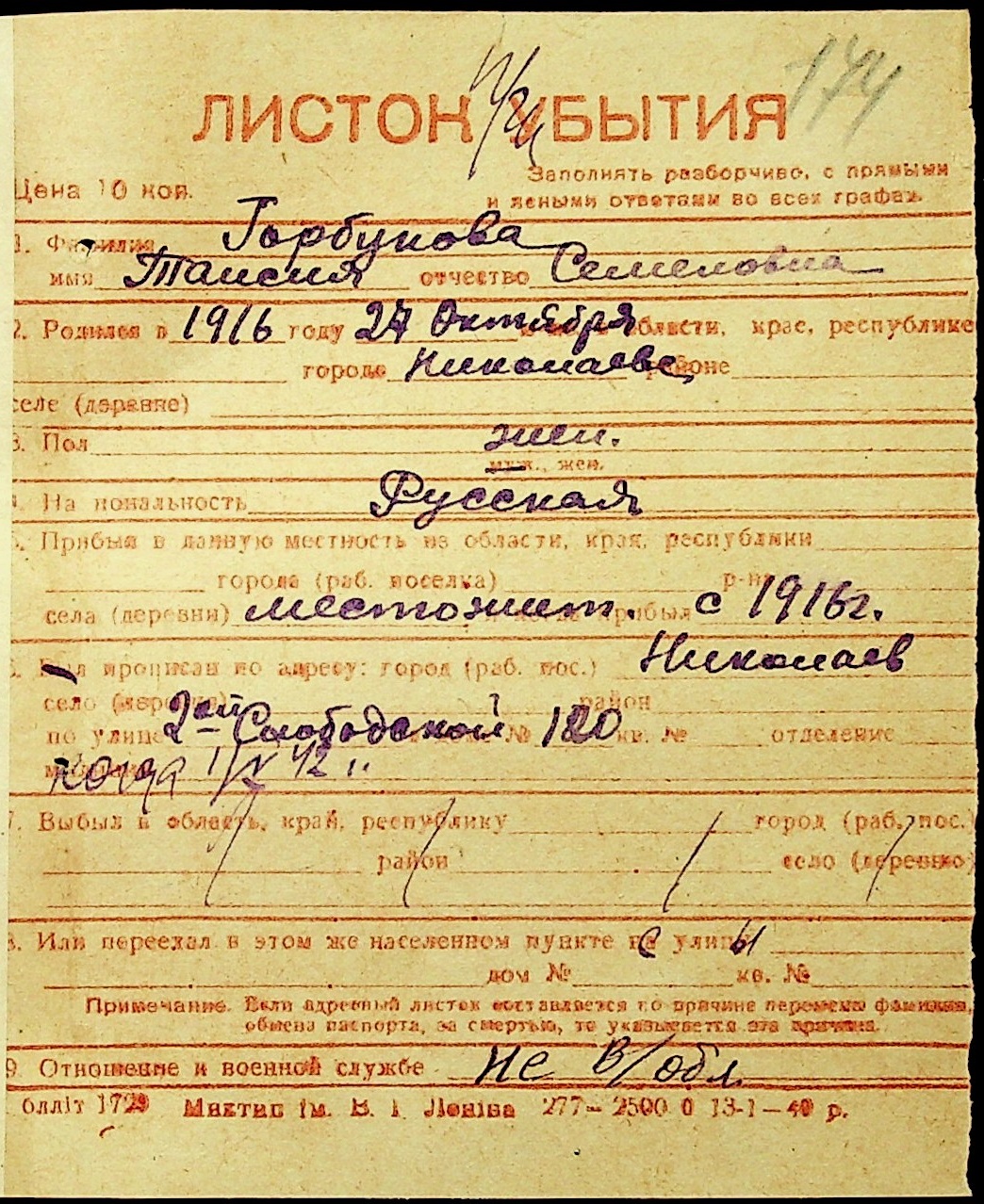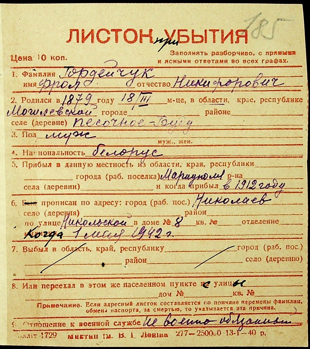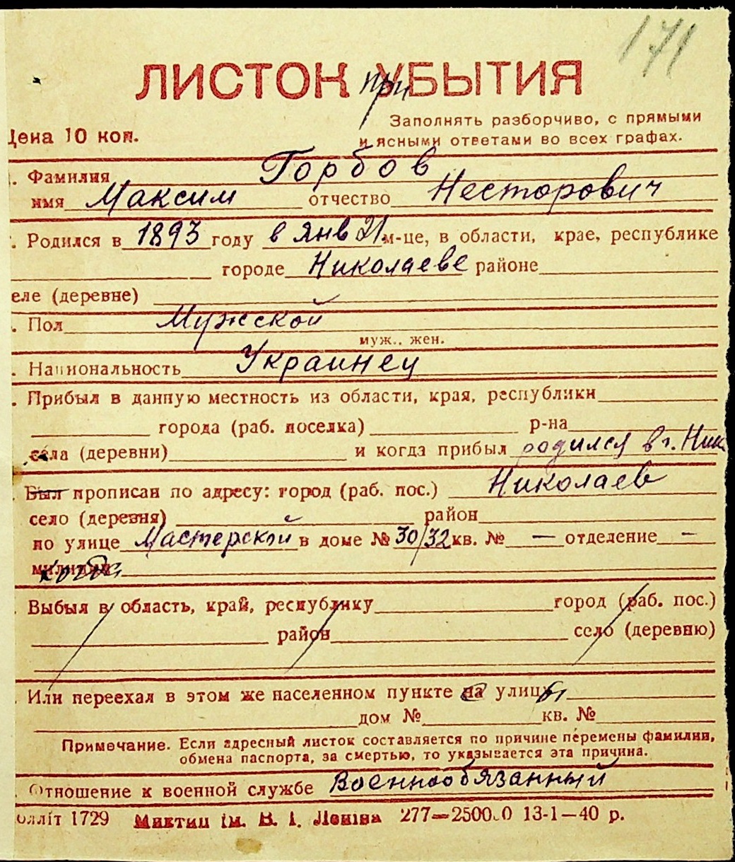◦ ◦ Фонд № Н-1016 “Адресне бюро м. Миколаєва”