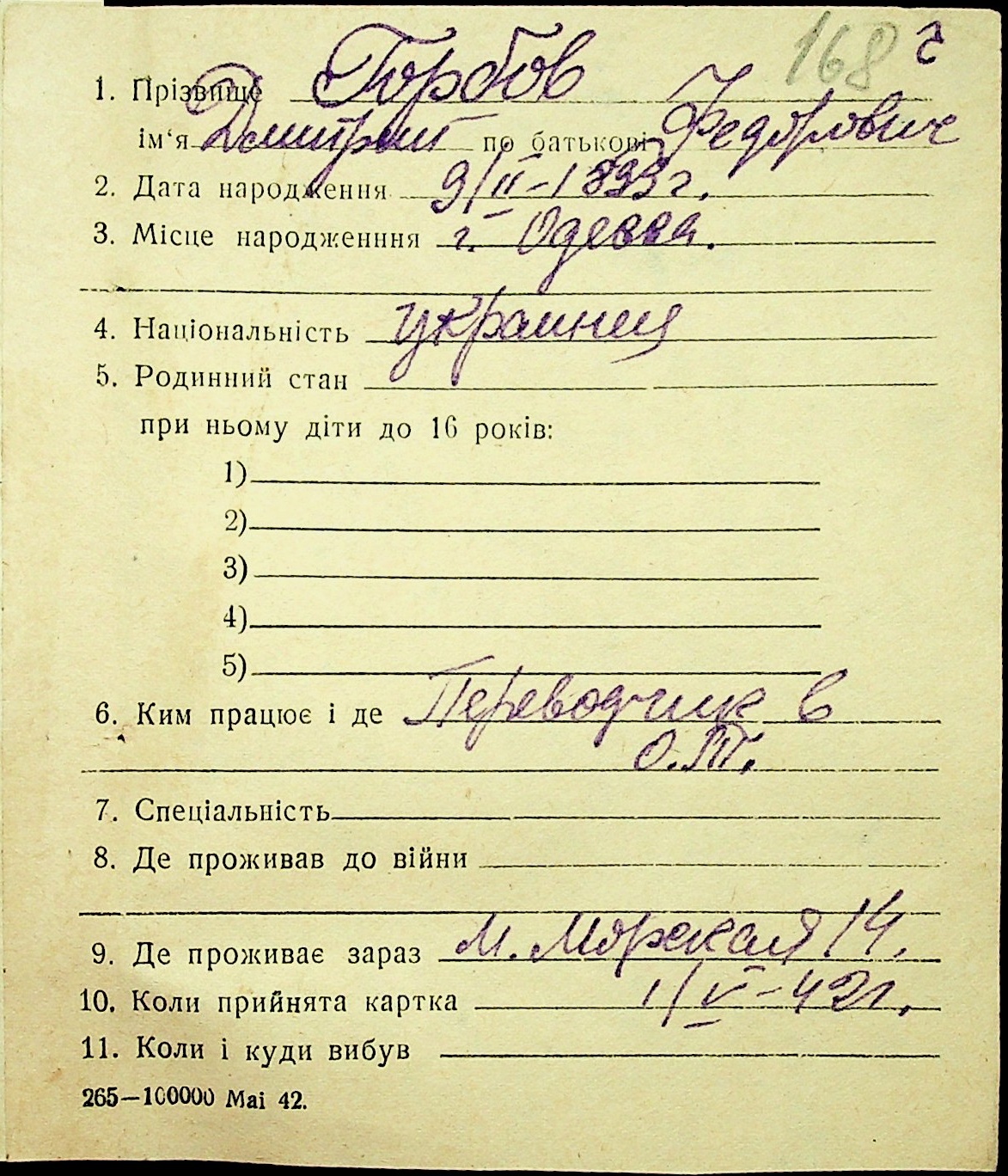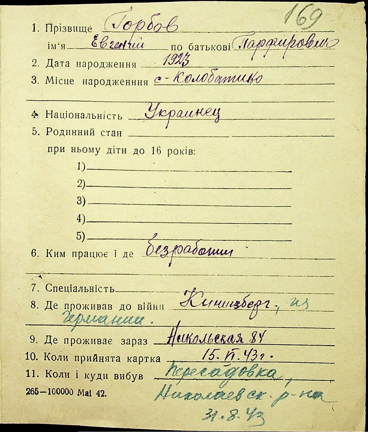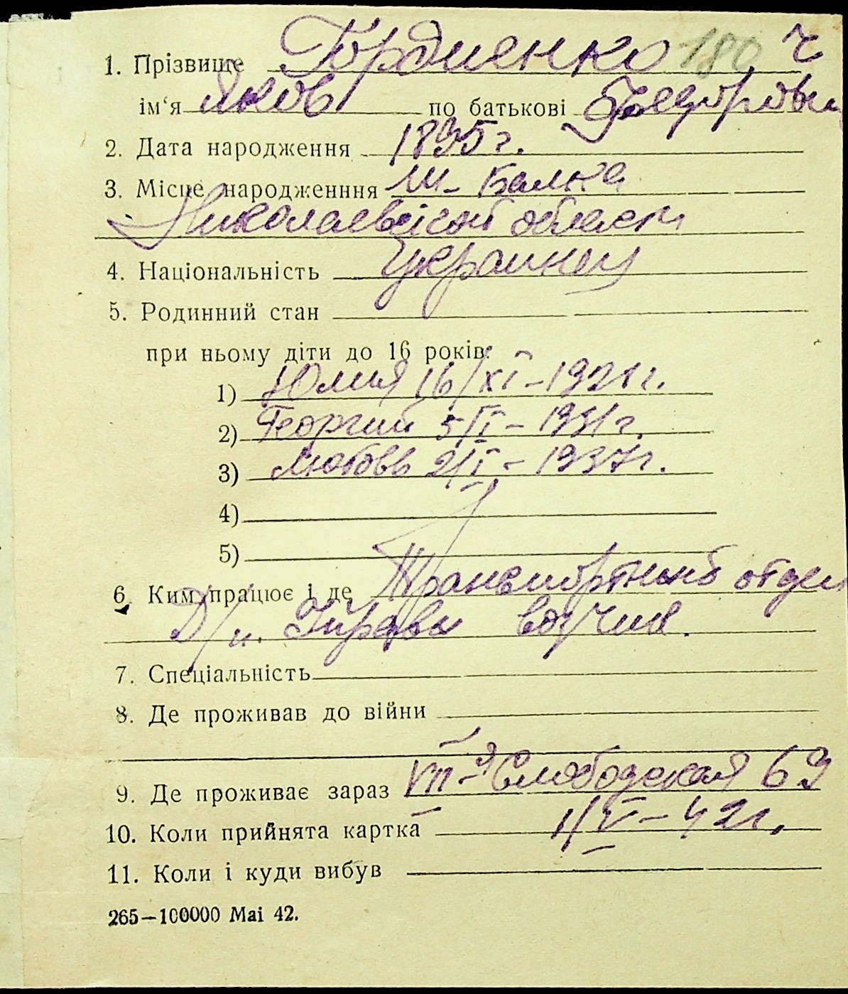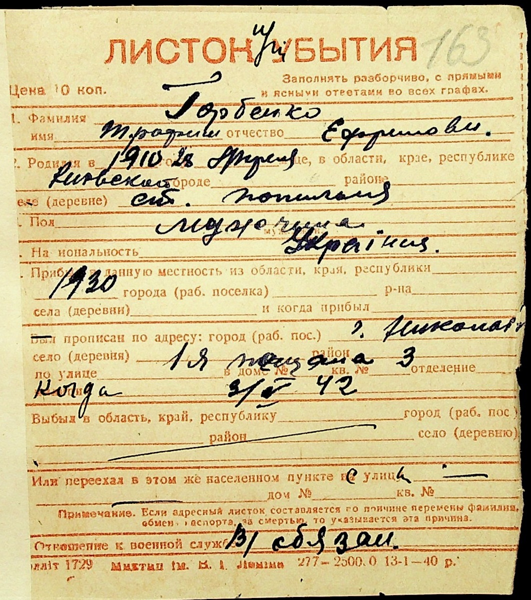 ◦ ◦ Фонд № Н-1016 “Адресне бюро м. Миколаєва”