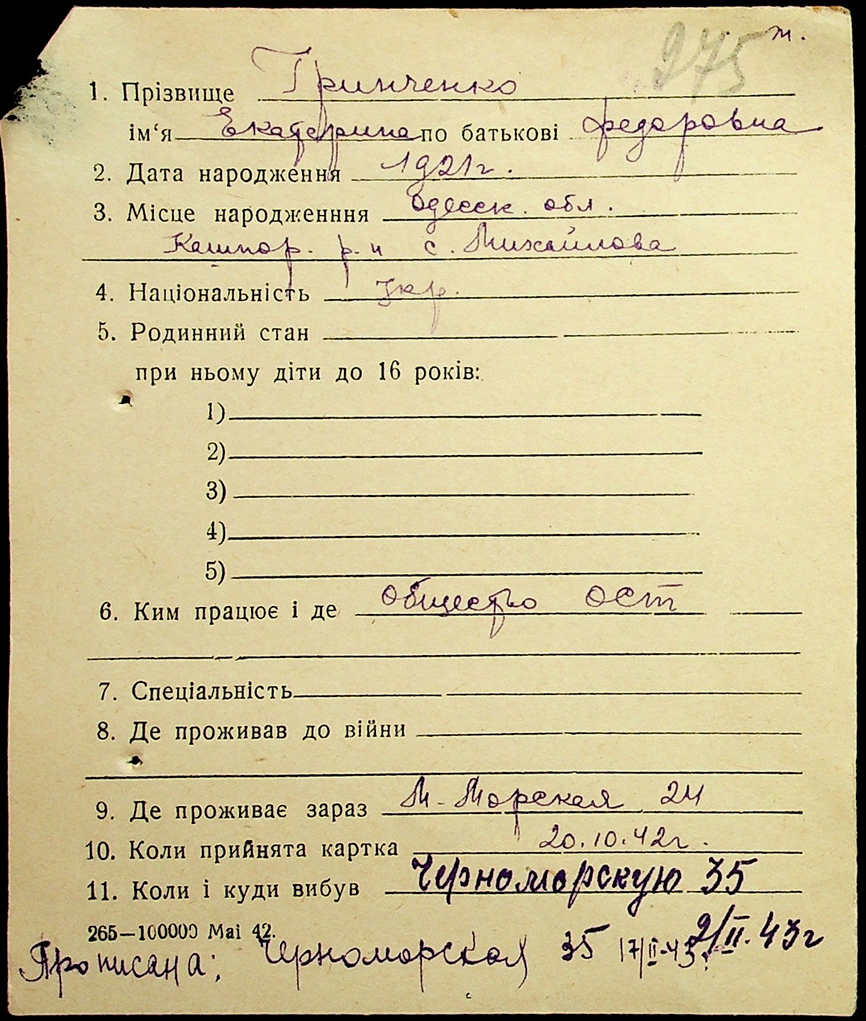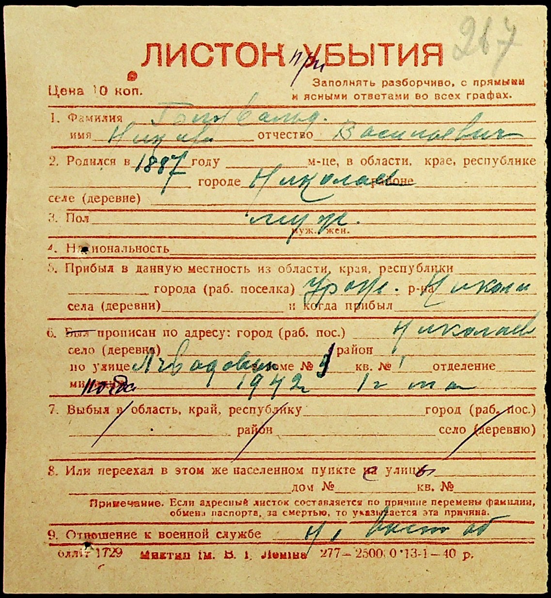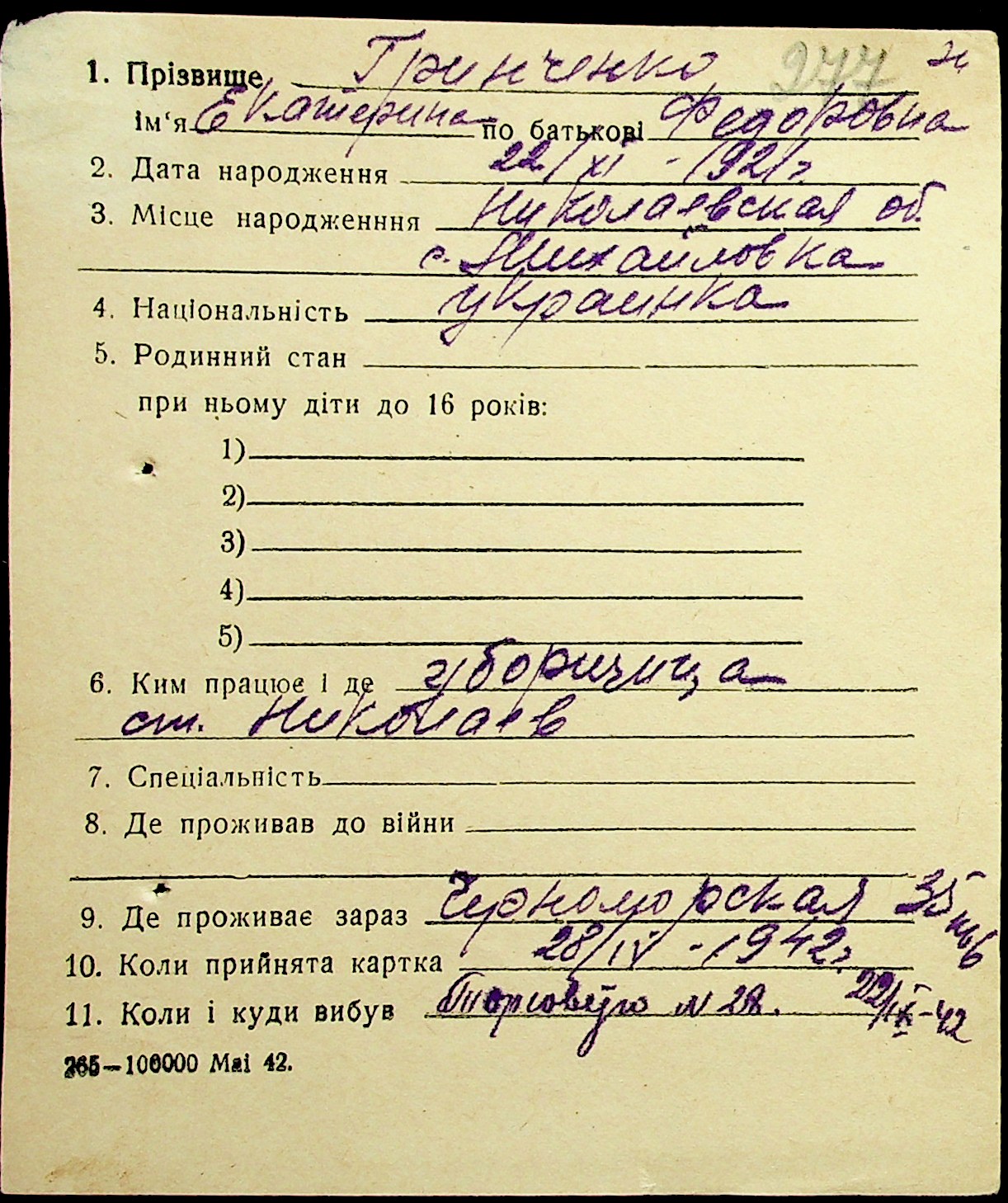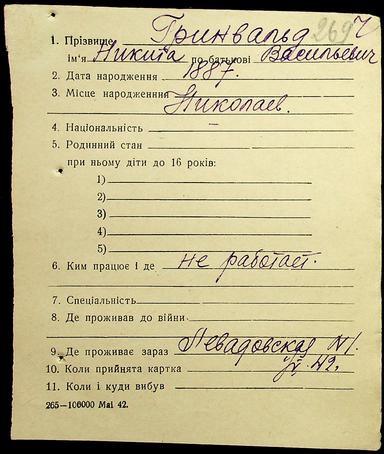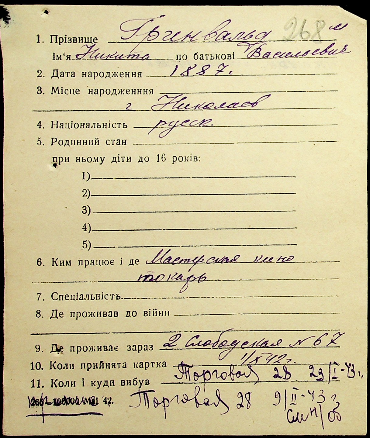 ◦ ◦ Фонд № Н-1016 “Адресне бюро м. Миколаєва”