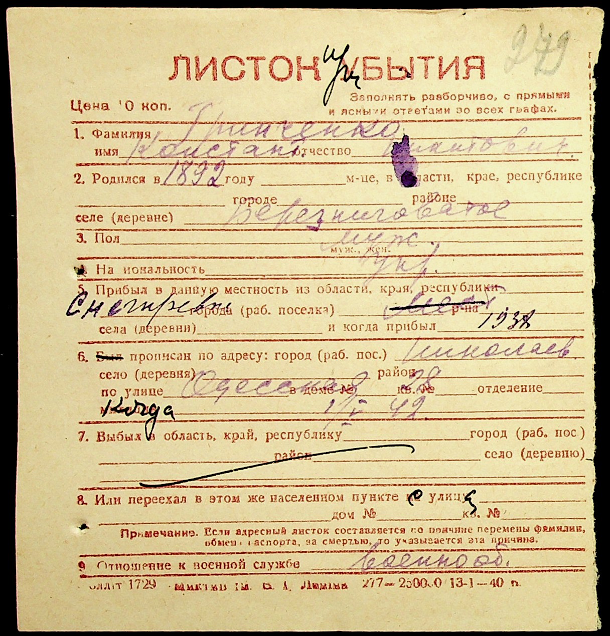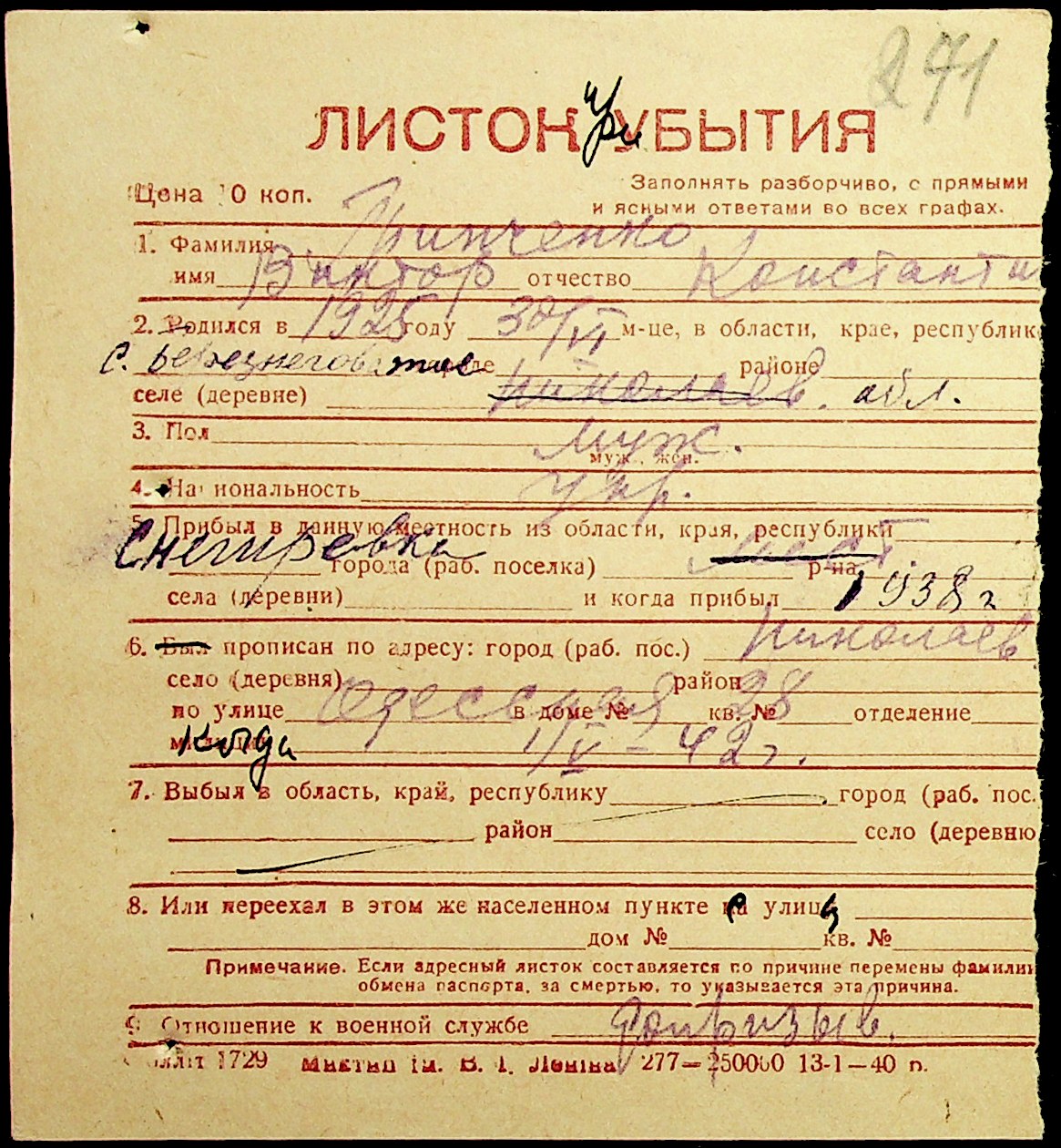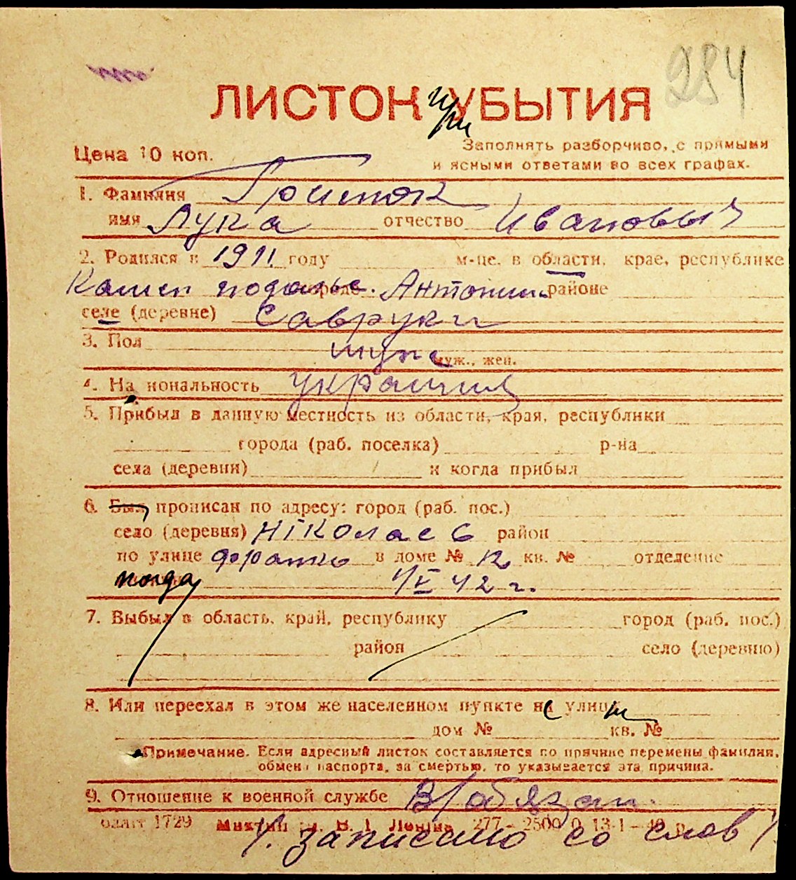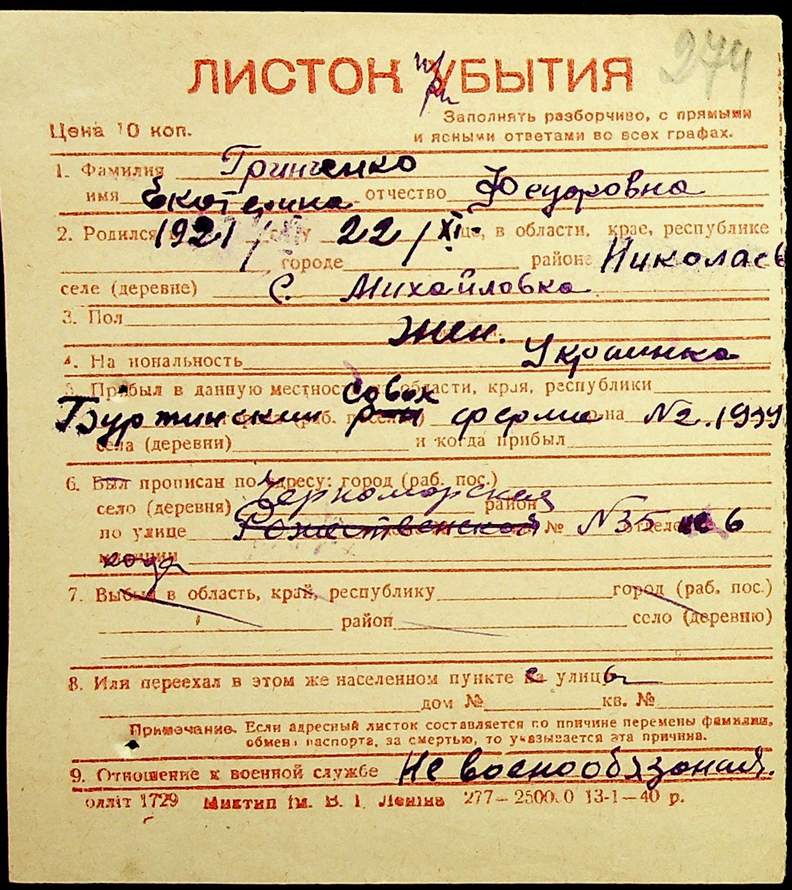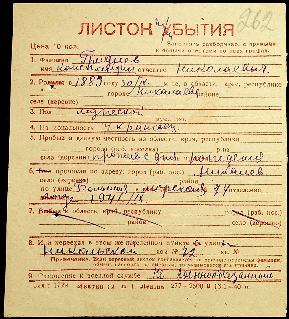 ◦ ◦ Фонд № Н-1016 “Адресне бюро м. Миколаєва”