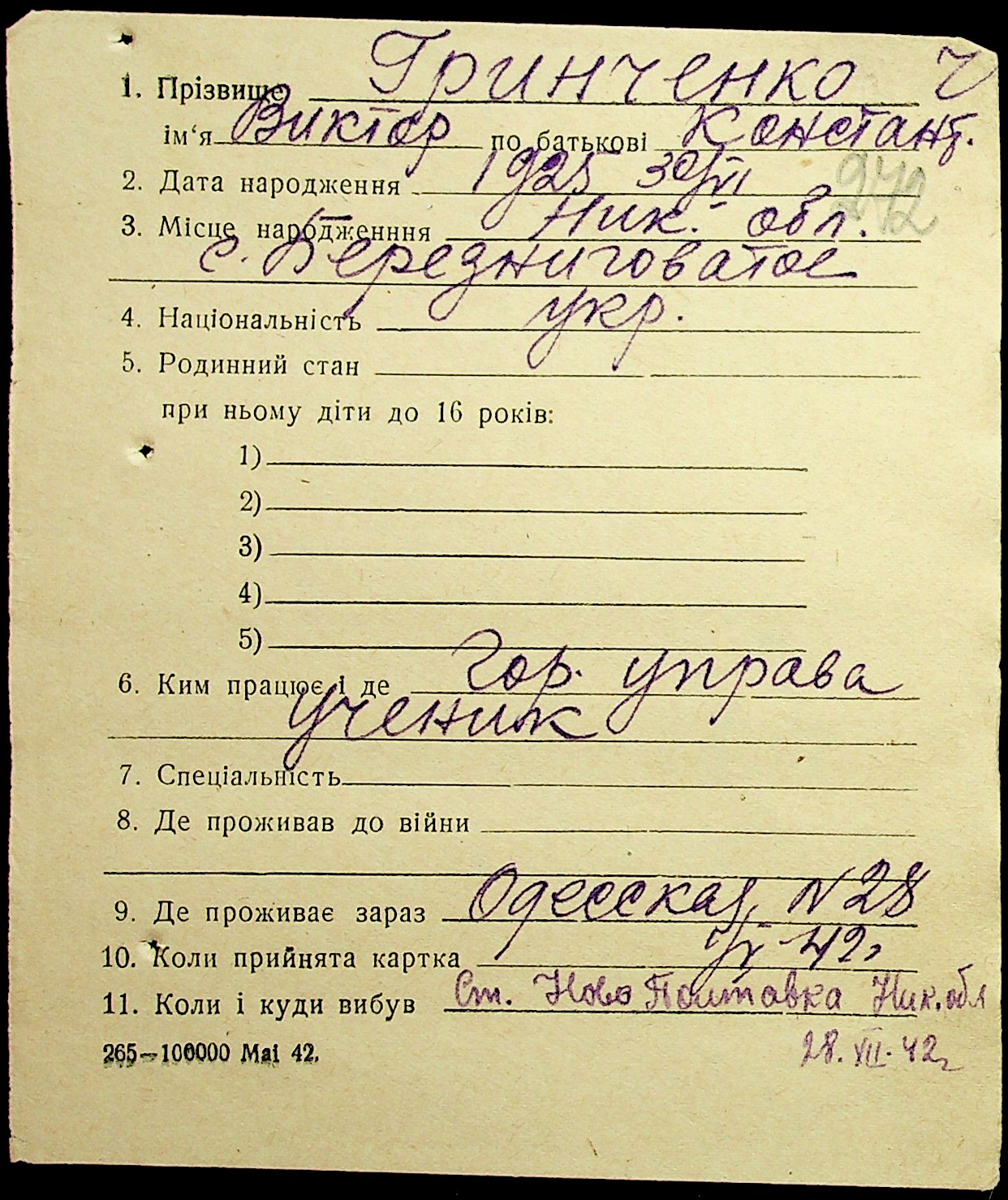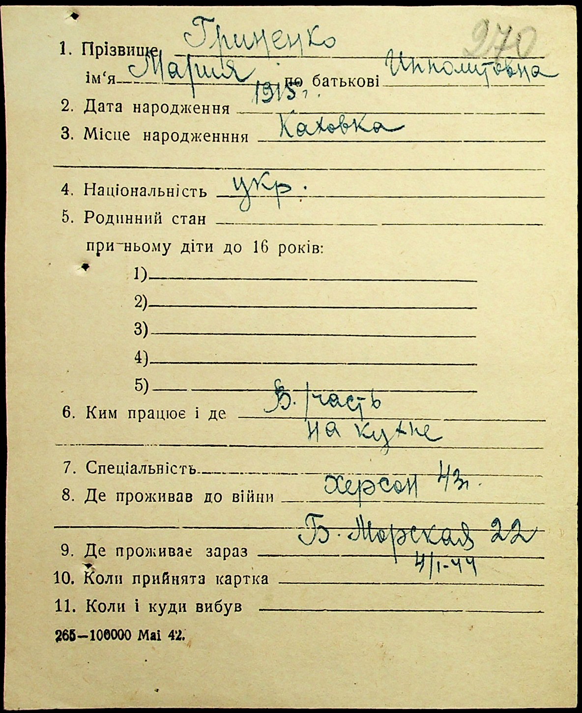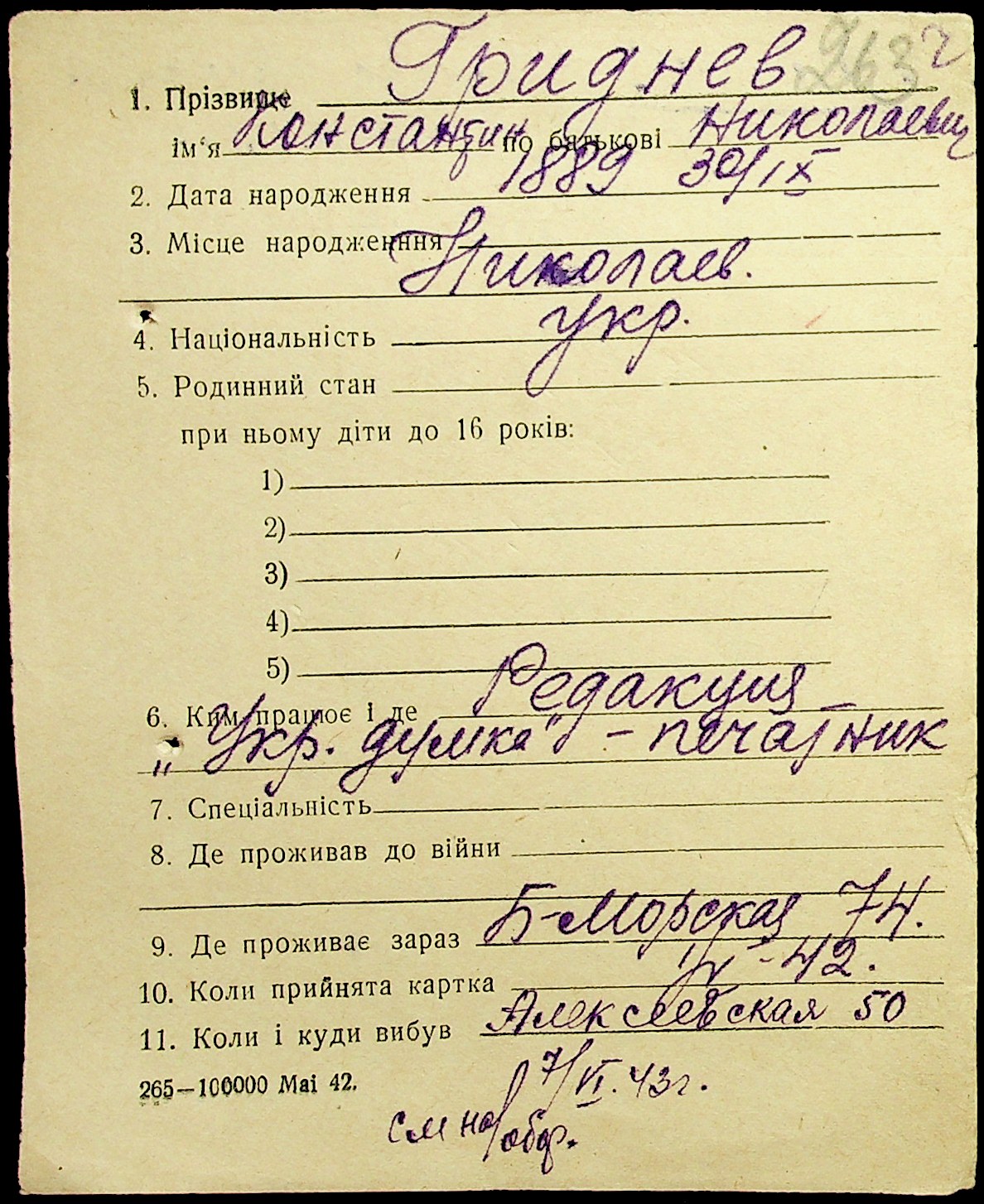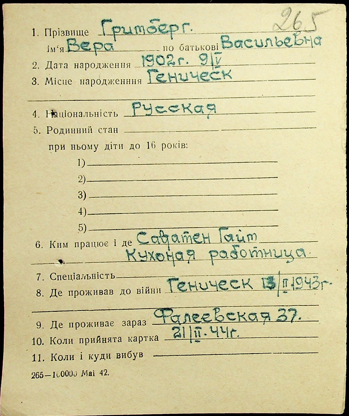 • • • • Справа № 17 “Картки адресного бюро м. Миколаєва на осіб, які працювали в німецько-фашистських установах та військових частинах. Прізвища на літеру «Г». Том 5”