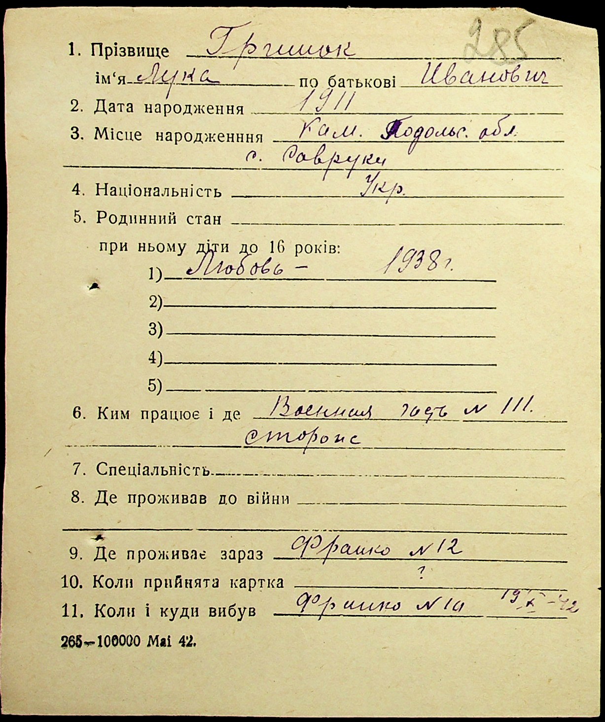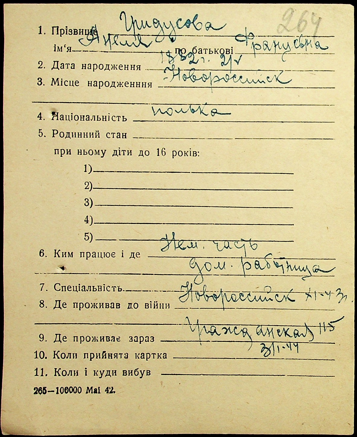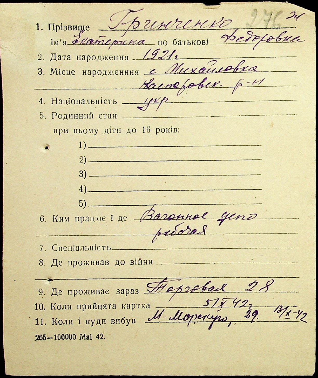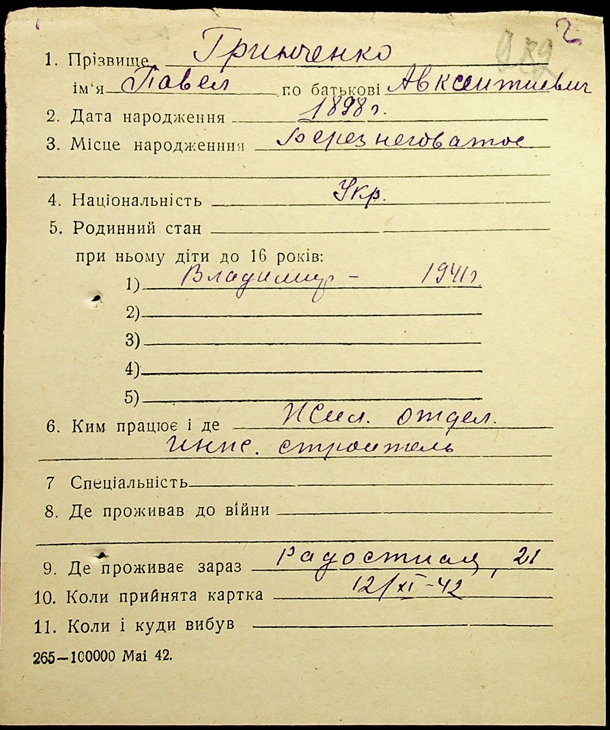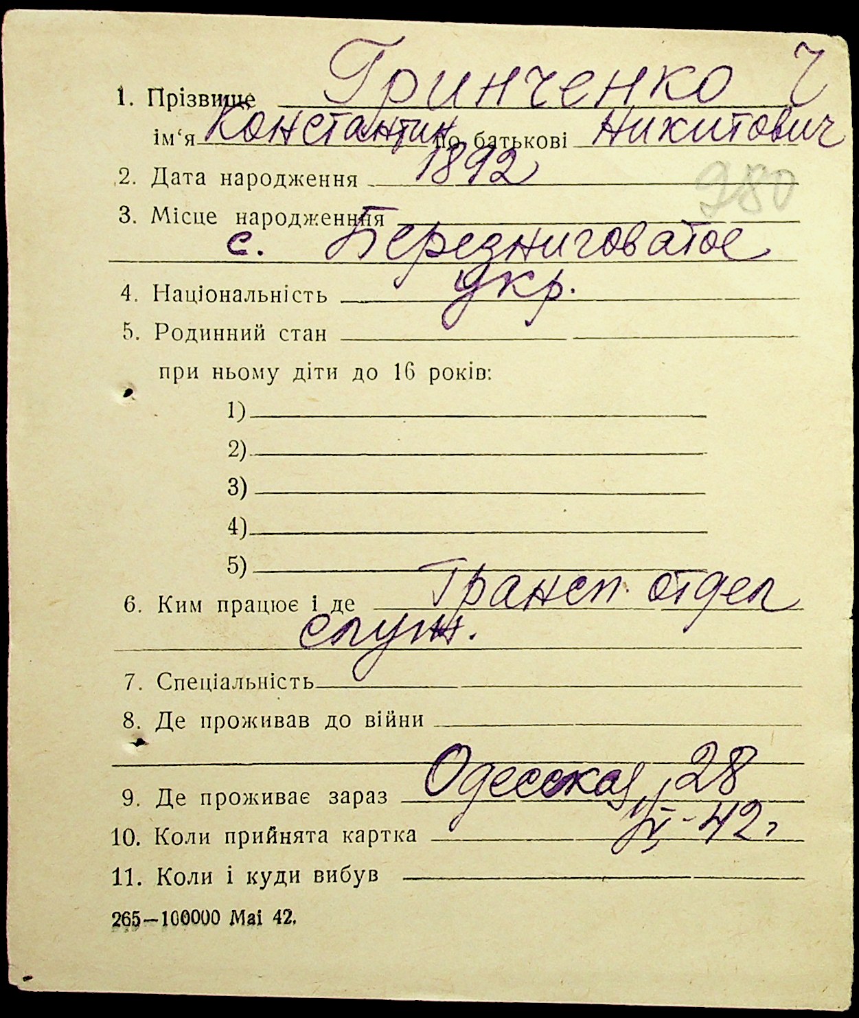 • • • • Справа № 17 “Картки адресного бюро м. Миколаєва на осіб, які працювали в німецько-фашистських установах та військових частинах. Прізвища на літеру «Г». Том 5”
