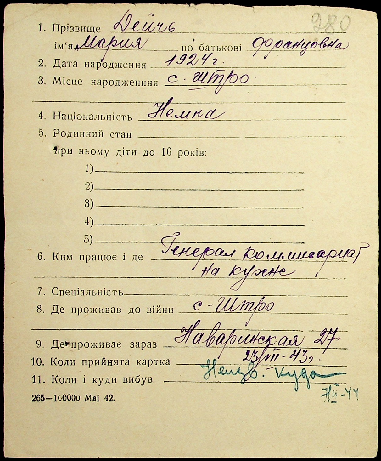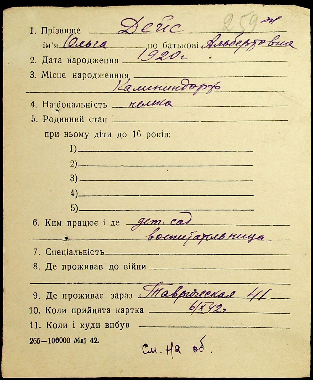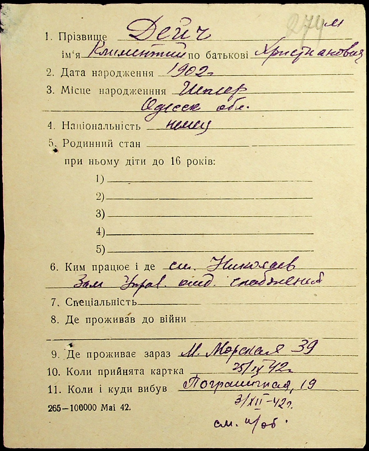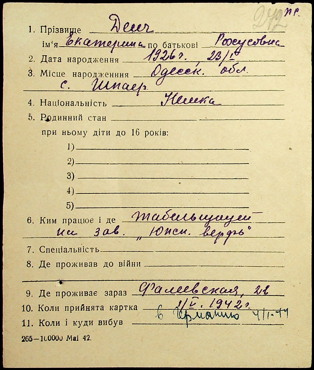 • • • • Справа № 19 “Картки адресного бюро м. Миколаєва на осіб, які працювали в німецько-фашистських установах та військових частинах. Прізвища на літеру «Д». Том 1”