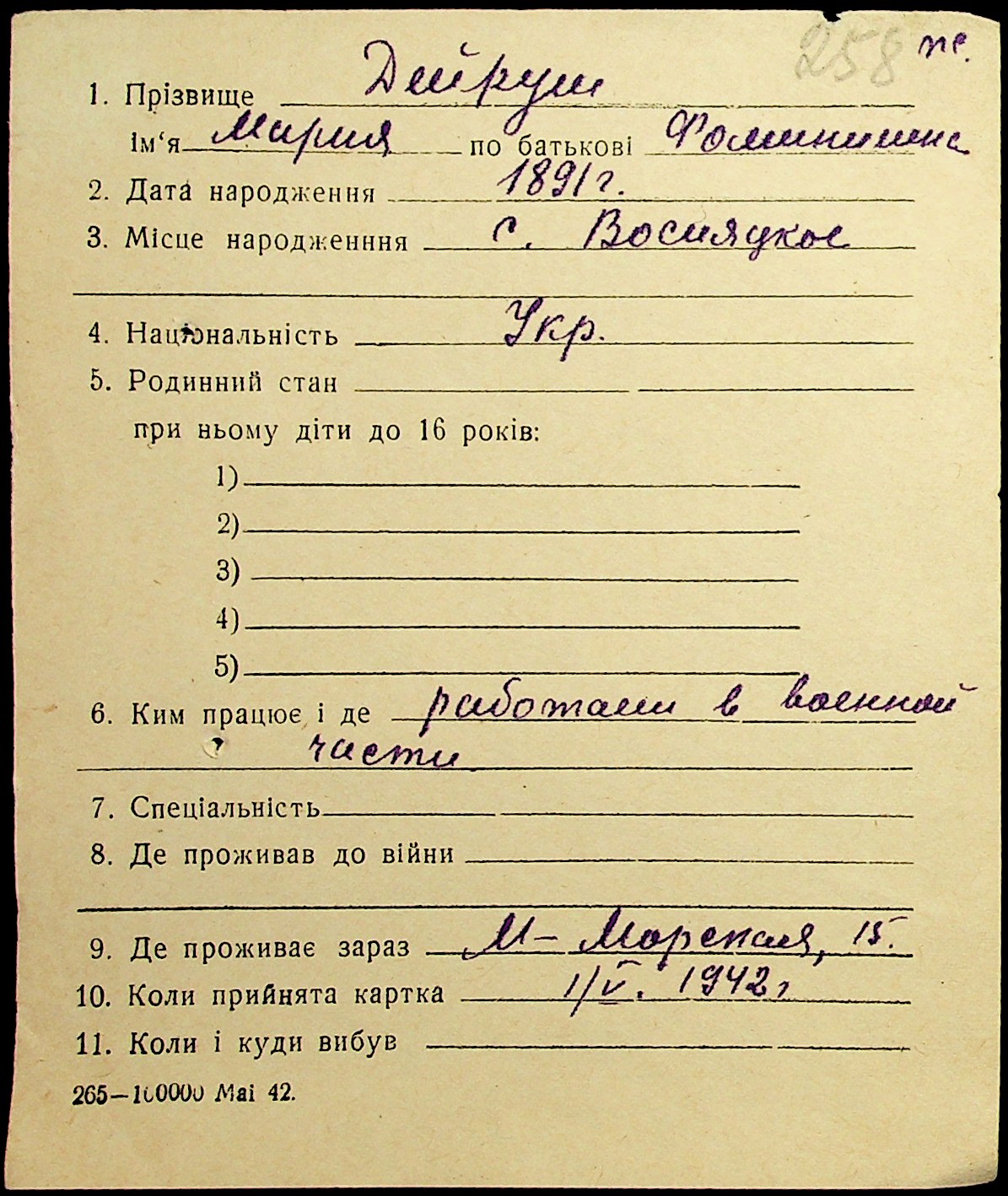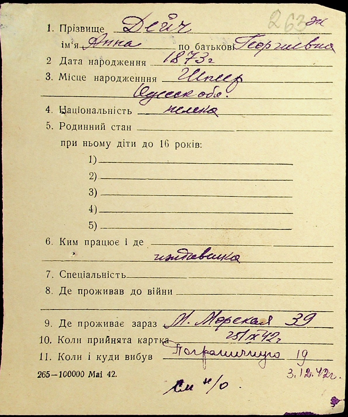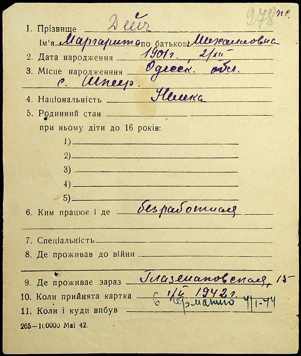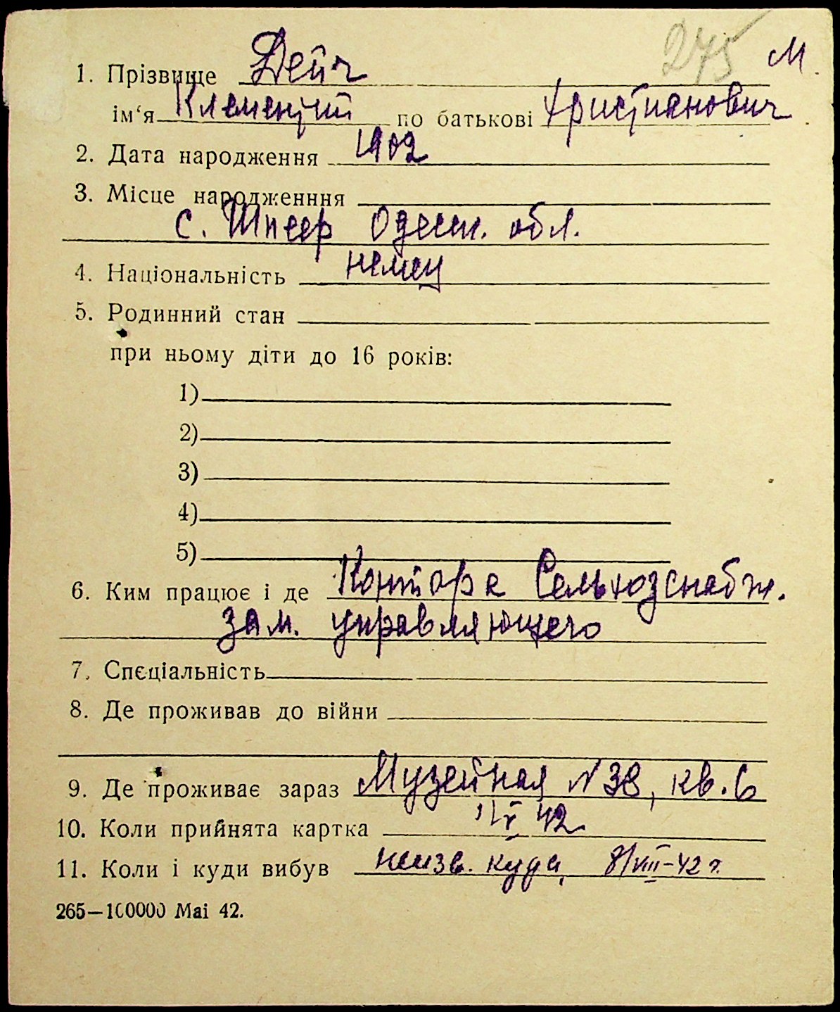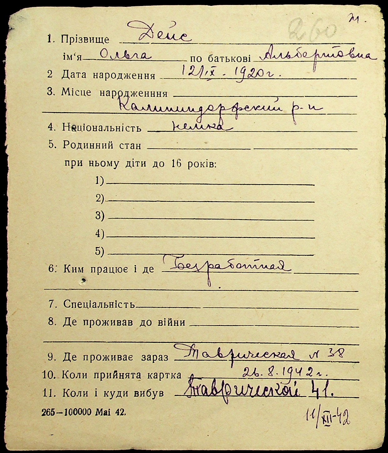 • • • • Справа № 19 “Картки адресного бюро м. Миколаєва на осіб, які працювали в німецько-фашистських установах та військових частинах. Прізвища на літеру «Д». Том 1”