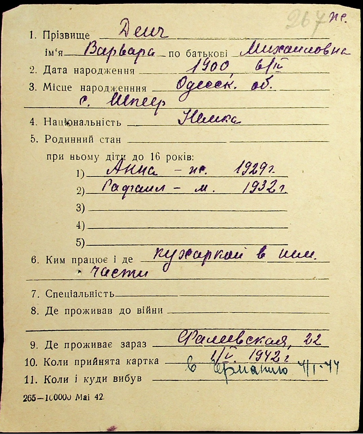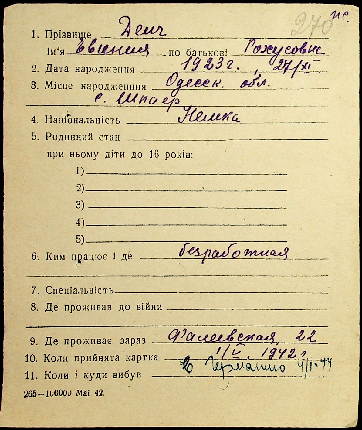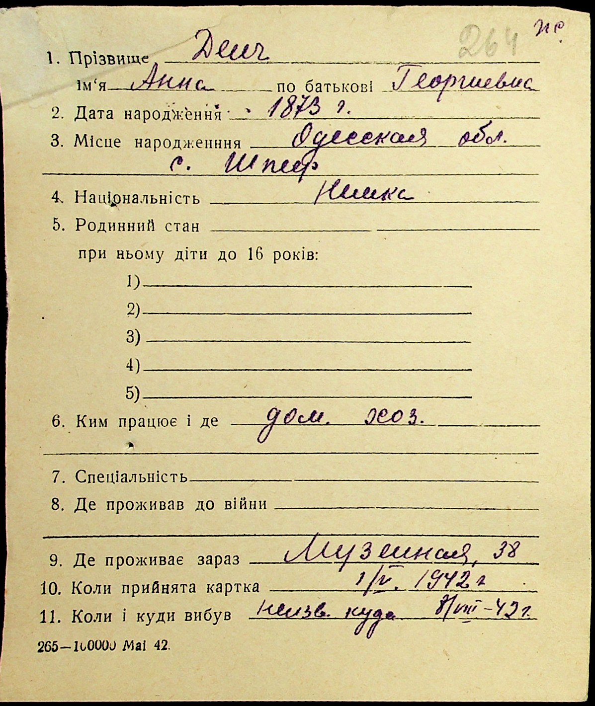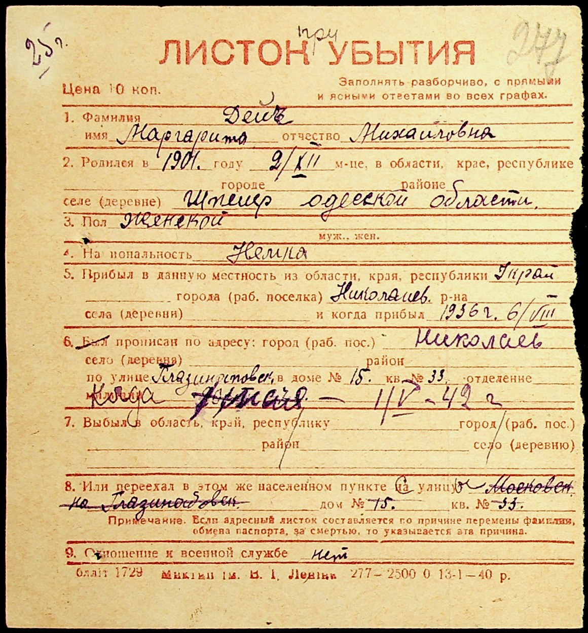 • • • • Справа № 19 “Картки адресного бюро м. Миколаєва на осіб, які працювали в німецько-фашистських установах та військових частинах. Прізвища на літеру «Д». Том 1”