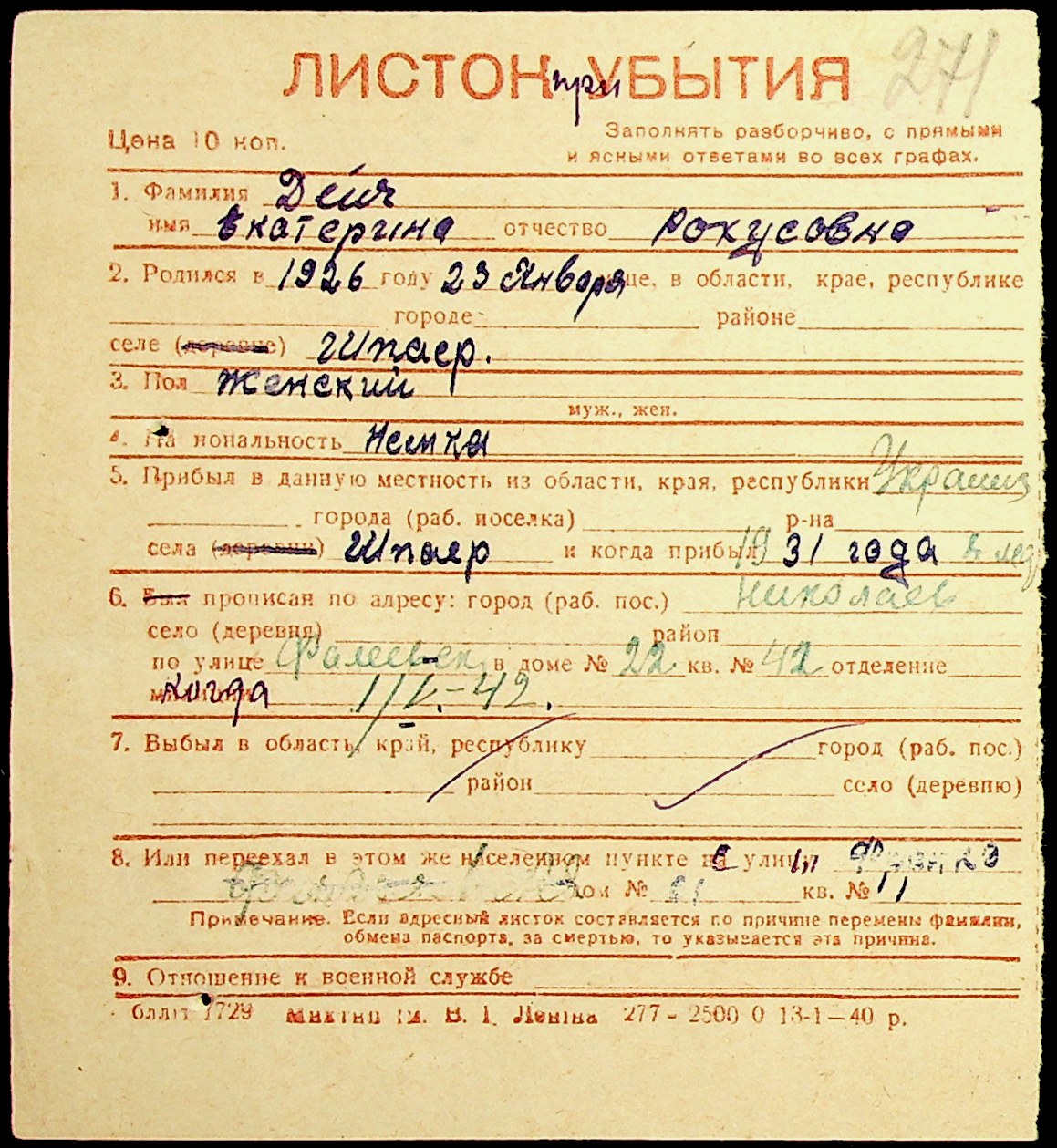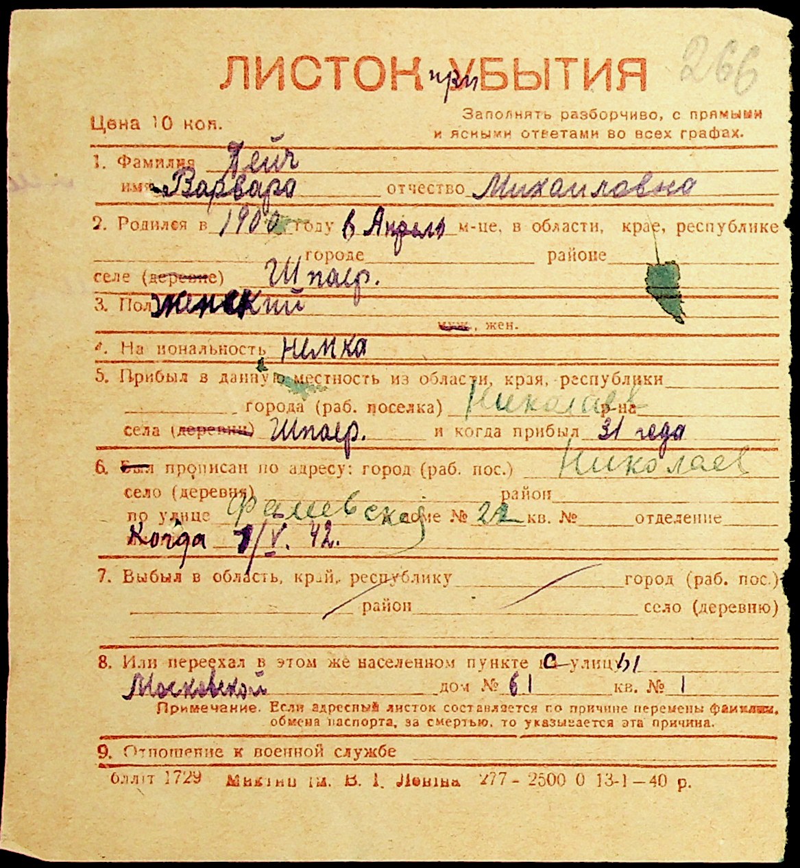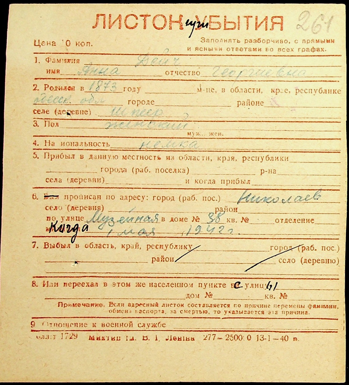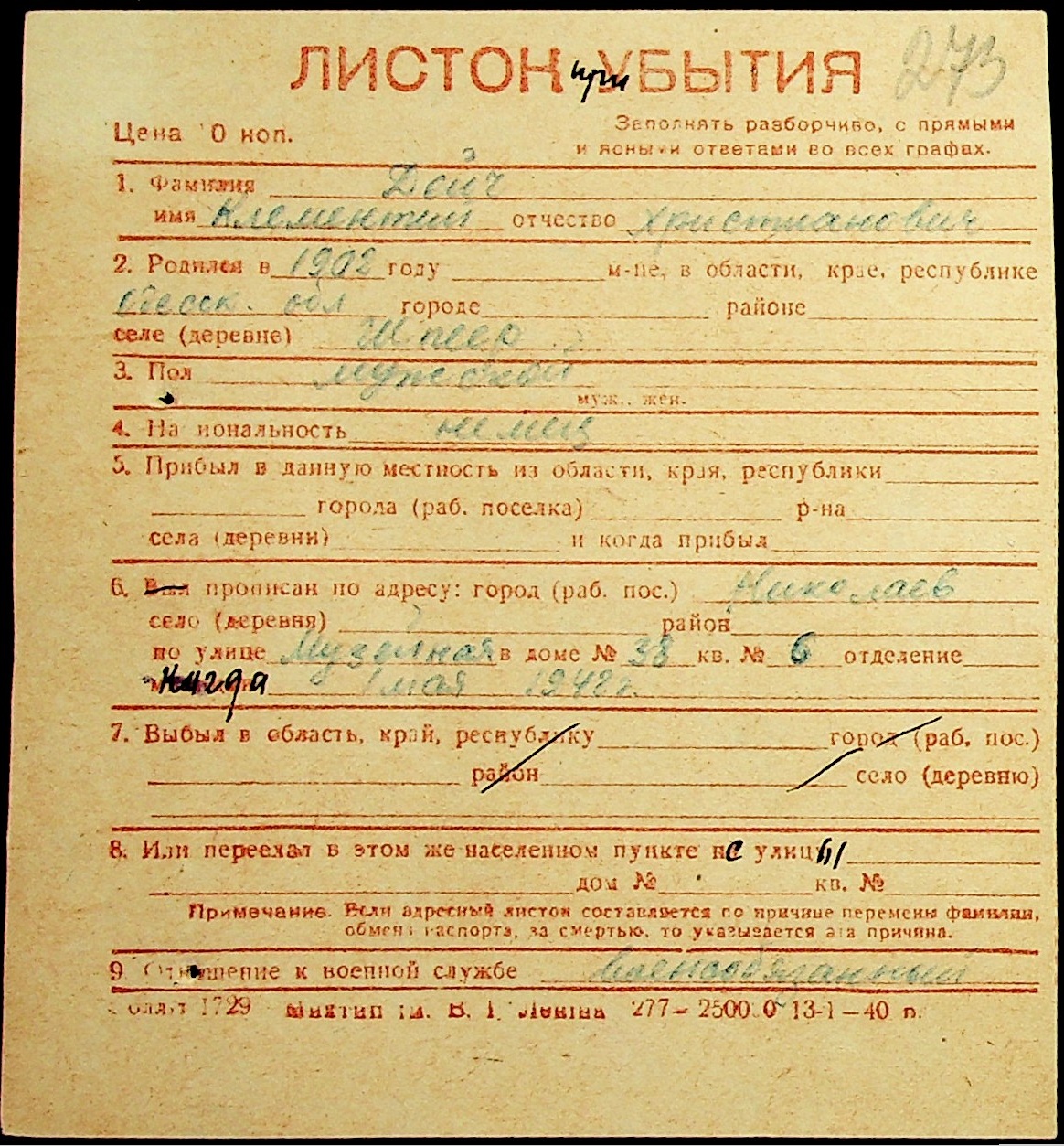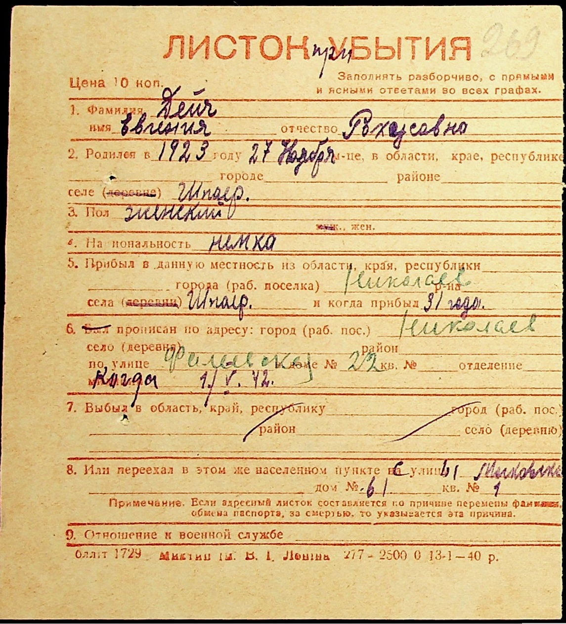 ◦ ◦ Фонд № Н-1016 “Адресне бюро м. Миколаєва”