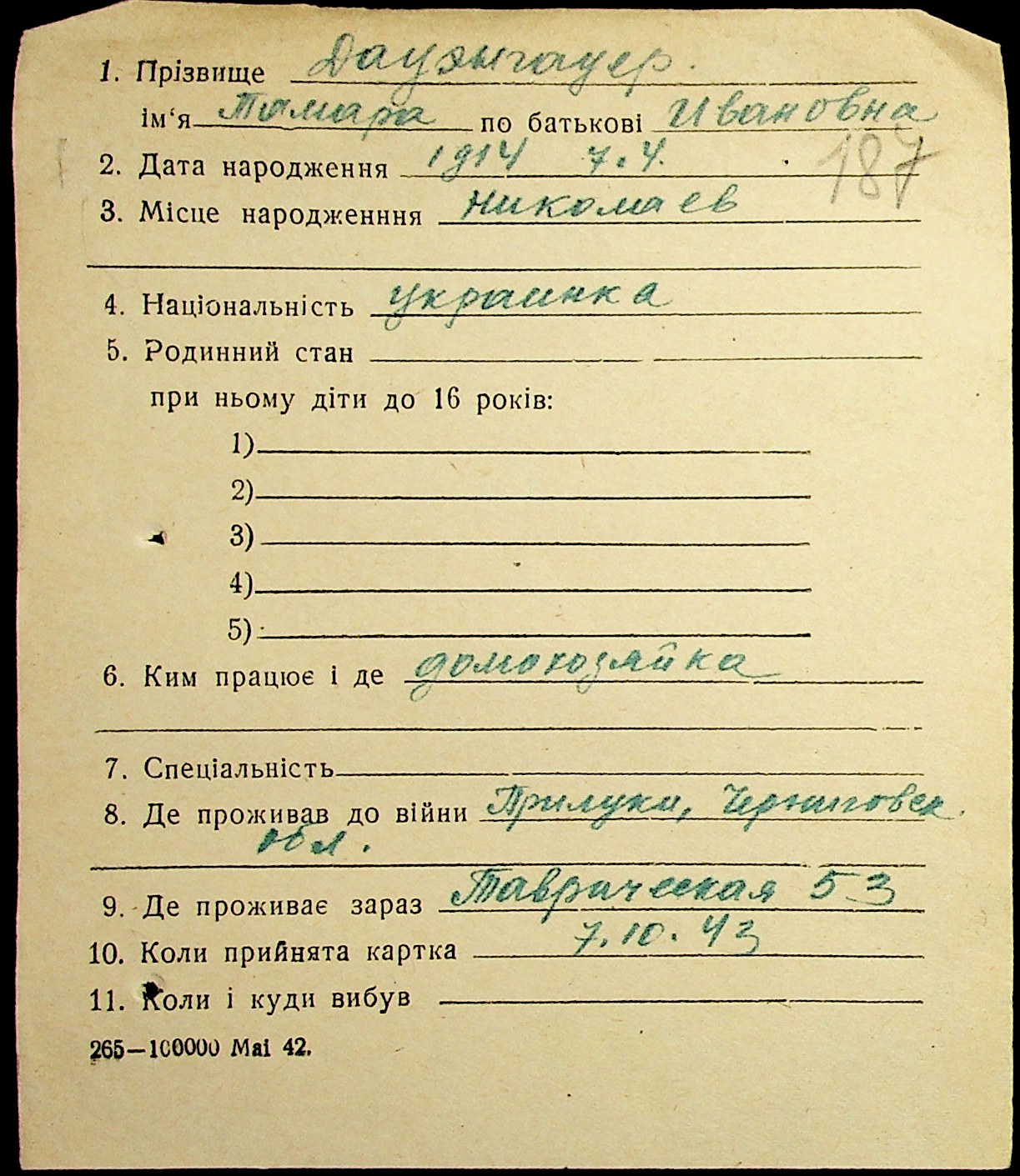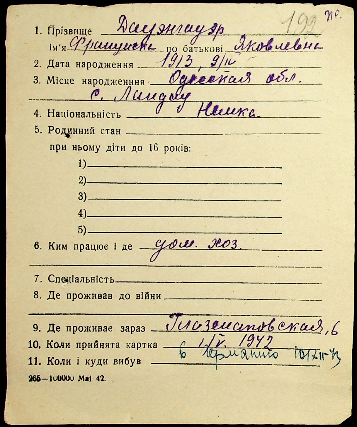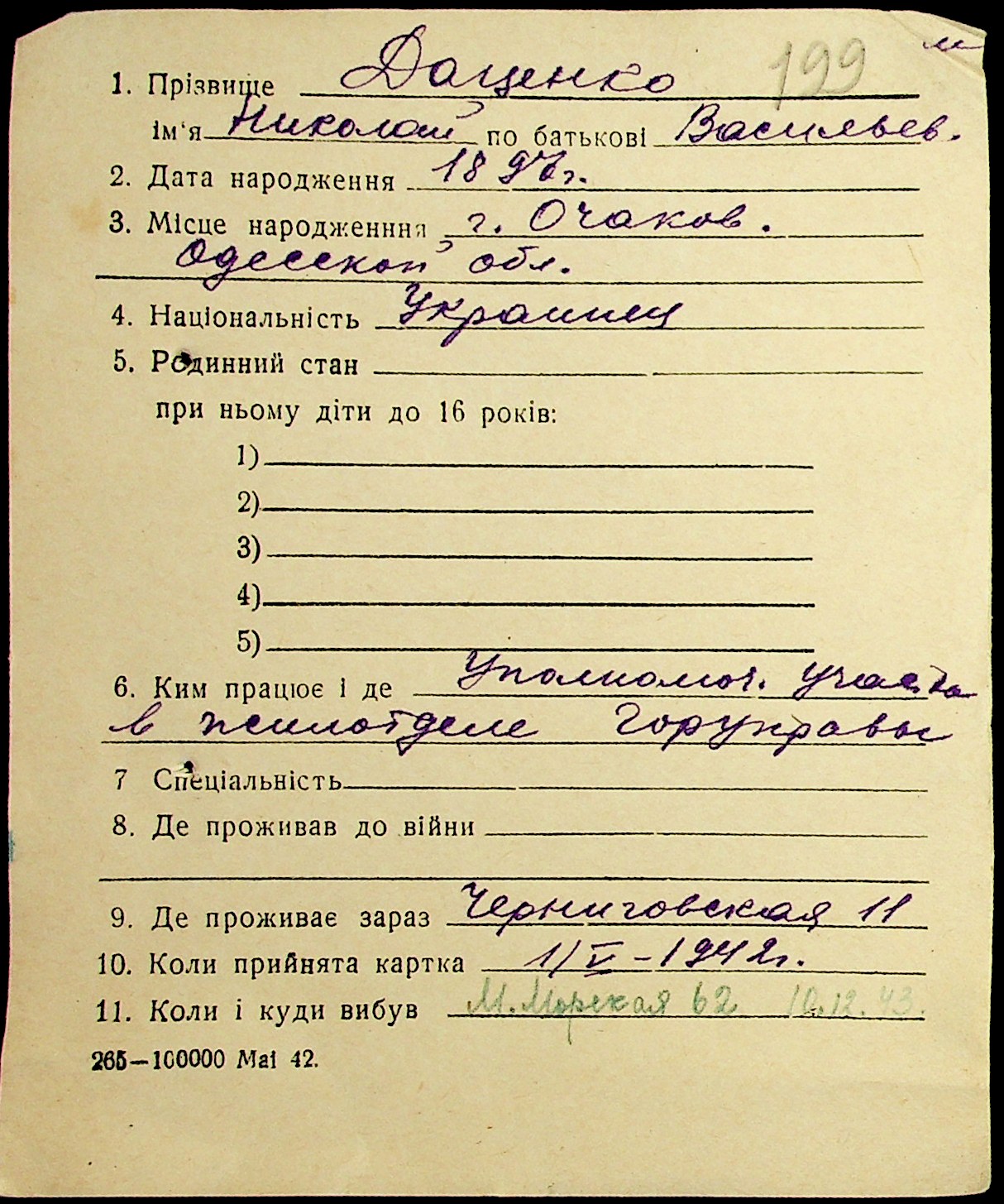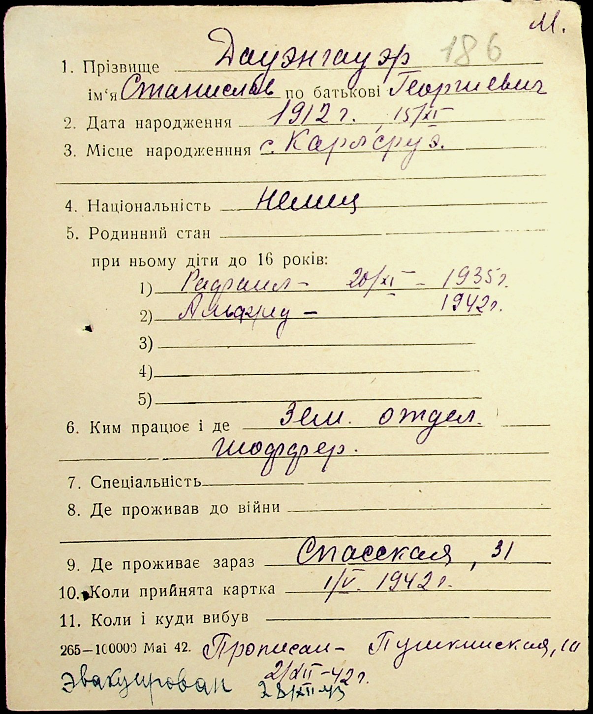 • • • • Справа № 19 “Картки адресного бюро м. Миколаєва на осіб, які працювали в німецько-фашистських установах та військових частинах. Прізвища на літеру «Д». Том 1”