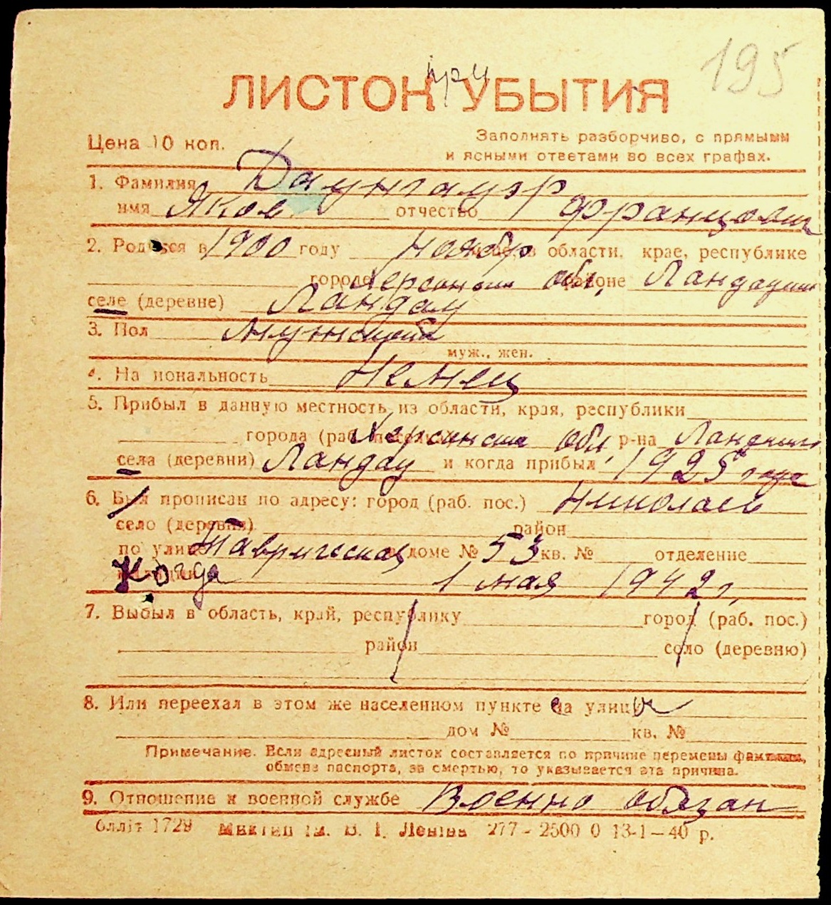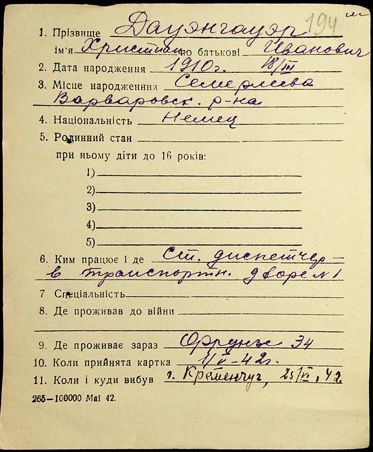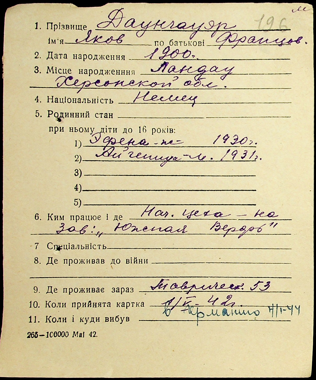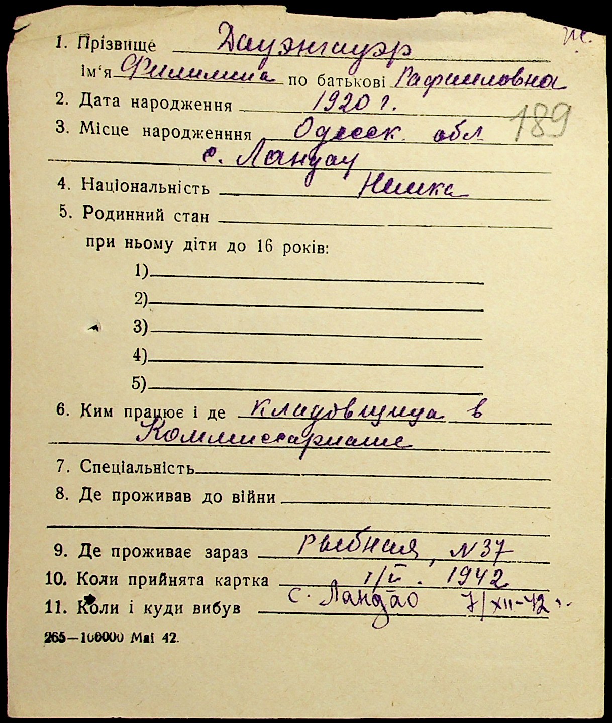 • • • • Справа № 19 “Картки адресного бюро м. Миколаєва на осіб, які працювали в німецько-фашистських установах та військових частинах. Прізвища на літеру «Д». Том 1”