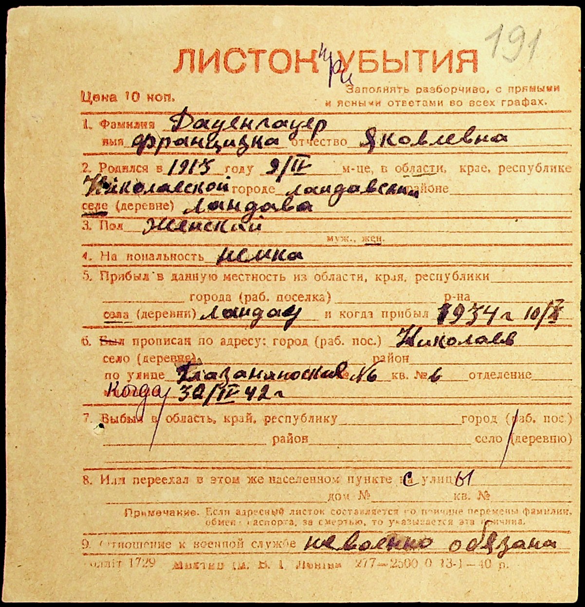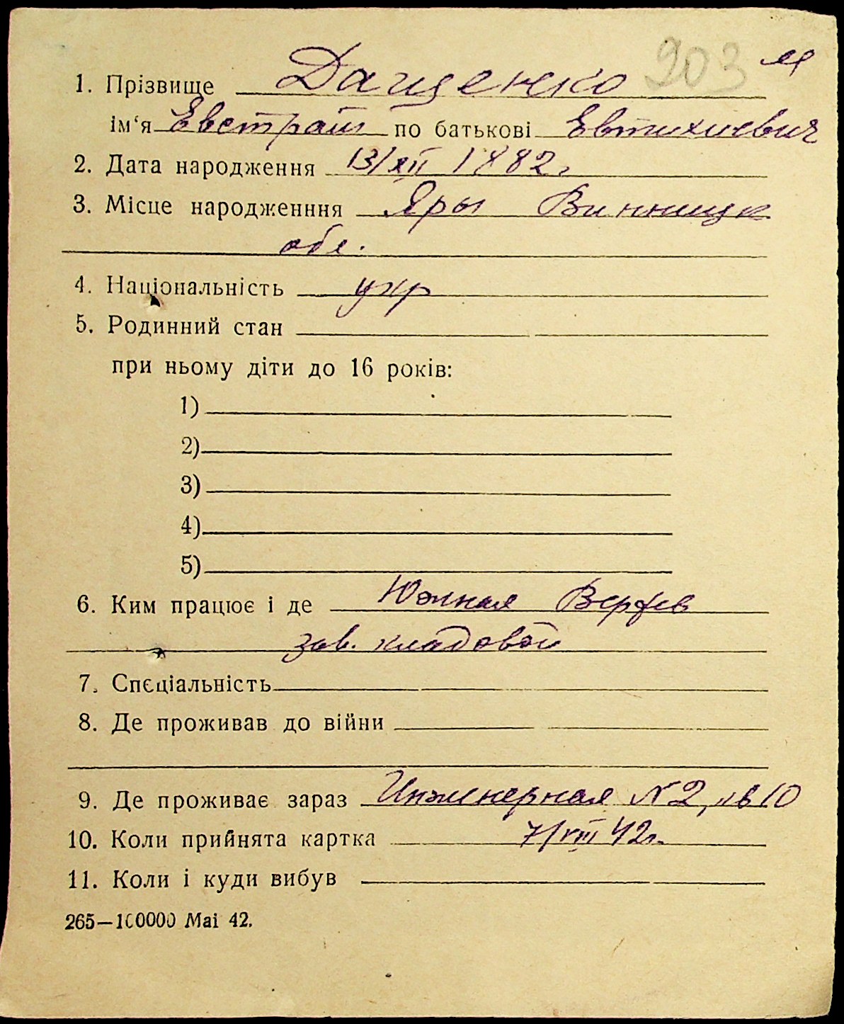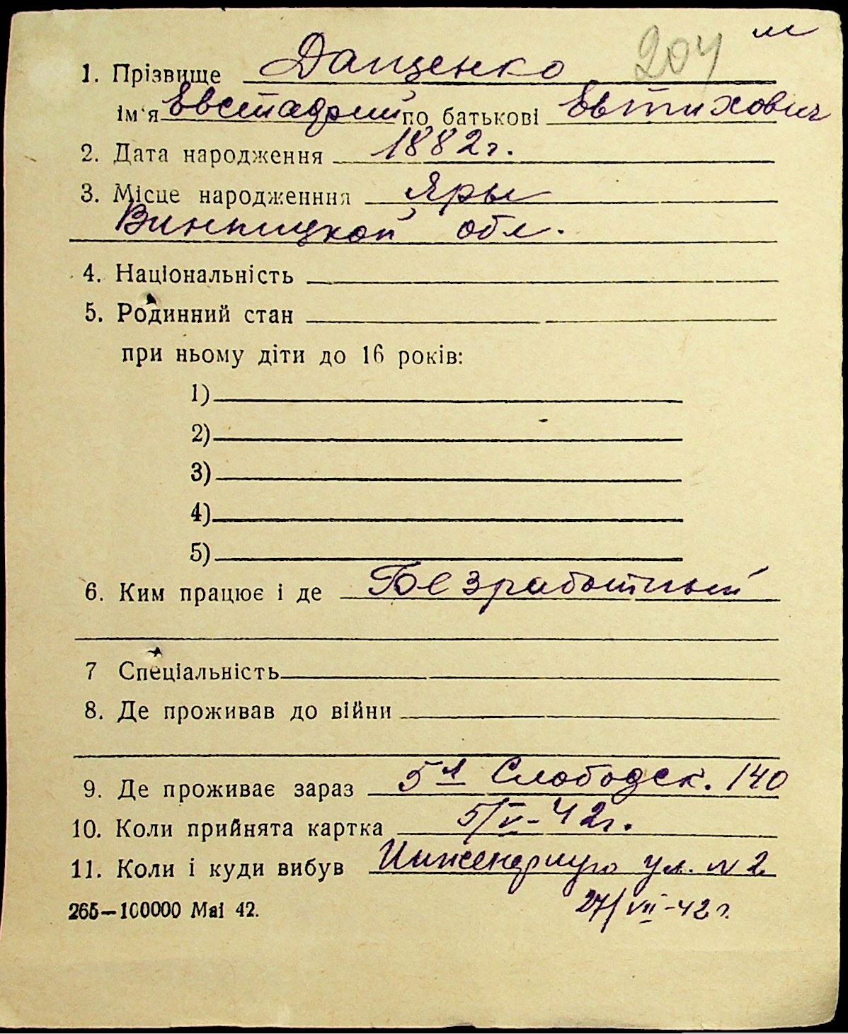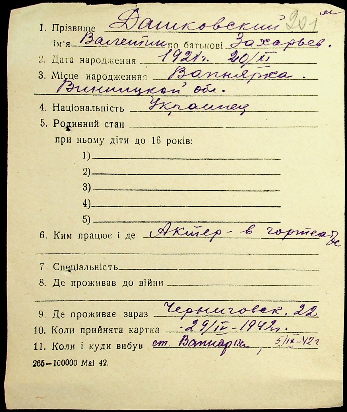 • • • • Справа № 19 “Картки адресного бюро м. Миколаєва на осіб, які працювали в німецько-фашистських установах та військових частинах. Прізвища на літеру «Д». Том 1”
