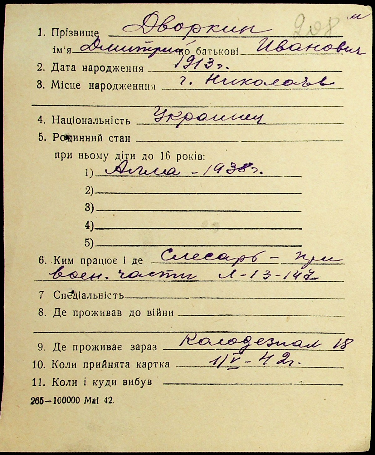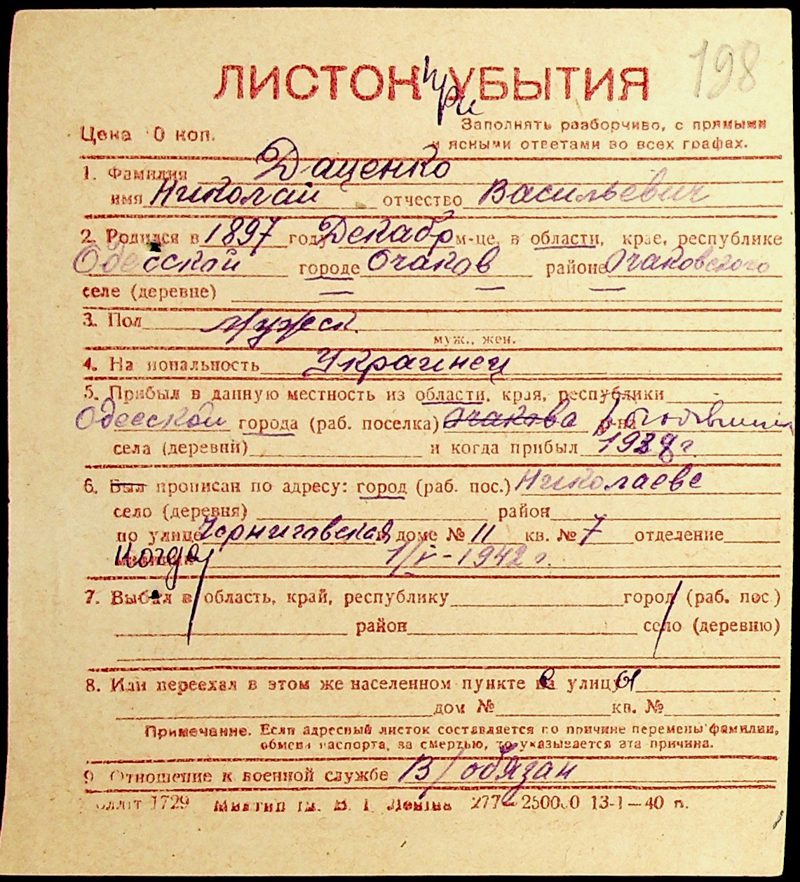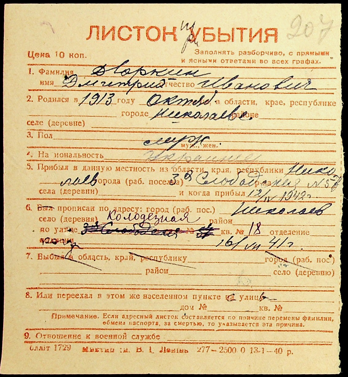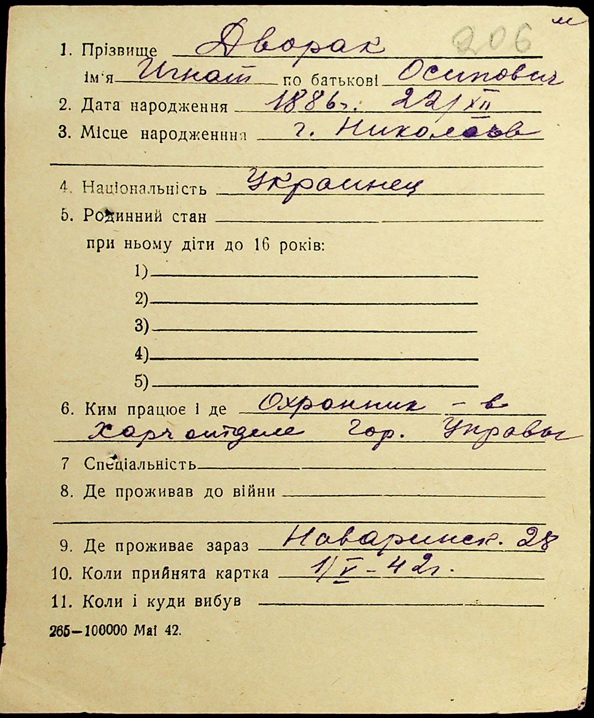 ◦ ◦ Фонд № Н-1016 “Адресне бюро м. Миколаєва”