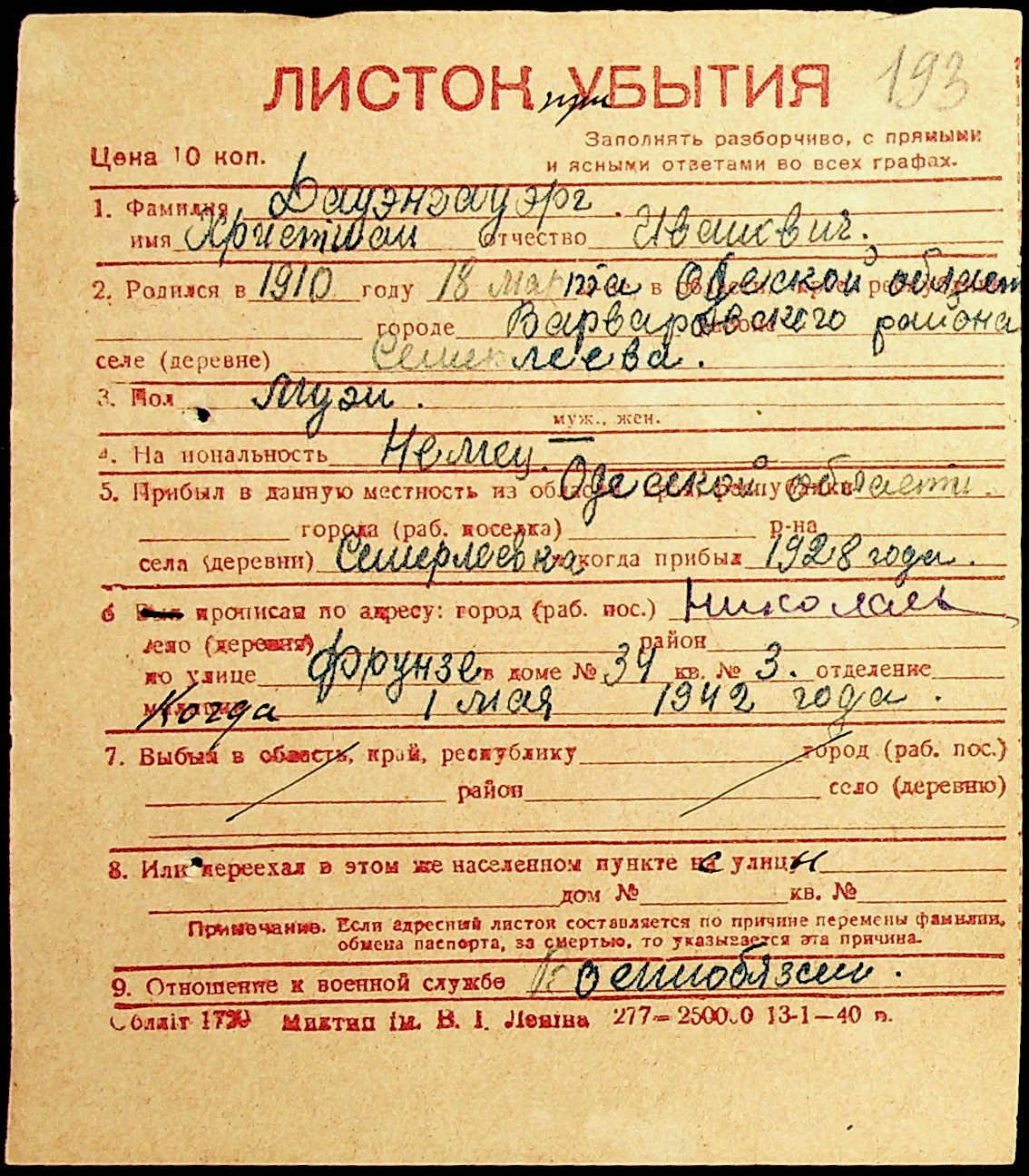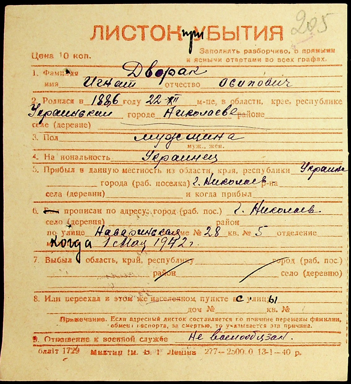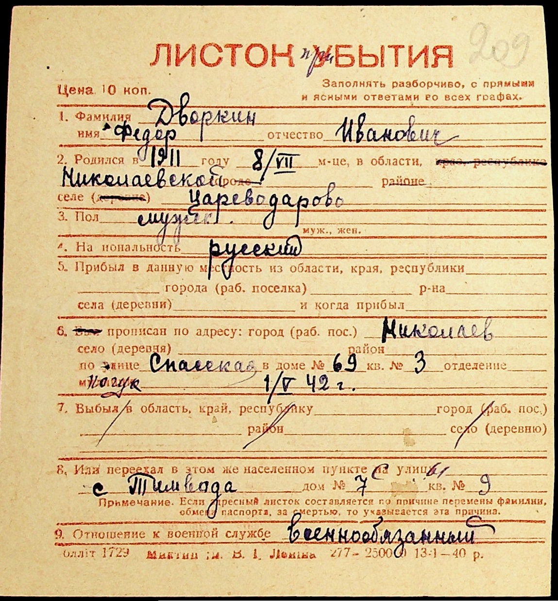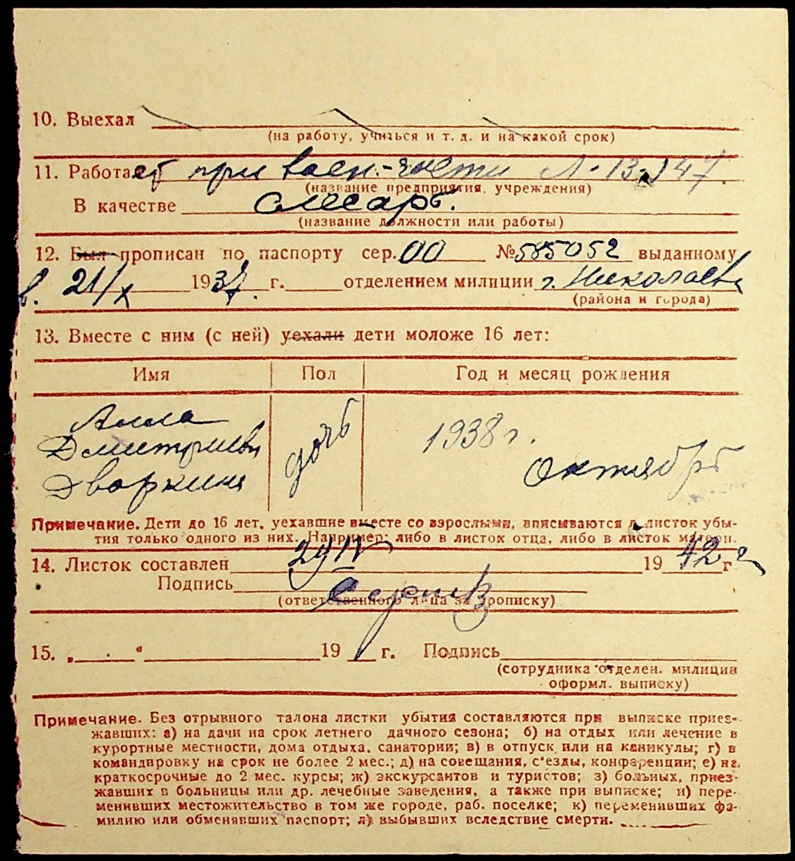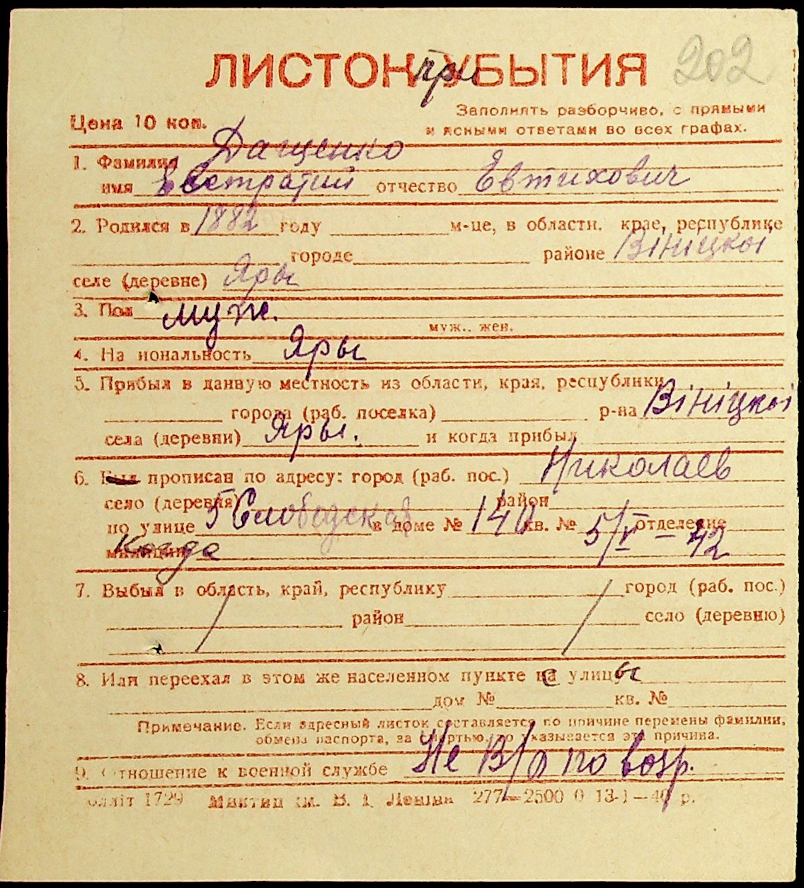 ◦ ◦ Фонд № Н-1016 “Адресне бюро м. Миколаєва”