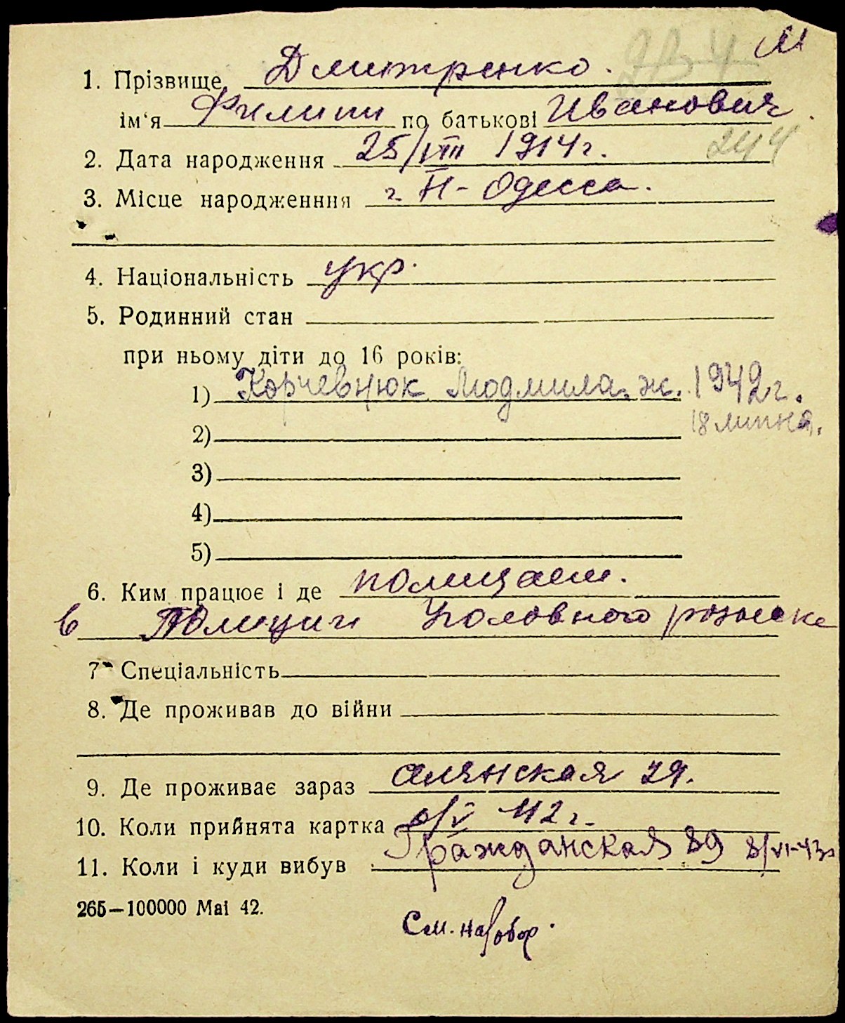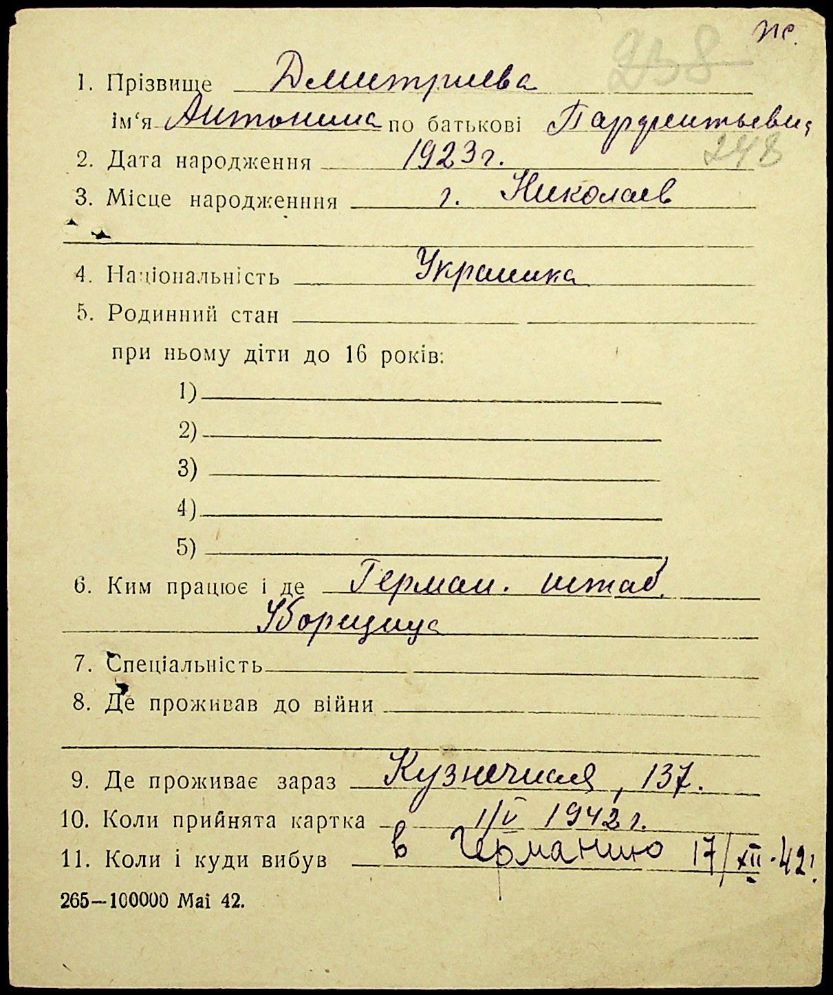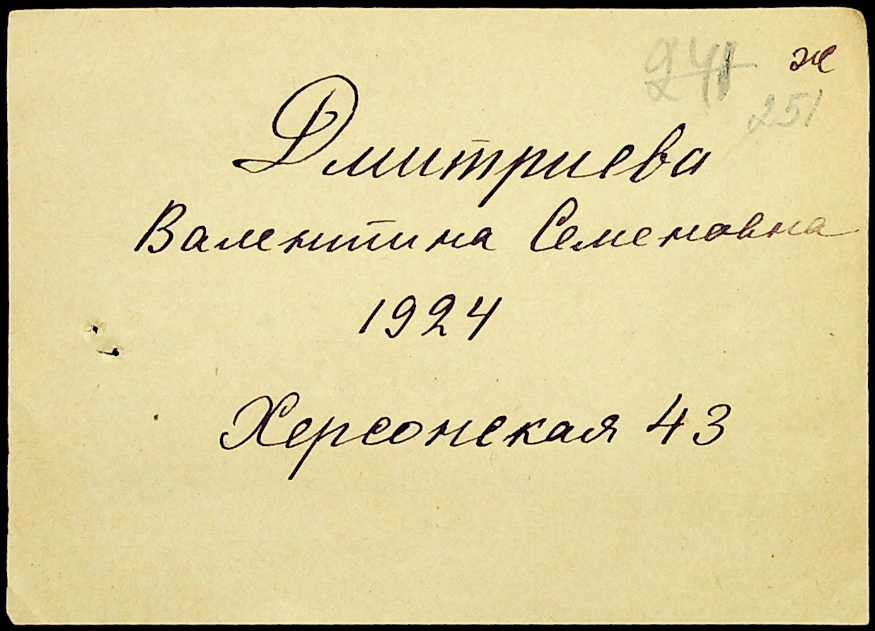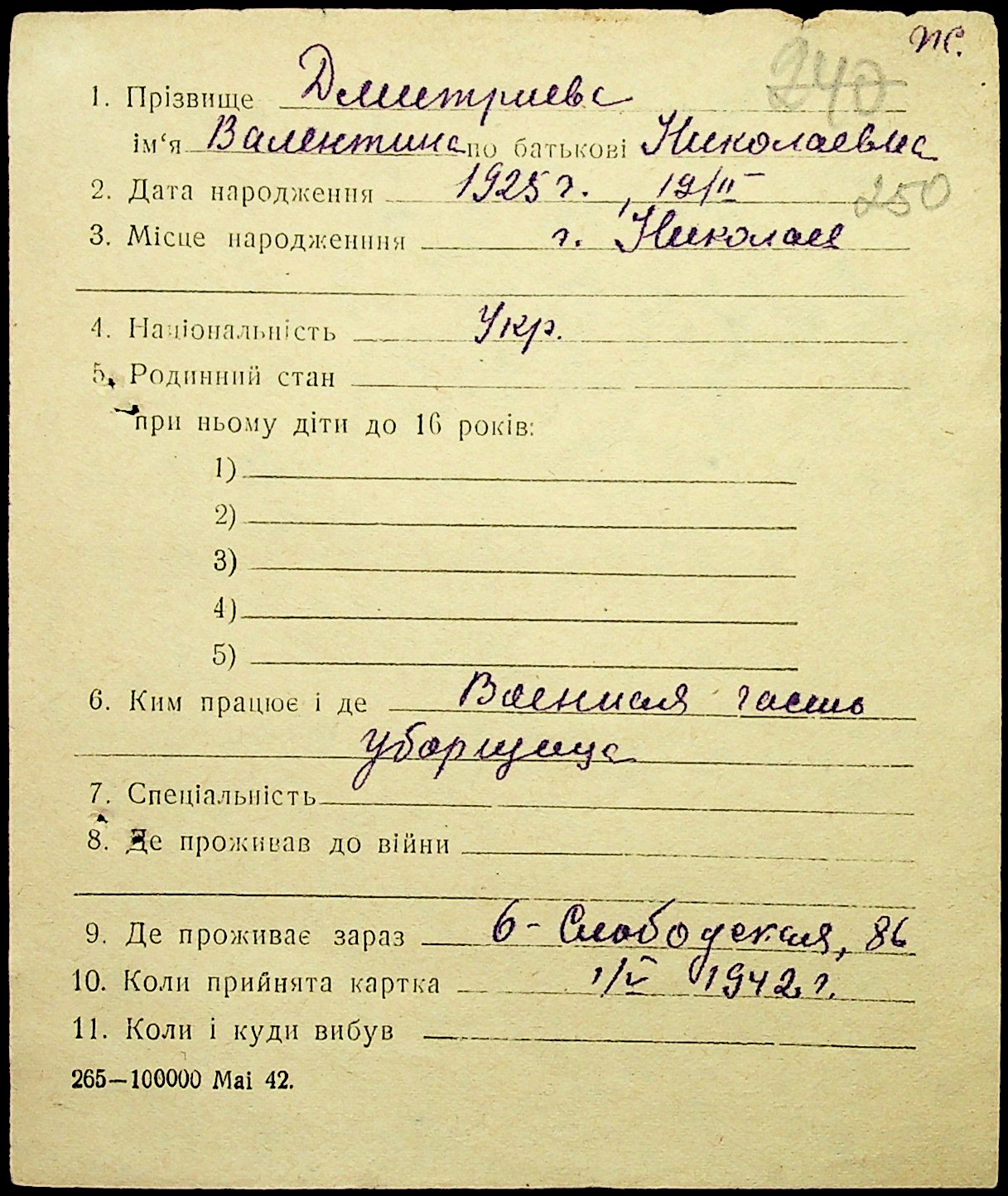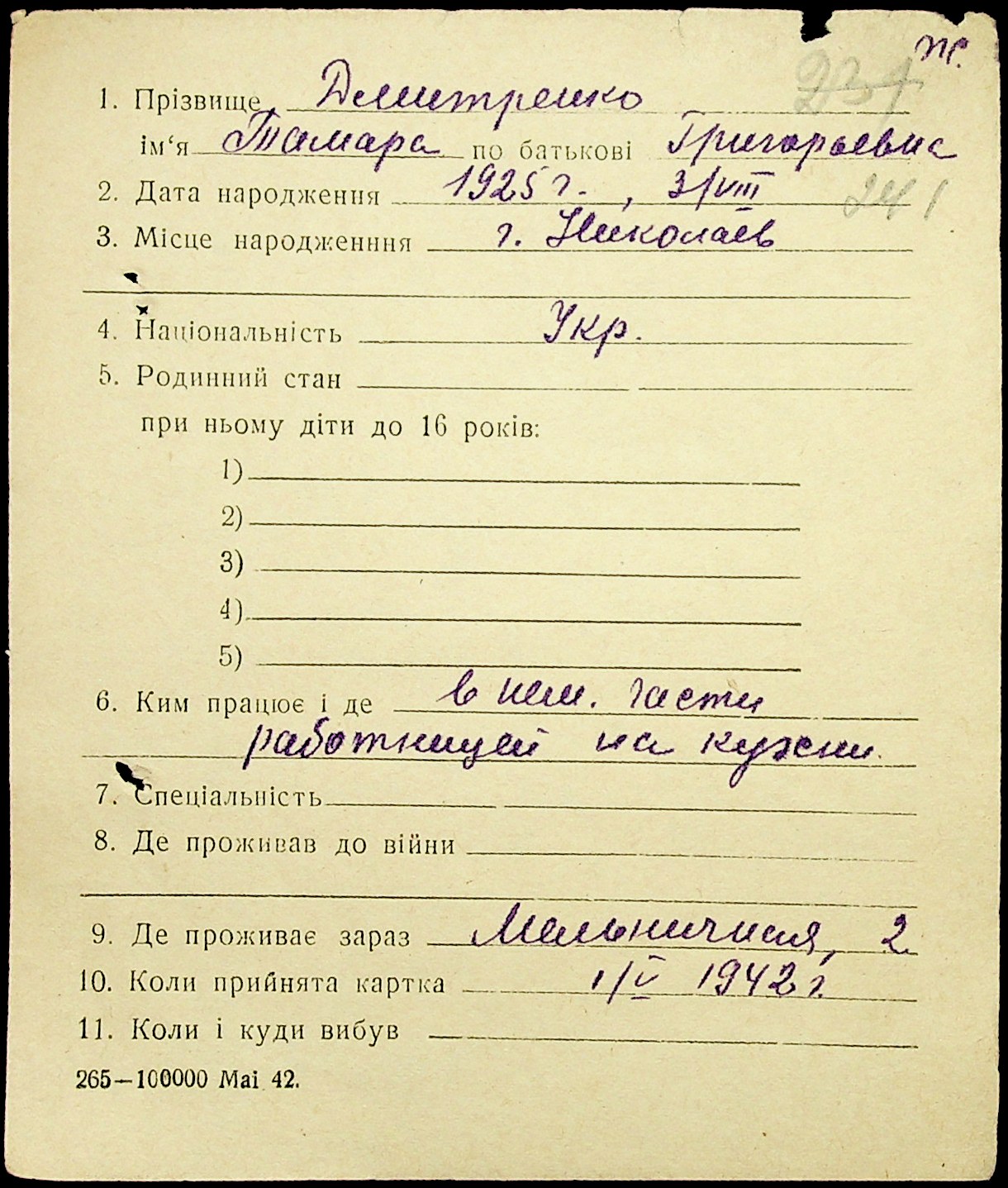 • • • • Справа № 20 “Картки адресного бюро м. Миколаєва на осіб, які працювали в німецько-фашистських установах та військових частинах. Прізвища на літеру «Д». Том 2”