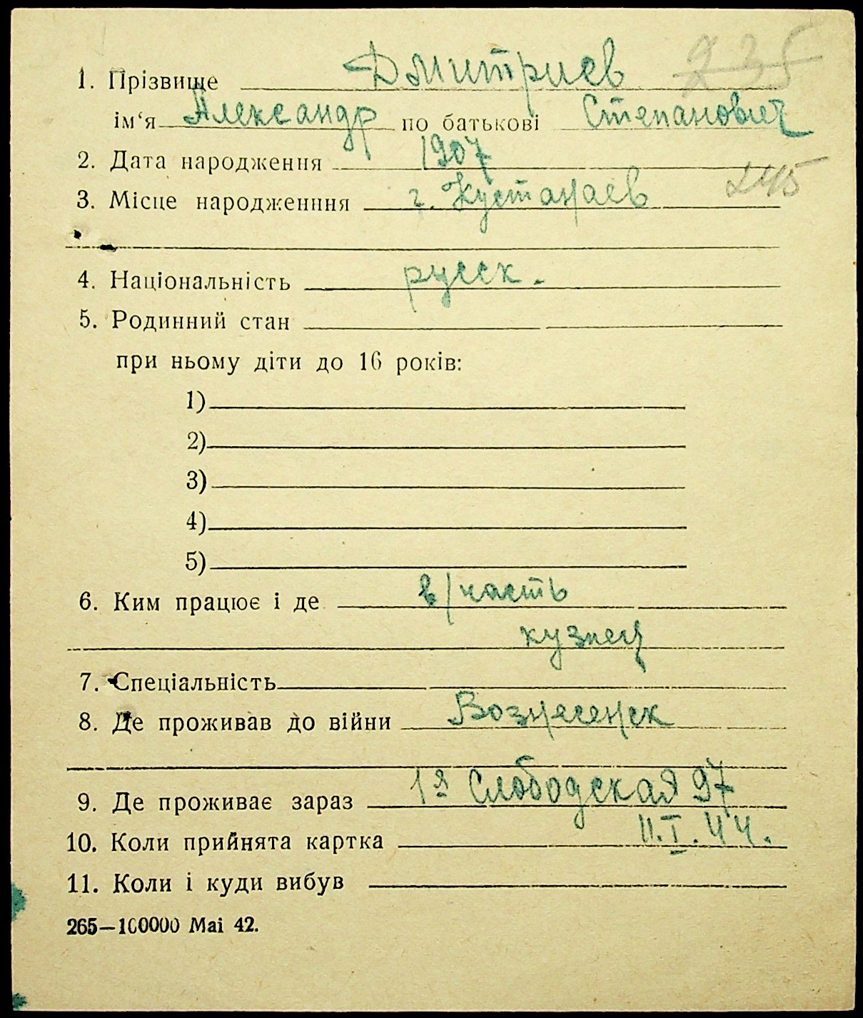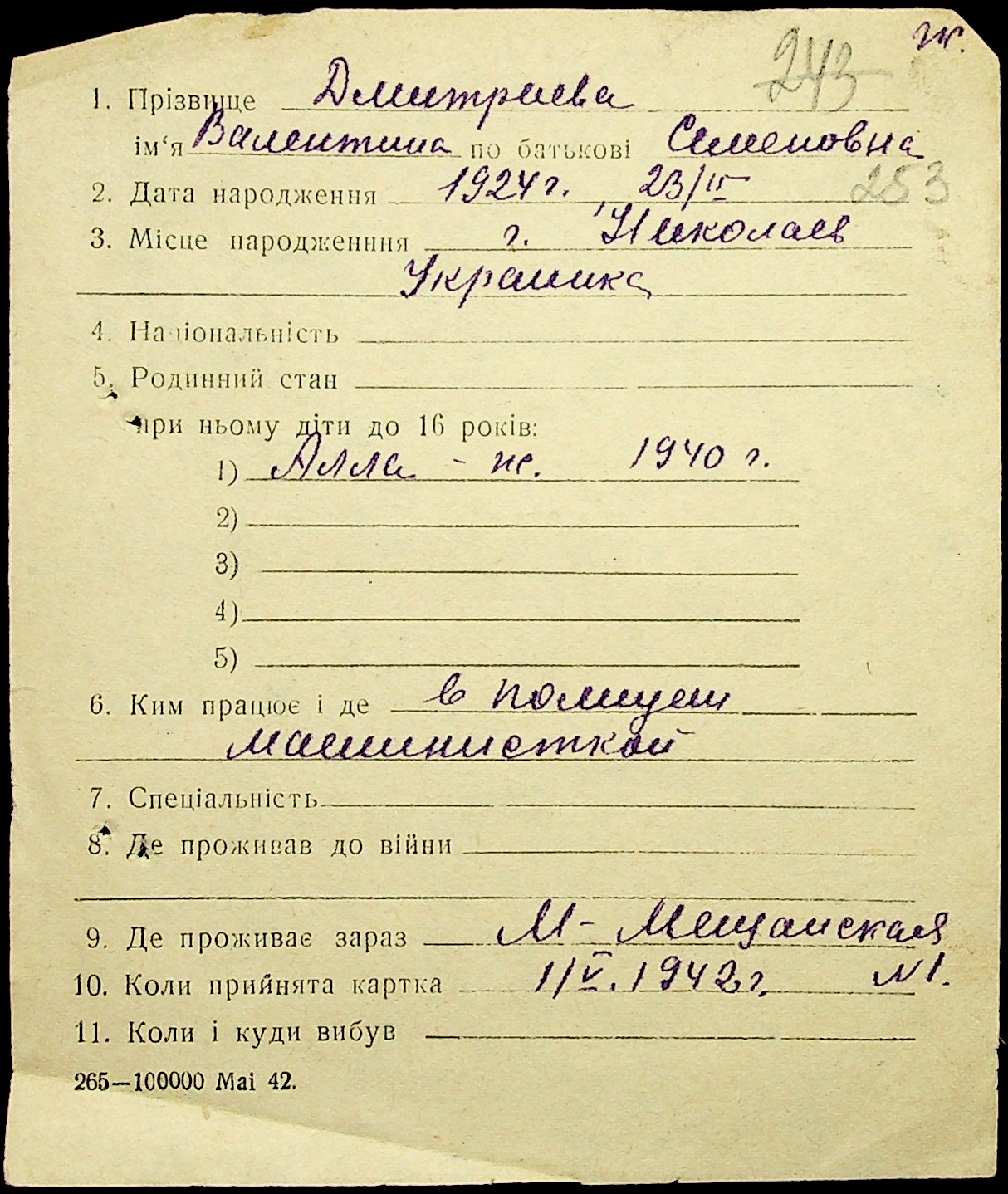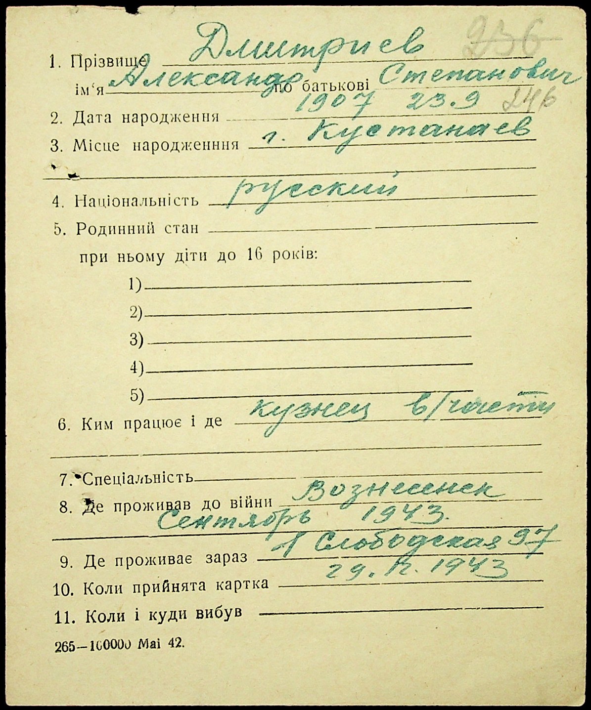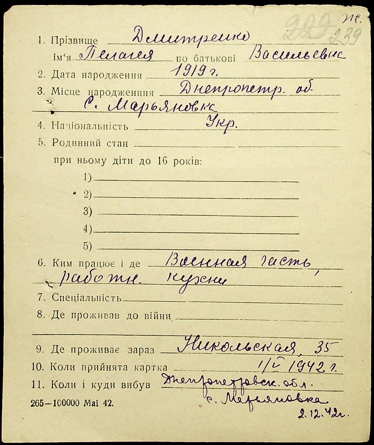 • • • • Справа № 20 “Картки адресного бюро м. Миколаєва на осіб, які працювали в німецько-фашистських установах та військових частинах. Прізвища на літеру «Д». Том 2”