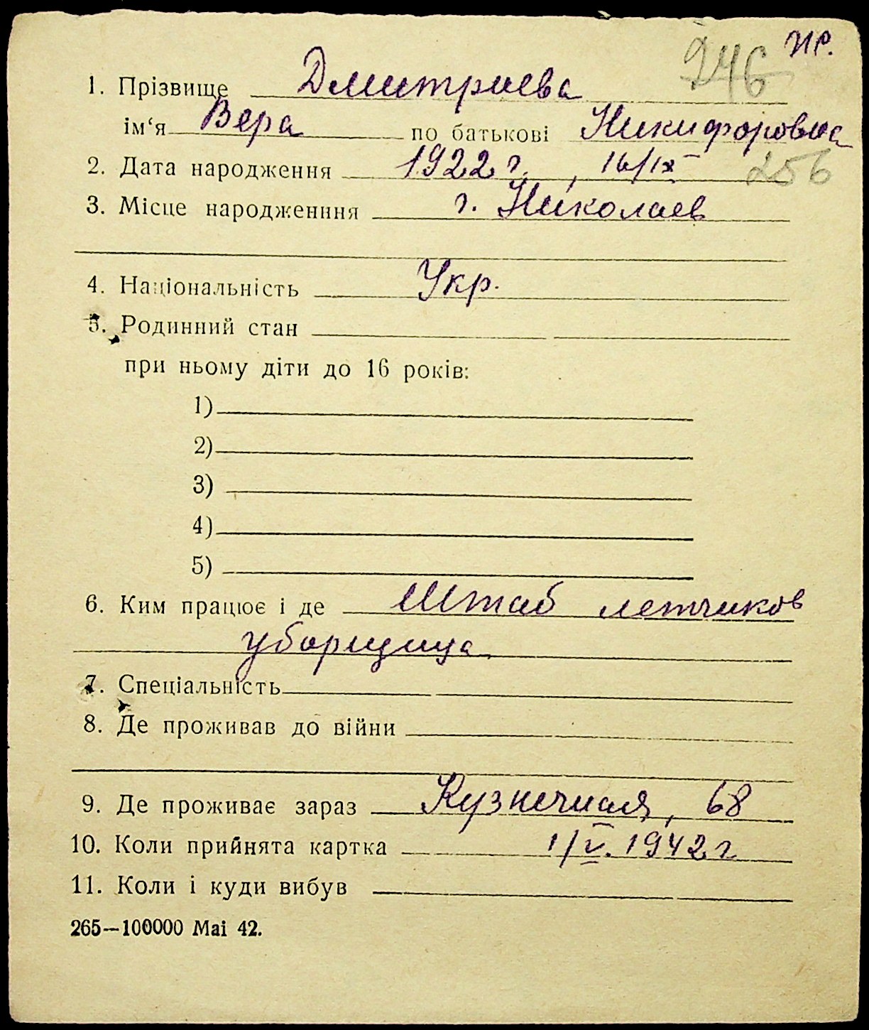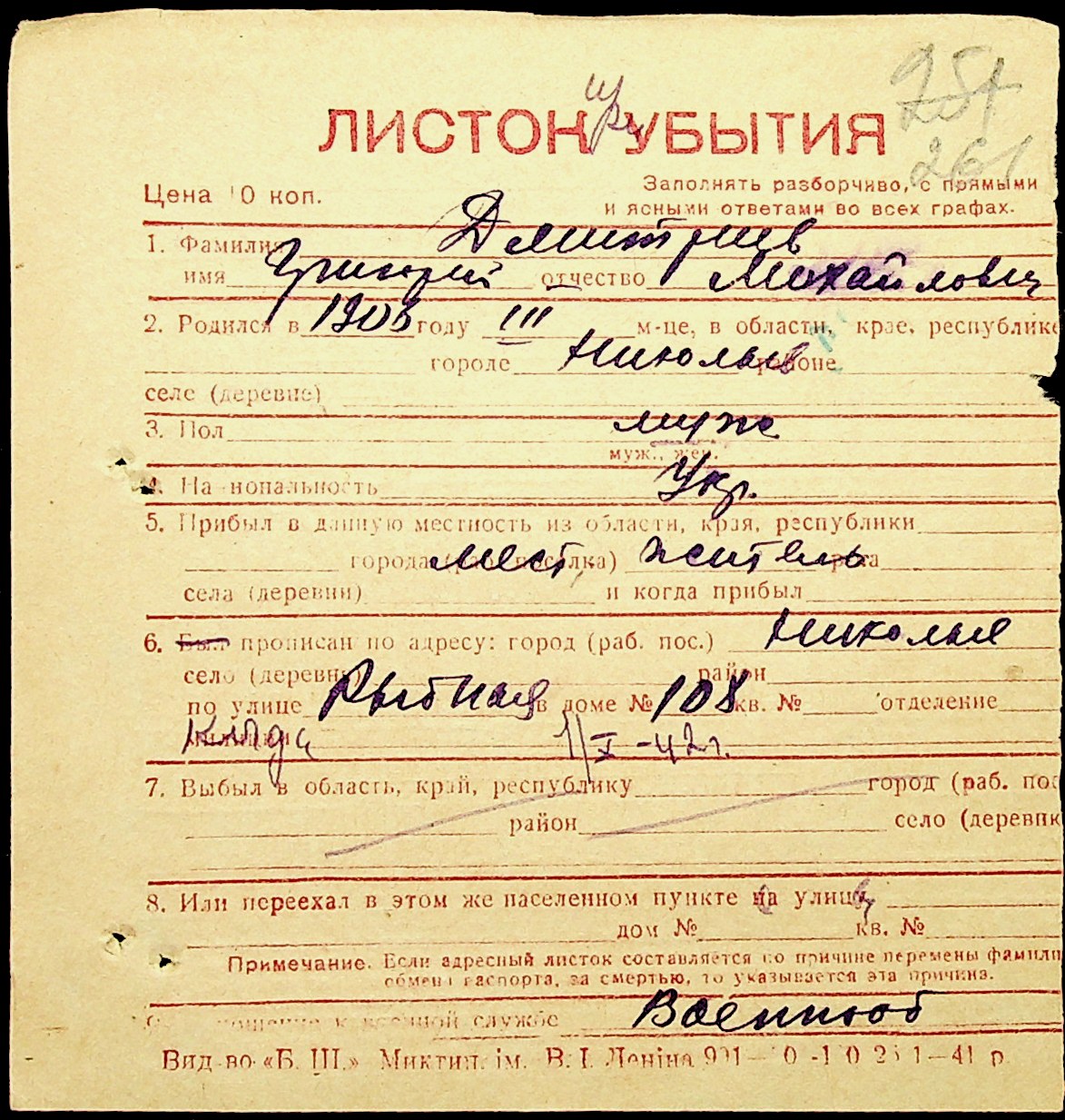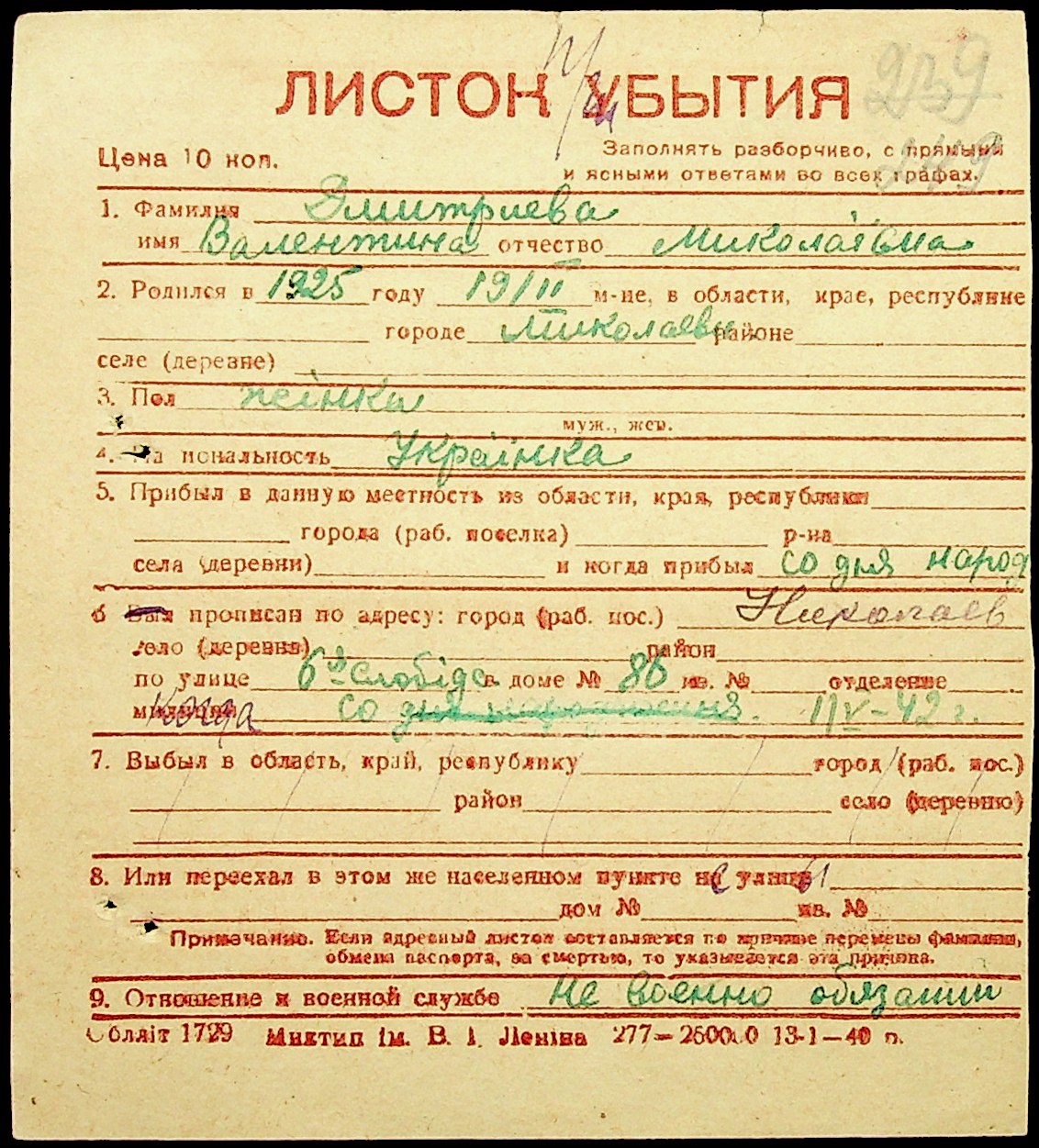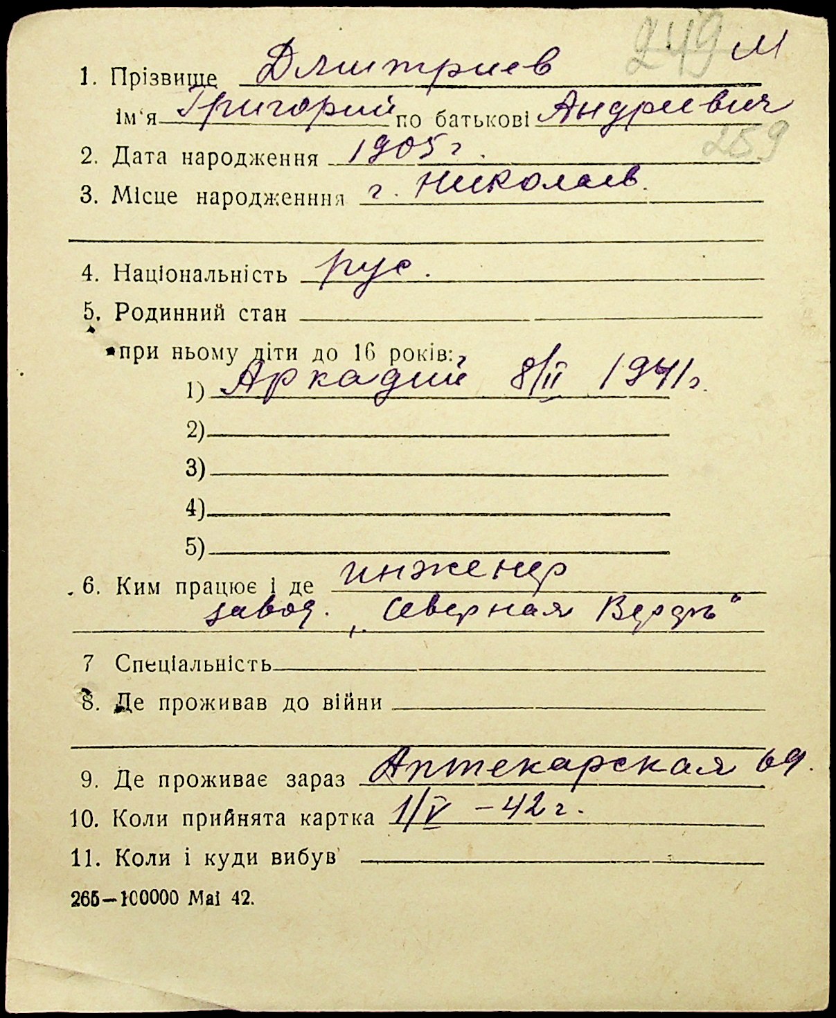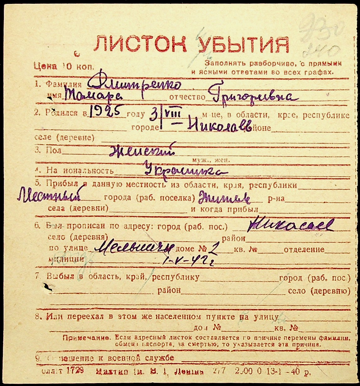 ◦ ◦ Фонд № Н-1016 “Адресне бюро м. Миколаєва”