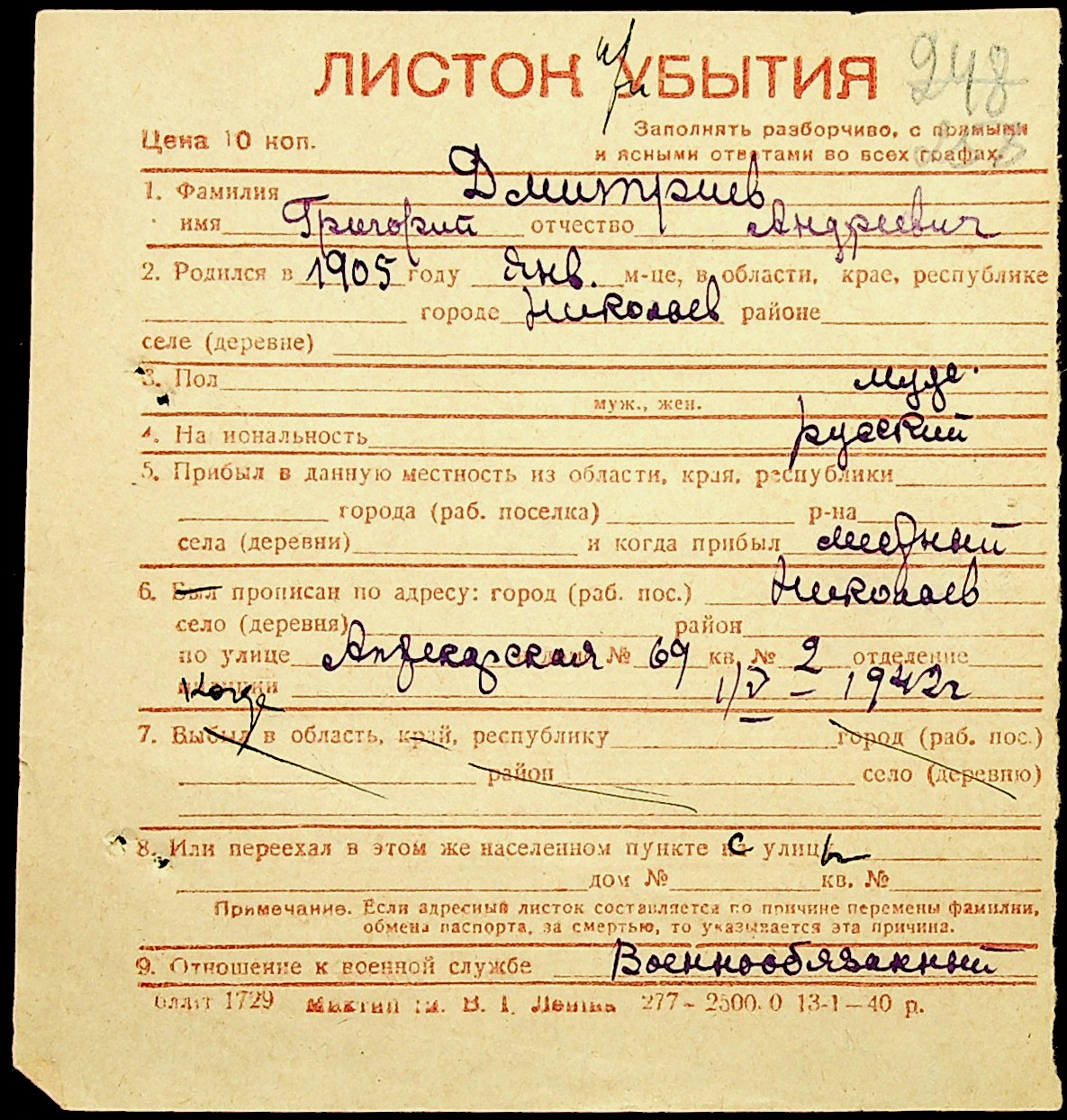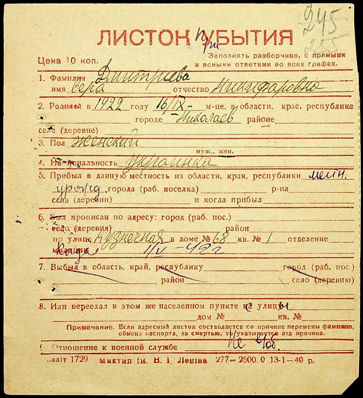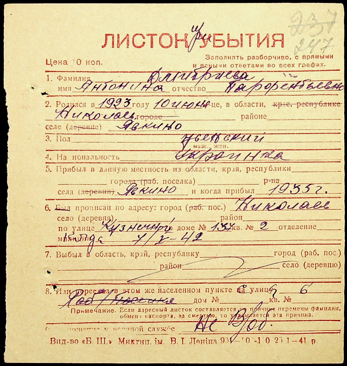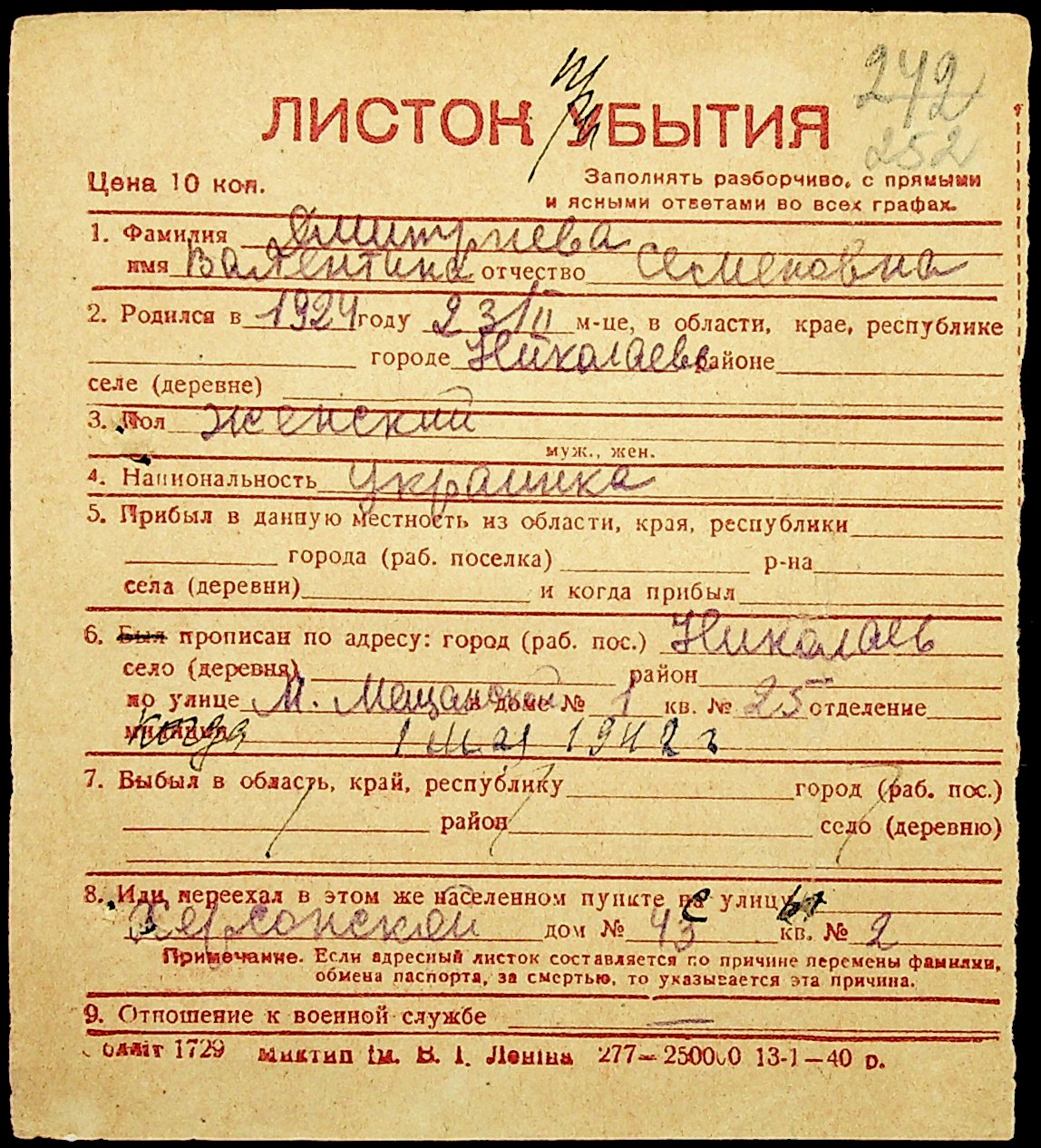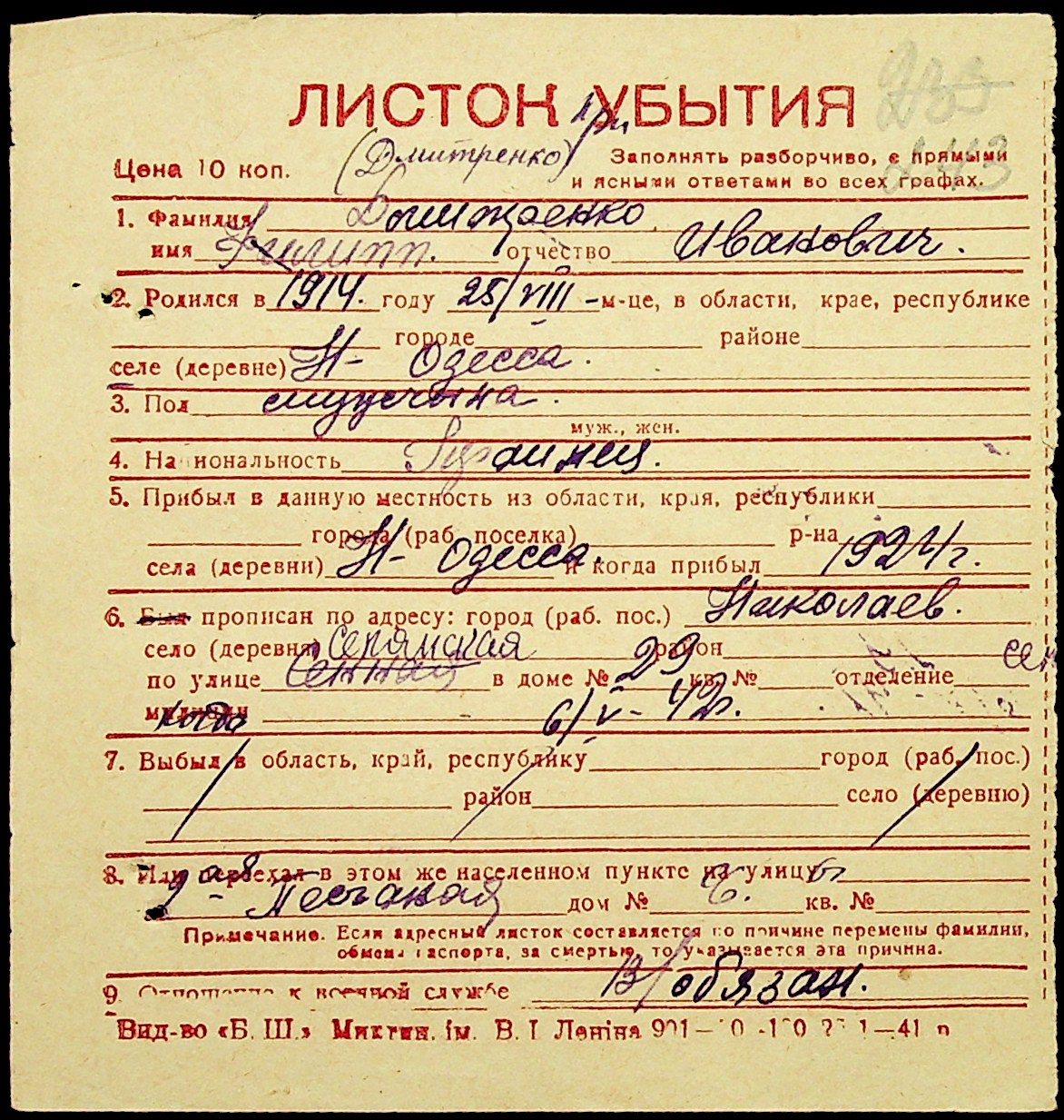 ◦ ◦ Фонд № Н-1016 “Адресне бюро м. Миколаєва”