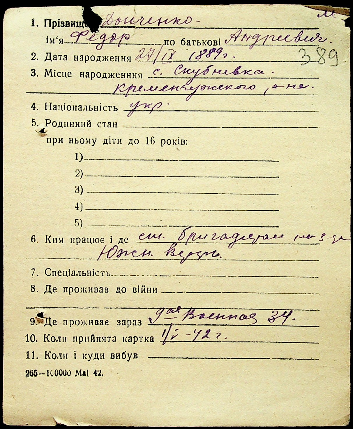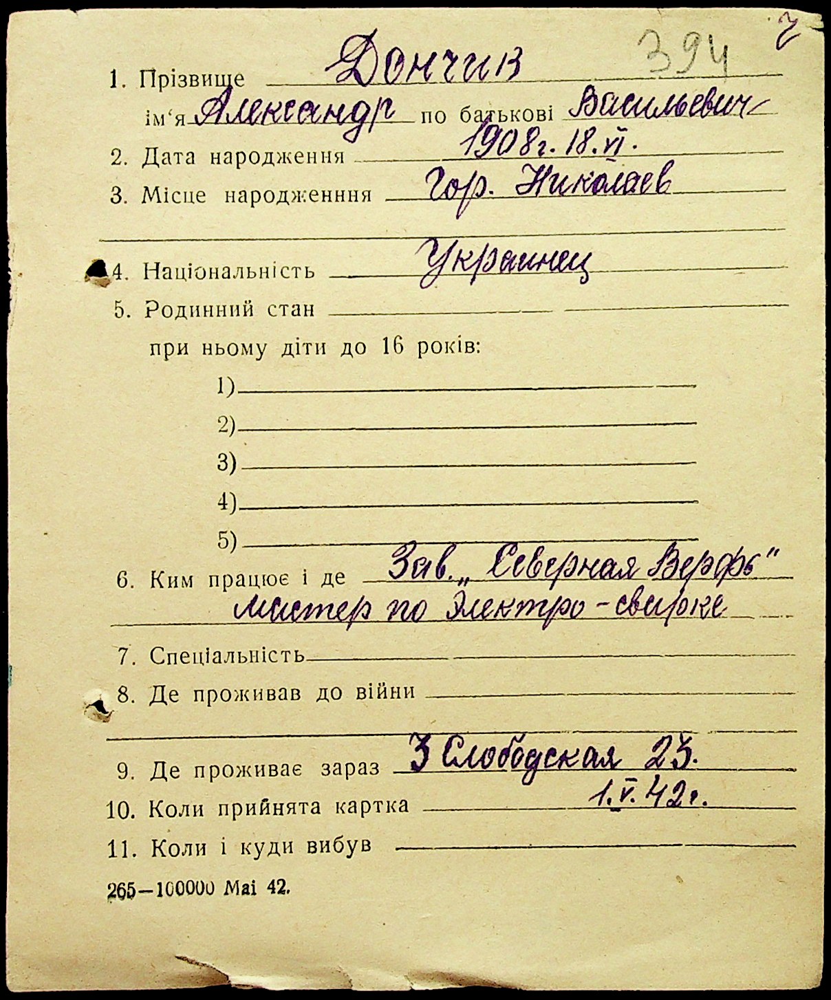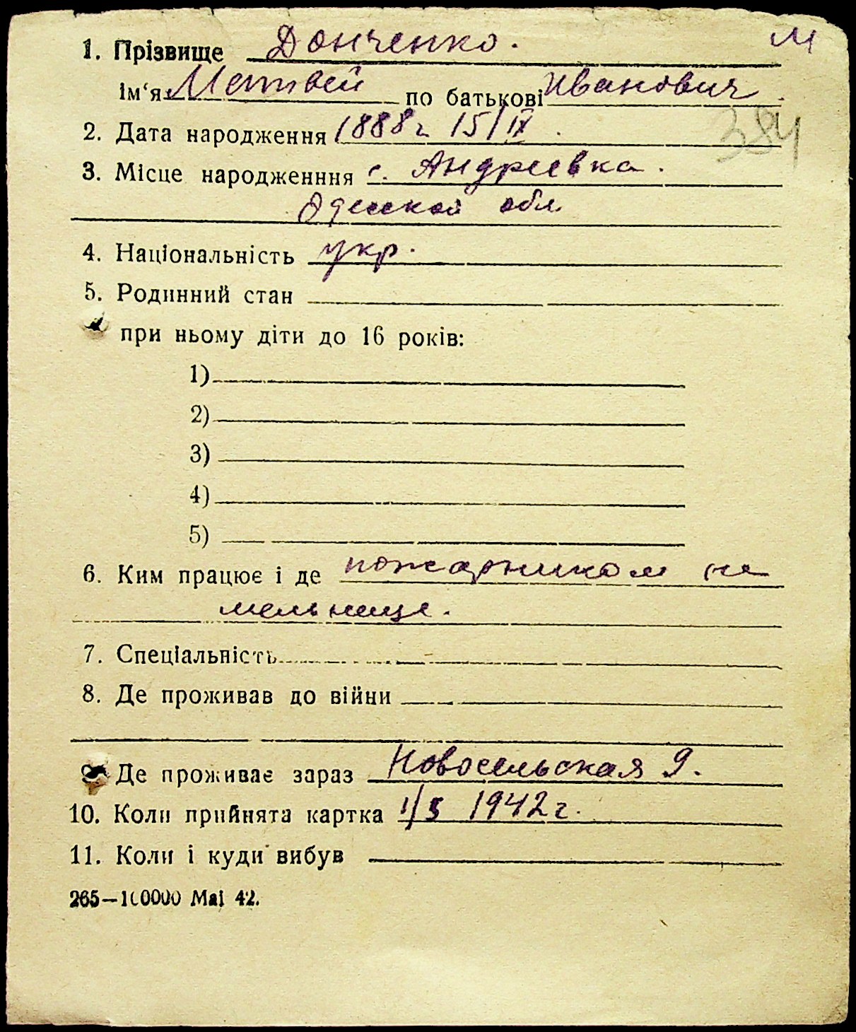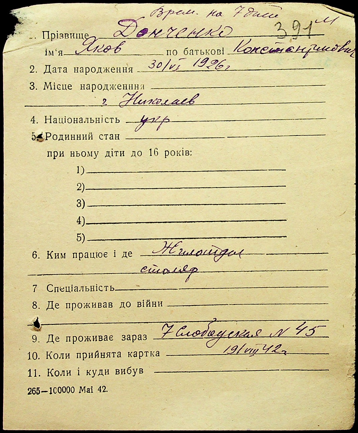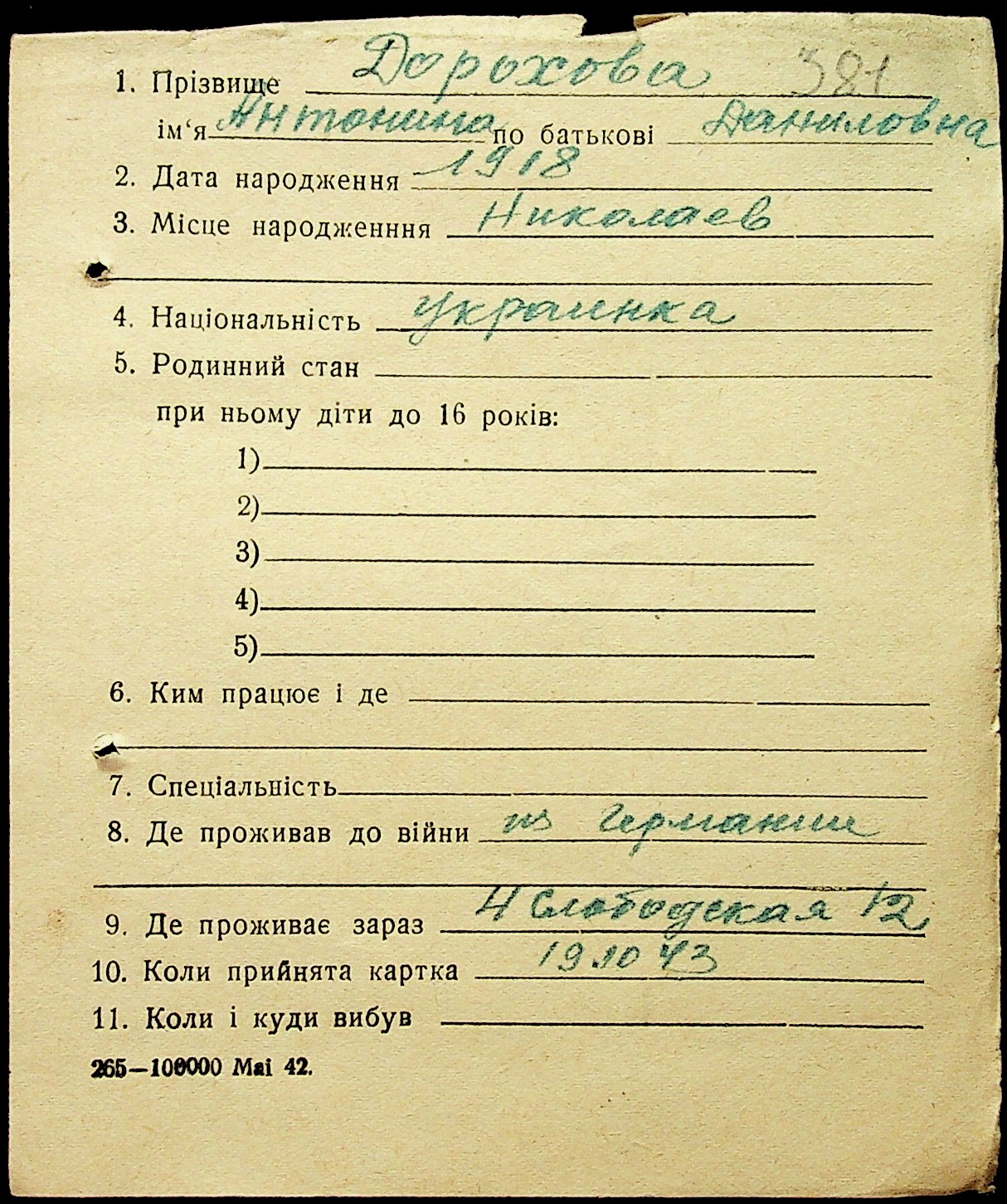 • • • • Справа № 21 “Картки адресного бюро м. Миколаєва на осіб, які працювали в німецько-фашистських установах та військових частинах. Прізвища на літеру «Д». Том 3”