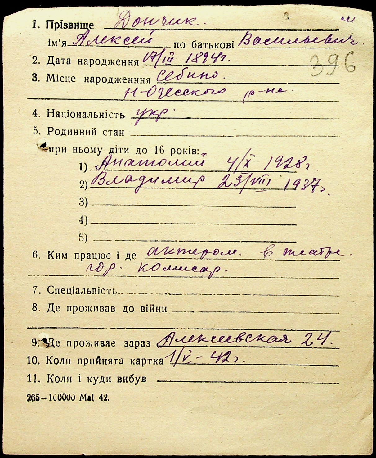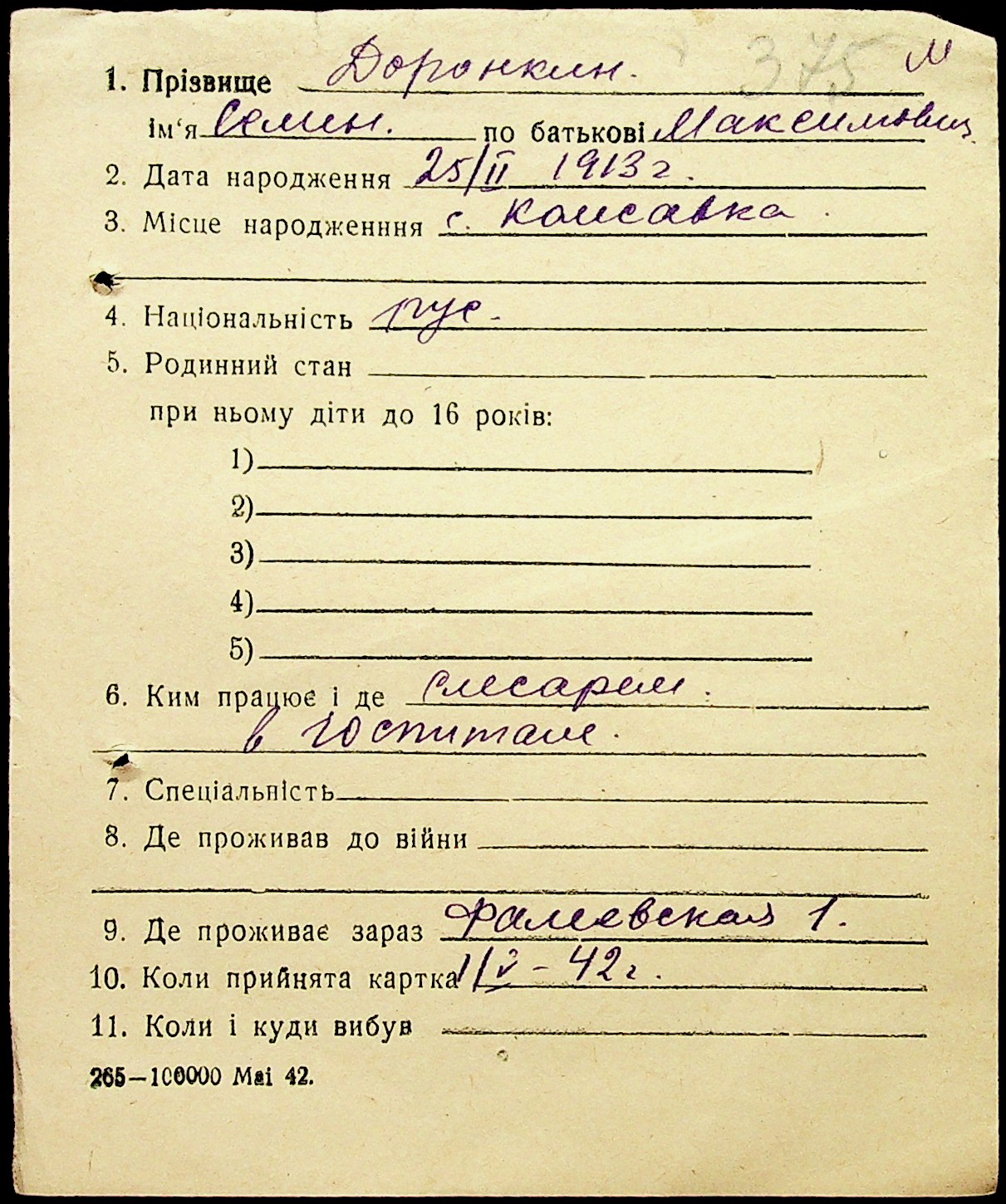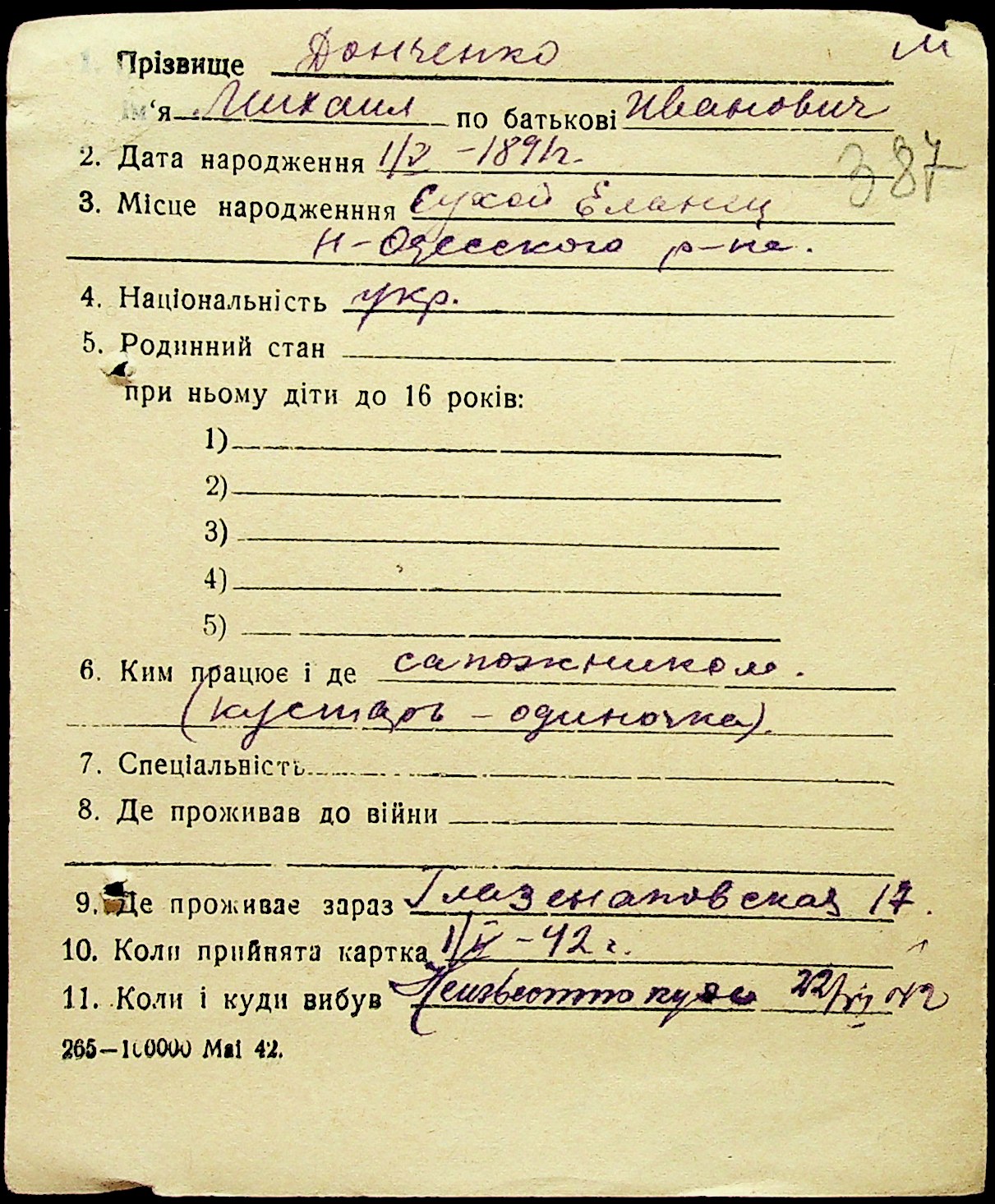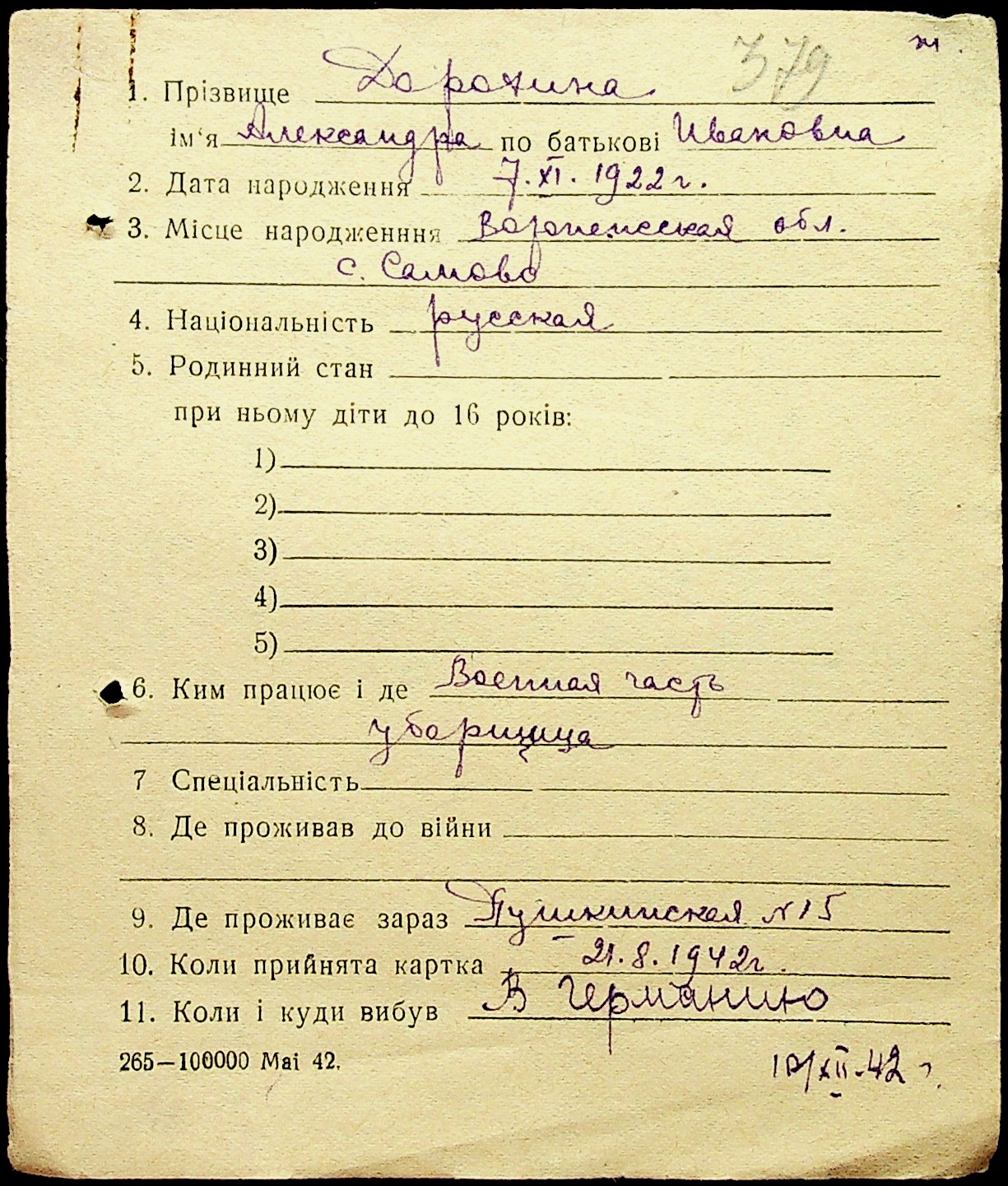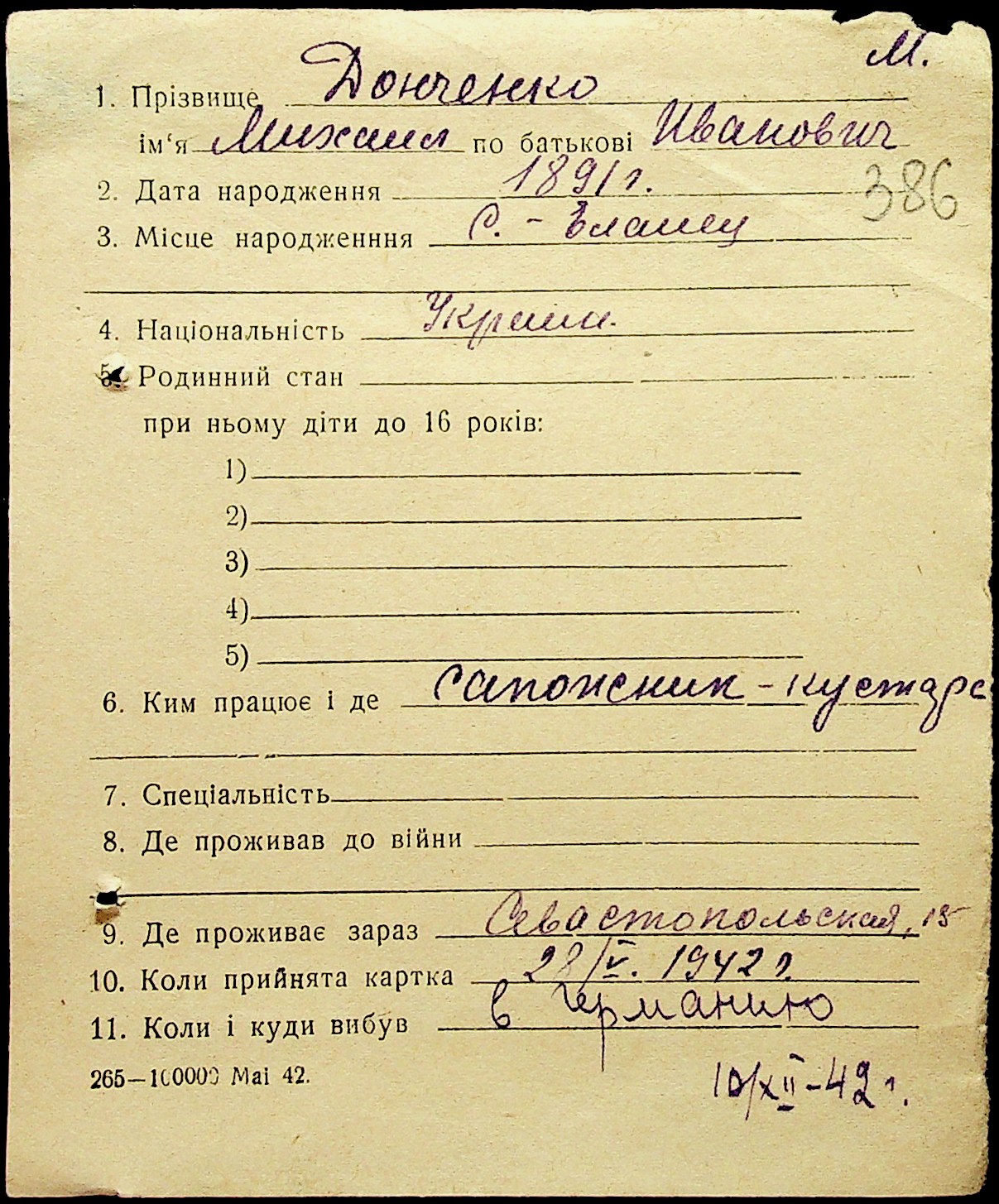• • • • Справа № 21 “Картки адресного бюро м. Миколаєва на осіб, які працювали в німецько-фашистських установах та військових частинах. Прізвища на літеру «Д». Том 3”