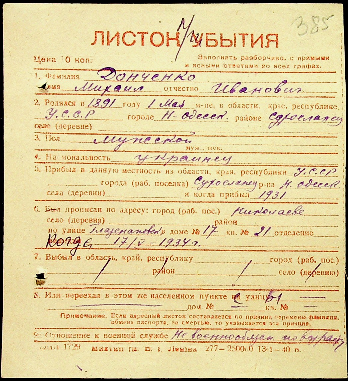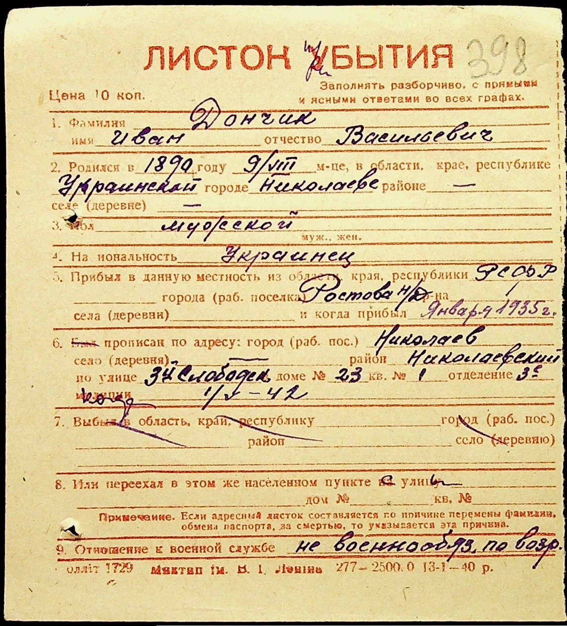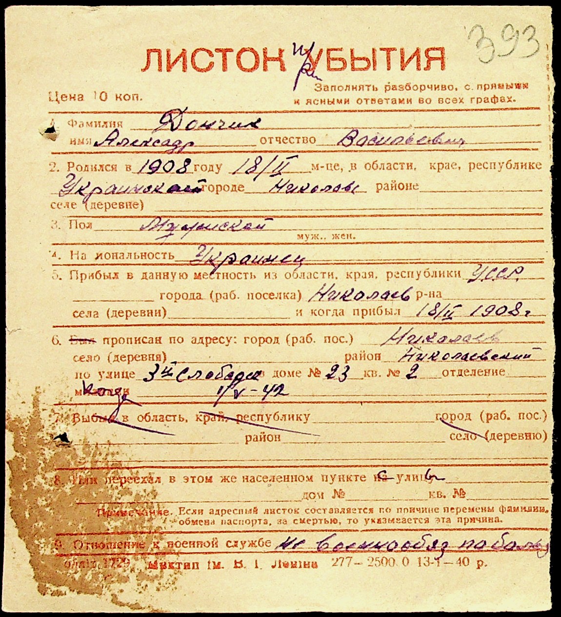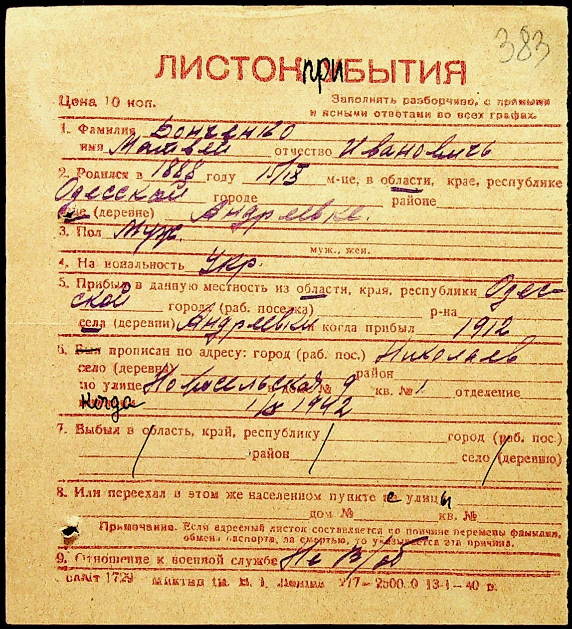 ◦ ◦ Фонд № Н-1016 “Адресне бюро м. Миколаєва”