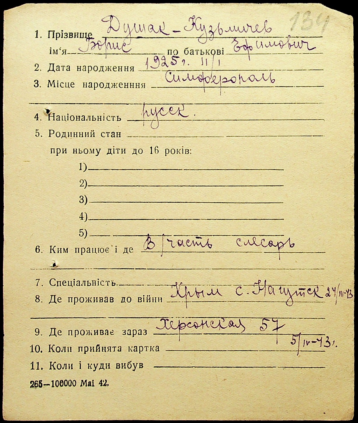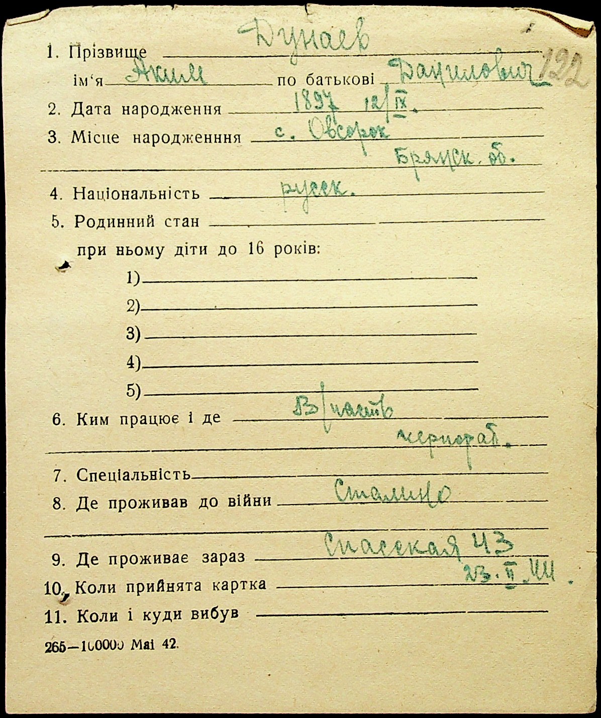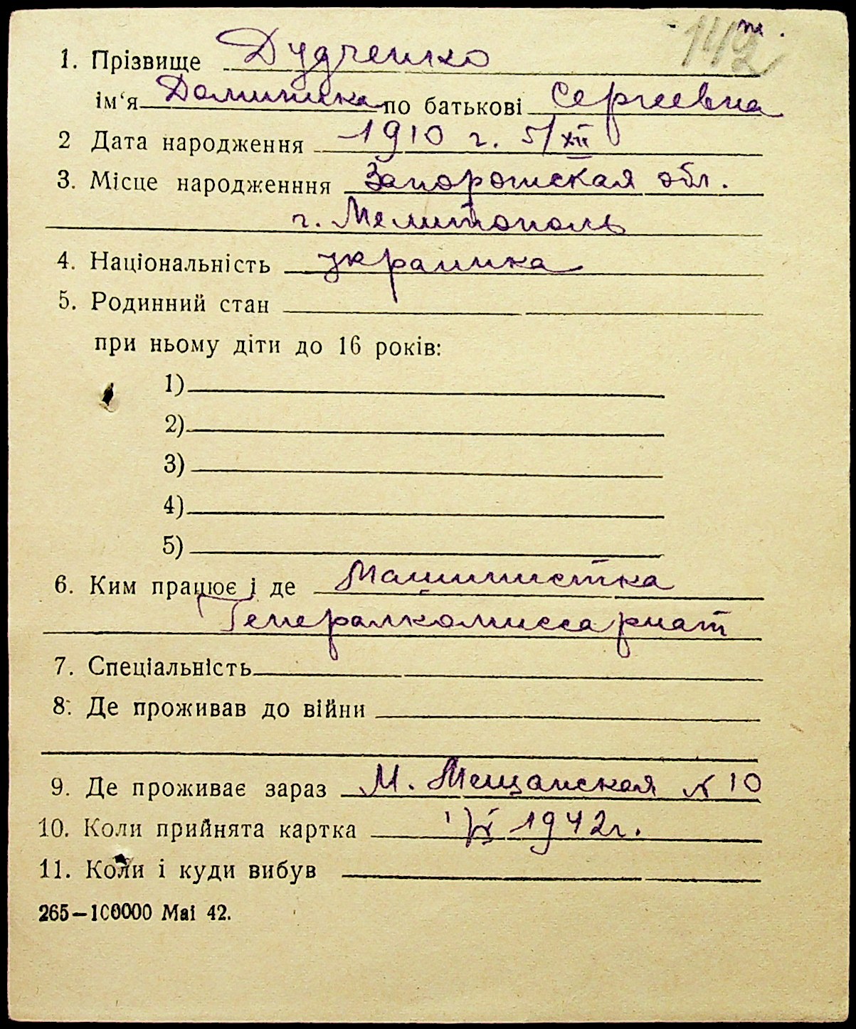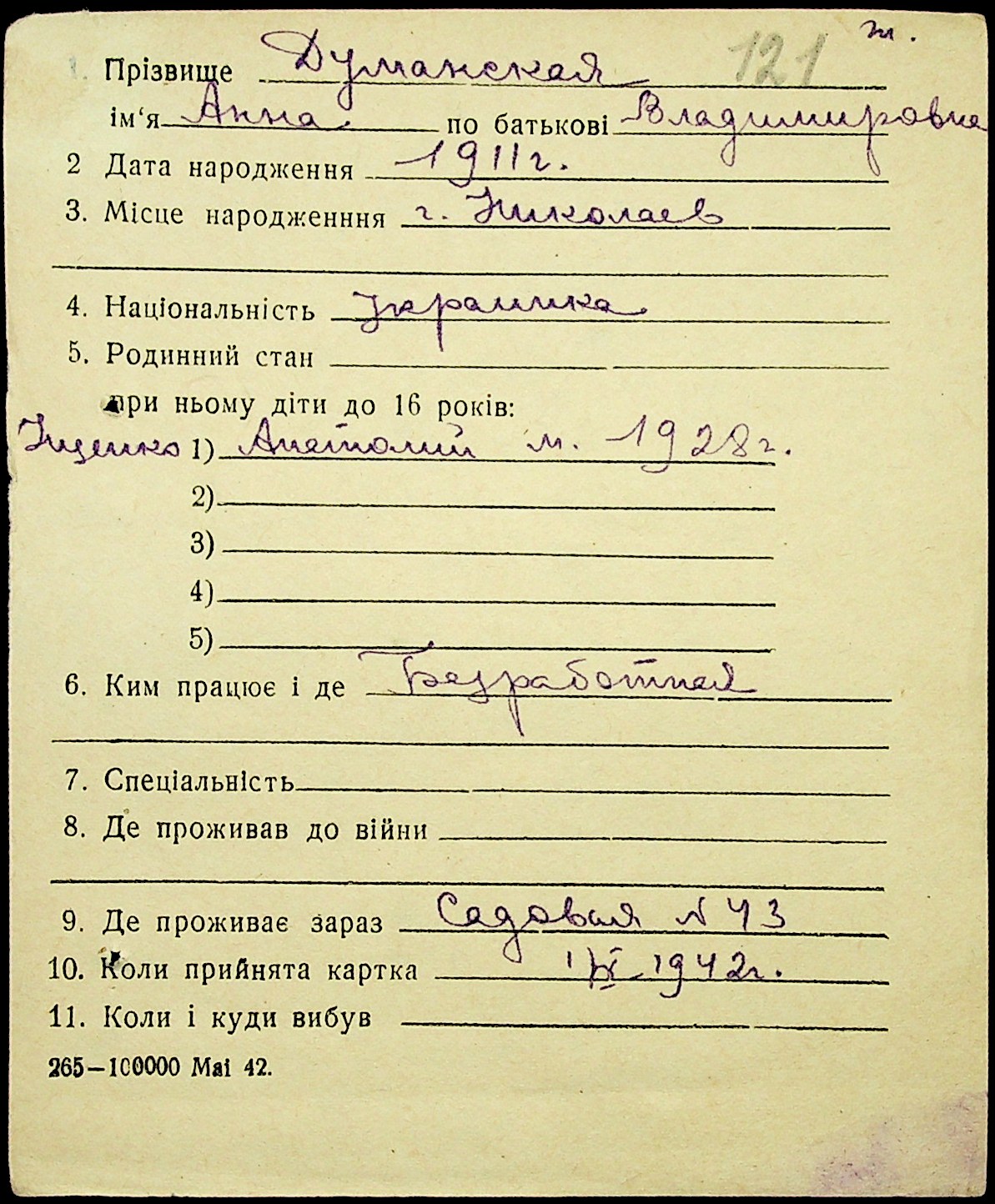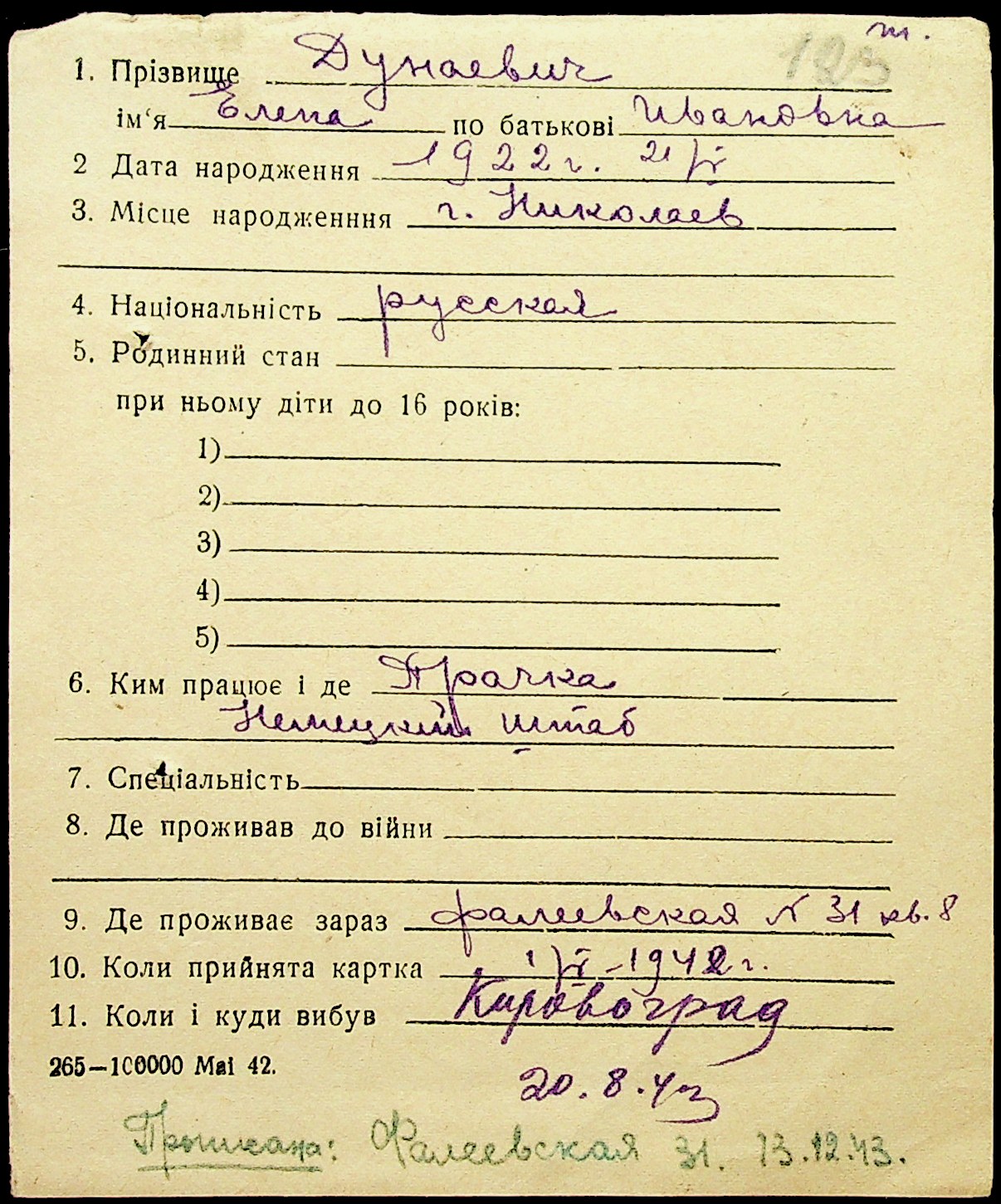 • • • • Справа № 21 “Картки адресного бюро м. Миколаєва на осіб, які працювали в німецько-фашистських установах та військових частинах. Прізвища на літеру «Д». Том 3”